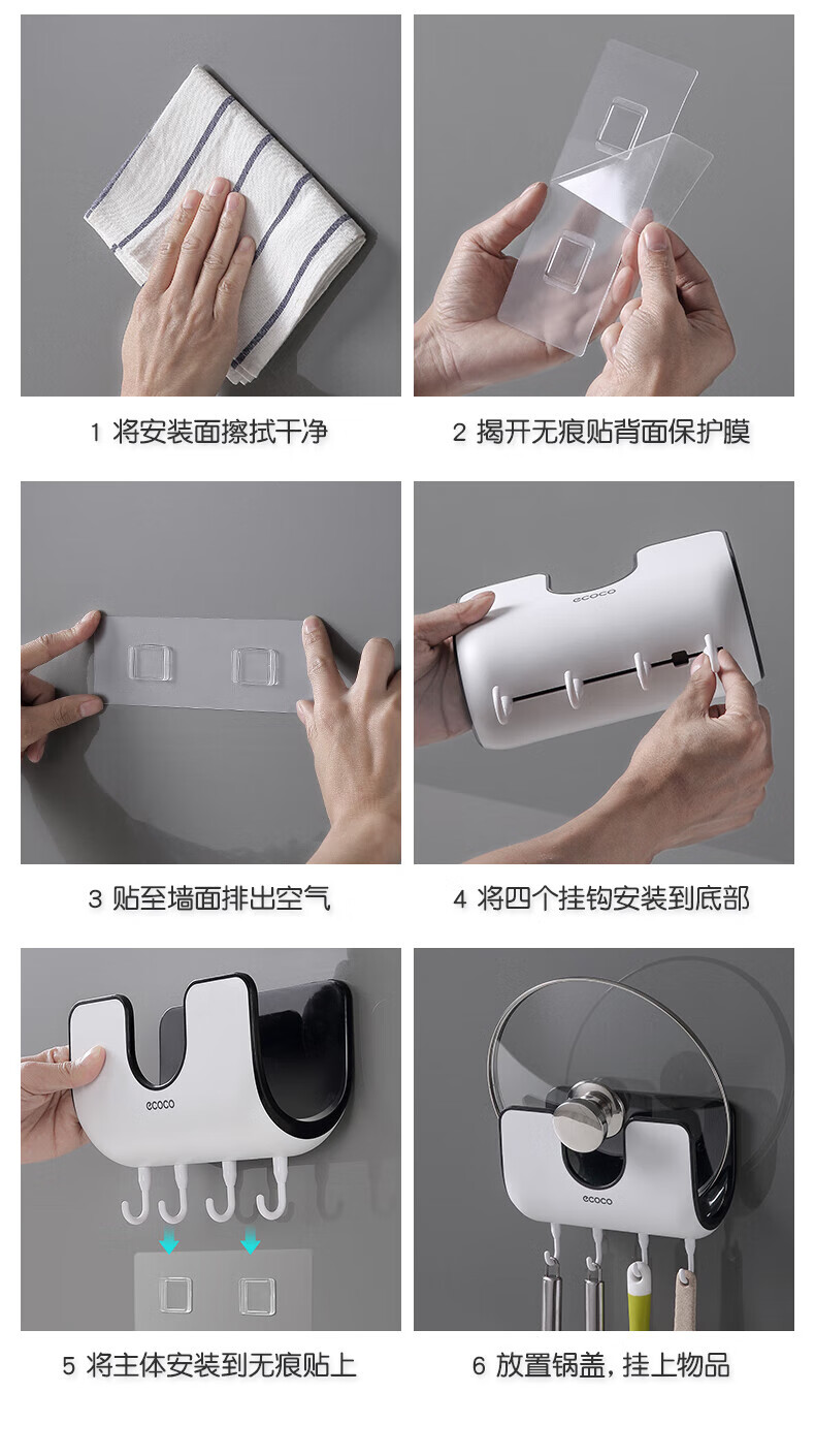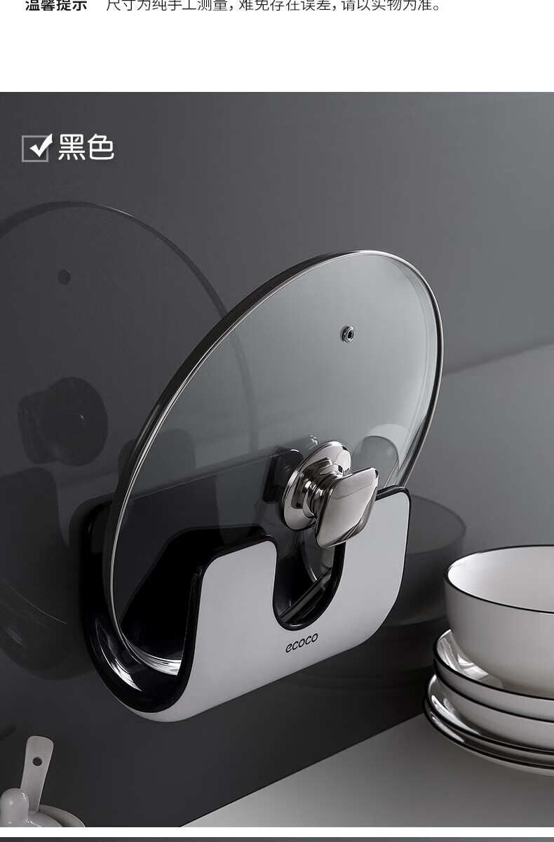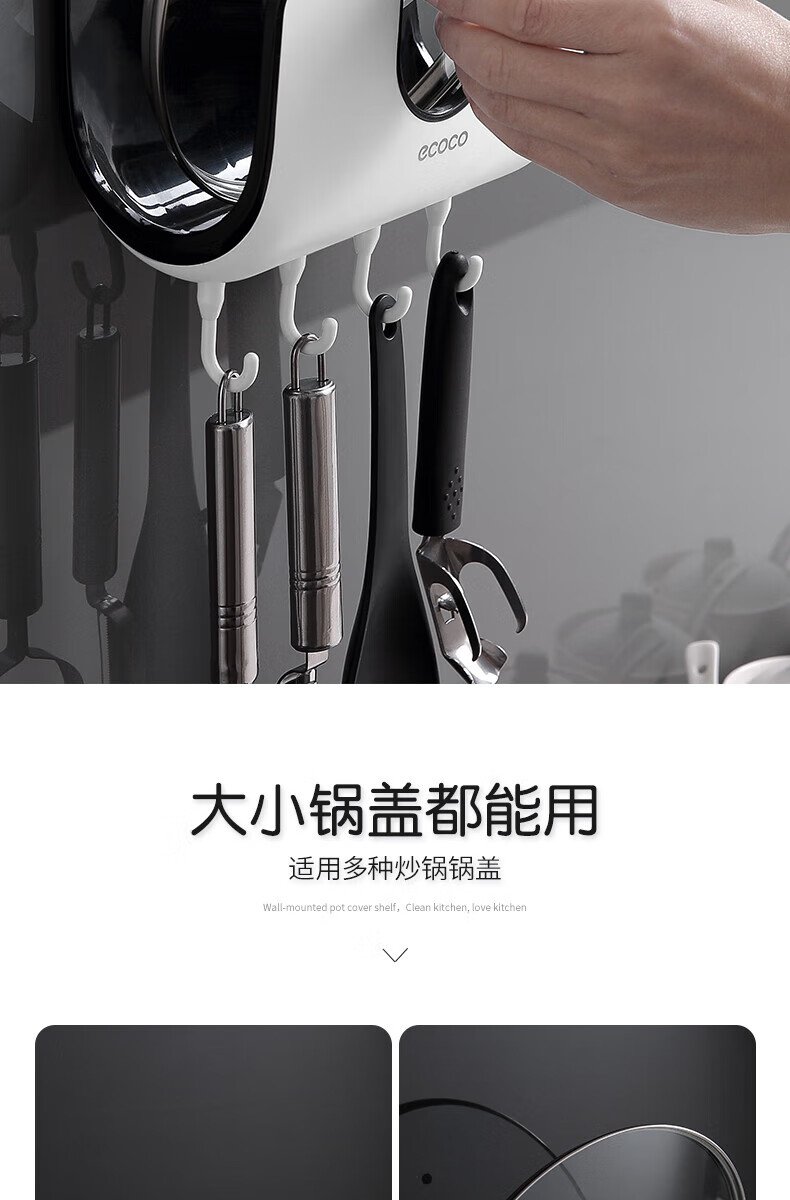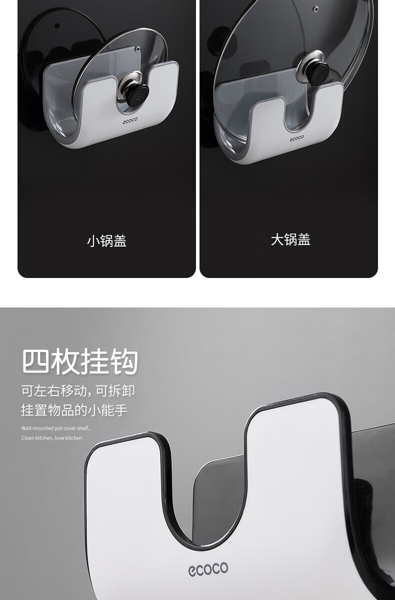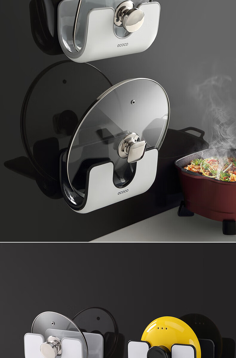 ecoco家用锅盖架壁挂免打孔菜板砧板架放锅盖的架子坐式厨房收纳置物架 灰白色-锅盖菜板通用含4个挂钩