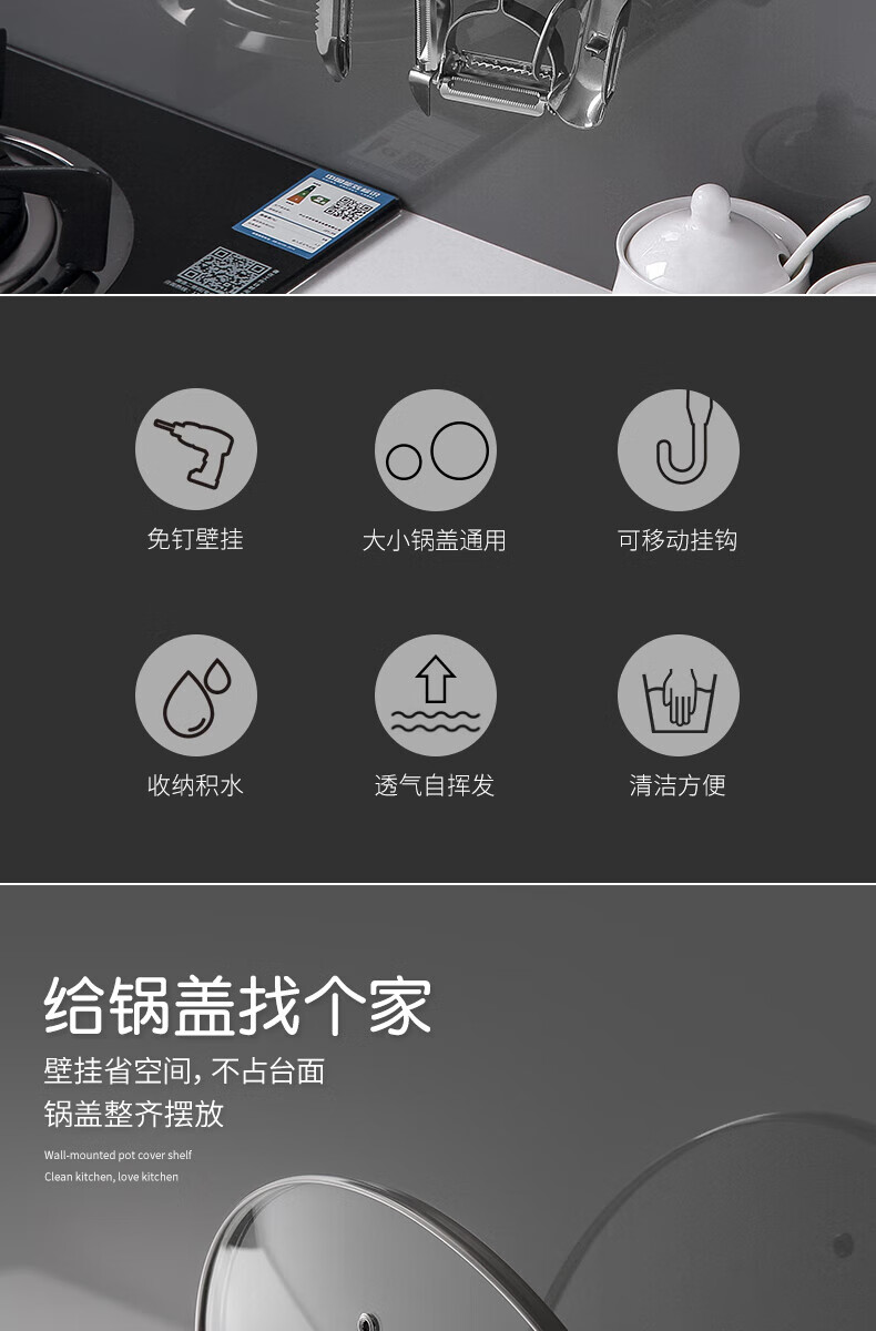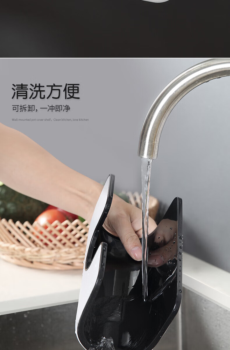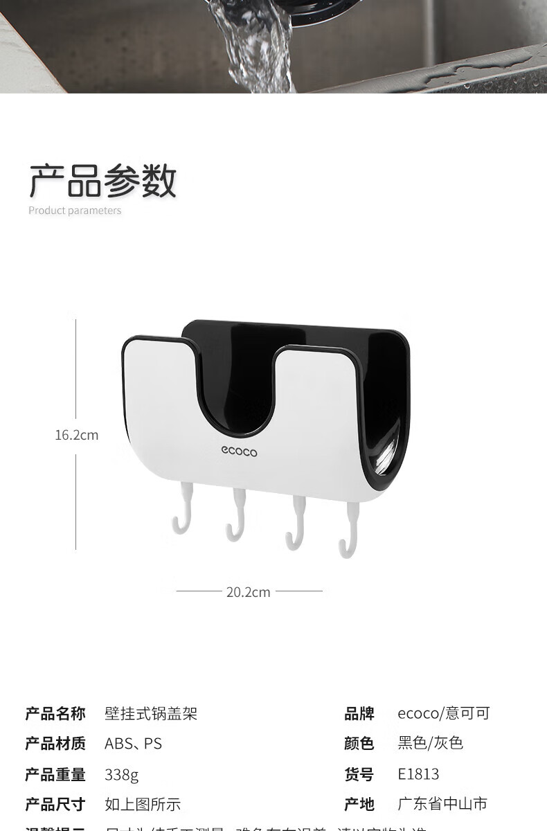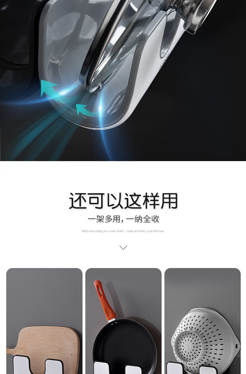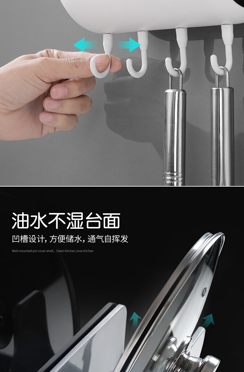 ecoco家用锅盖架壁挂免打孔菜板砧板架放锅盖的架子坐式厨房收纳置物架 灰白色-锅盖菜板通用含4个挂钩