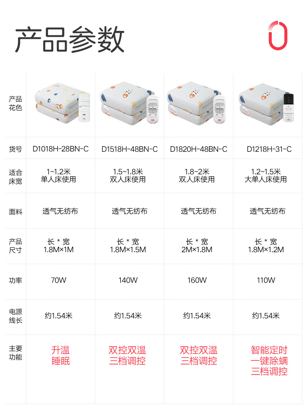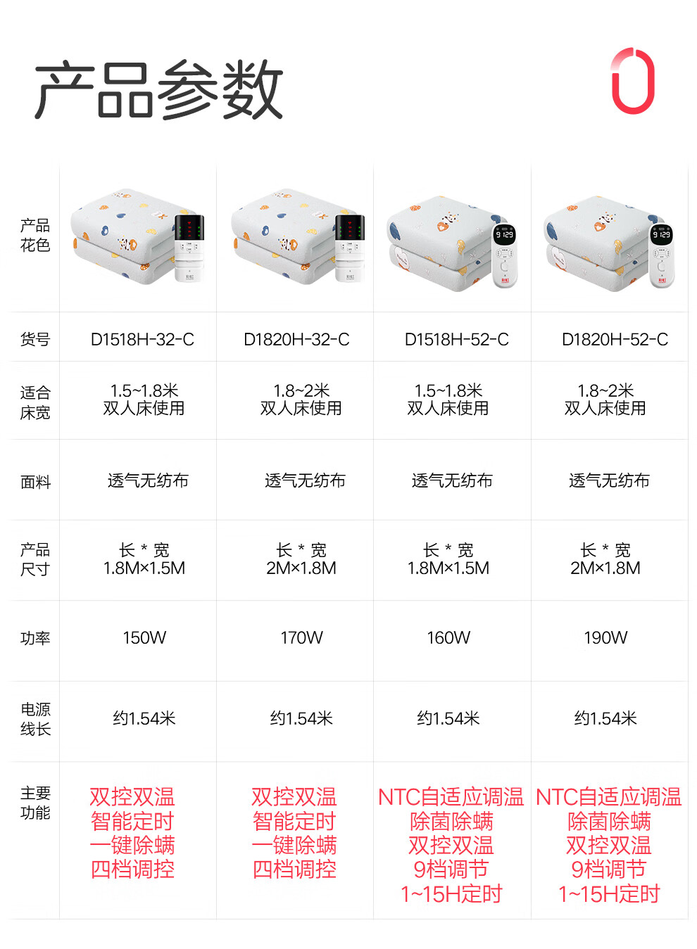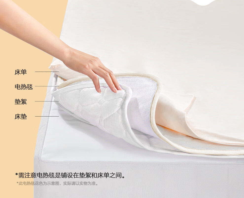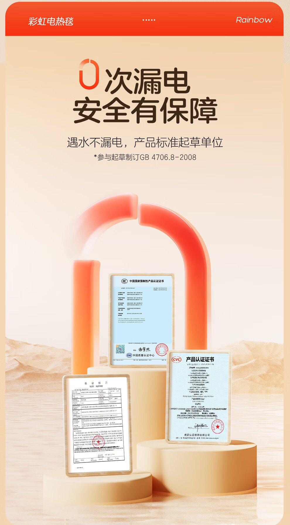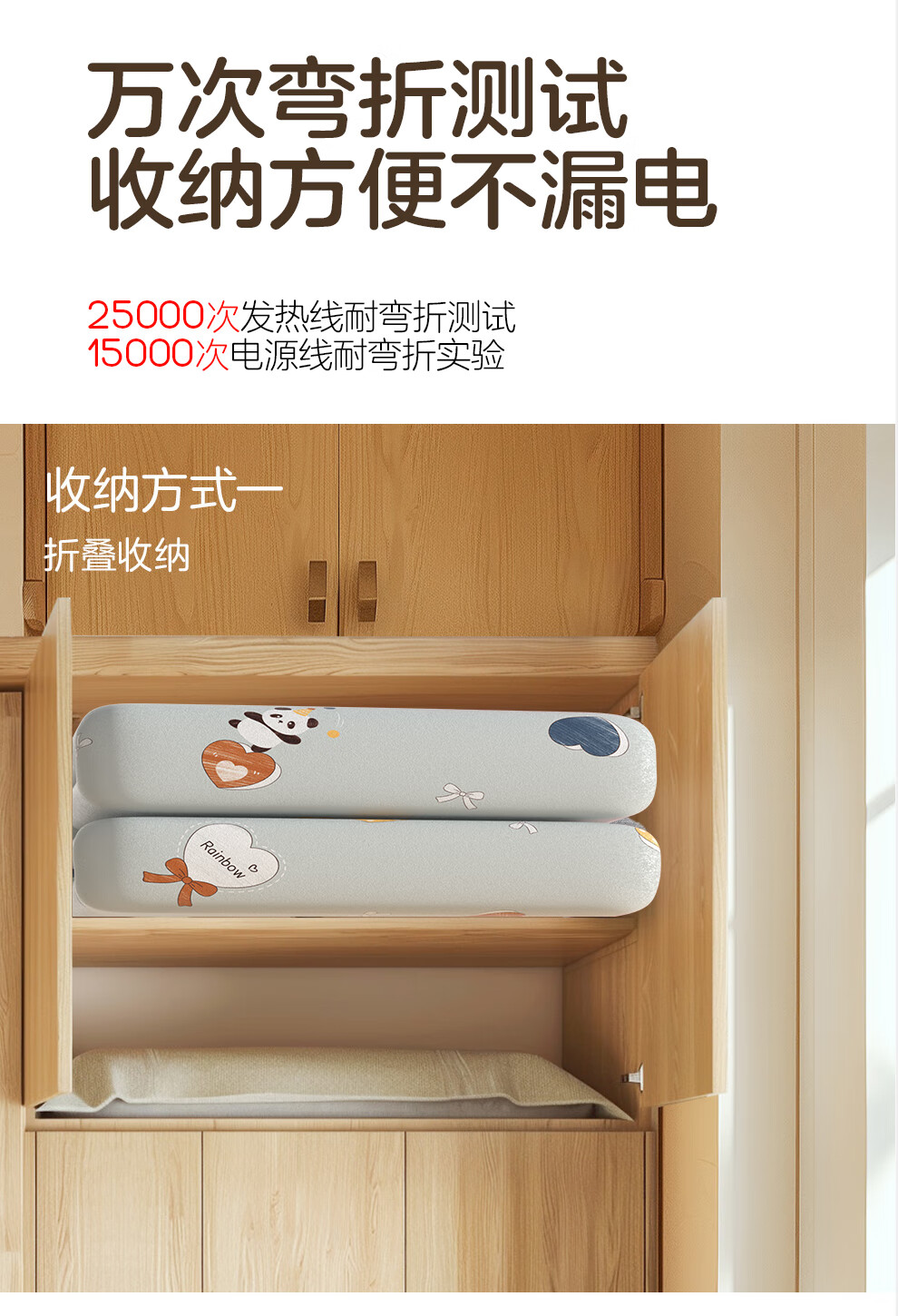 彩虹(RAINBOW) 电热毯单/双人调温/定时除螨电褥子多重自动断电保护排潮除湿 双控调温 长2.0米宽1.8米 无纺布