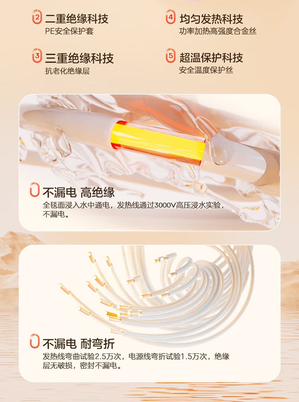 长城石墨烯电热毯双控除螨安全速热自动断电可水洗电褥子 9D提花牛奶丝【可水洗才更方便】 200*180cm智能断电【一键除螨】