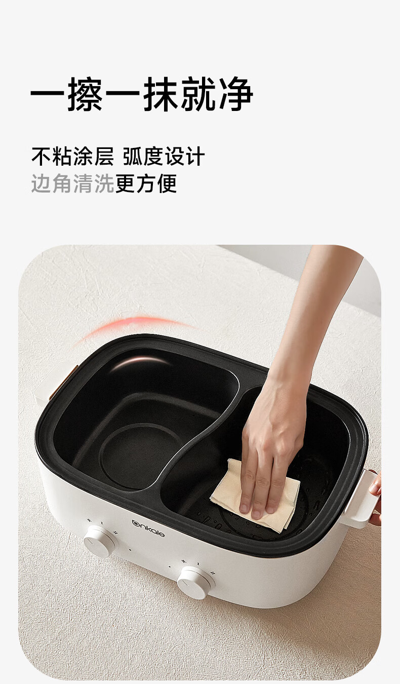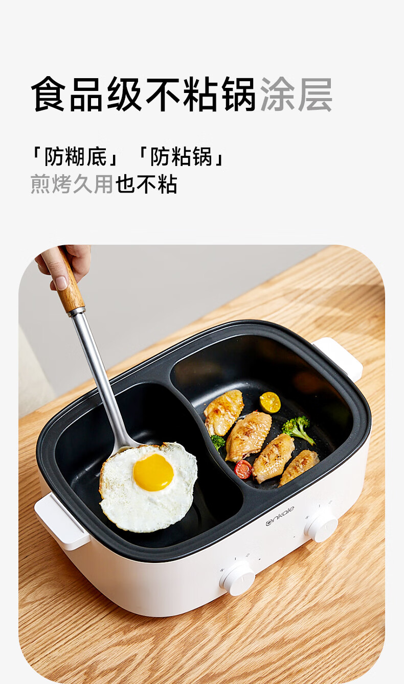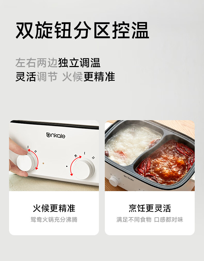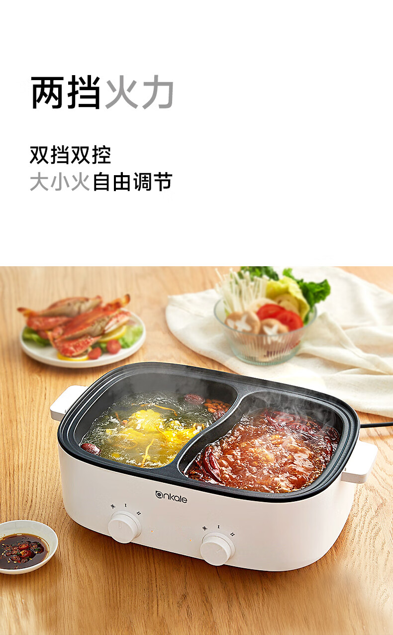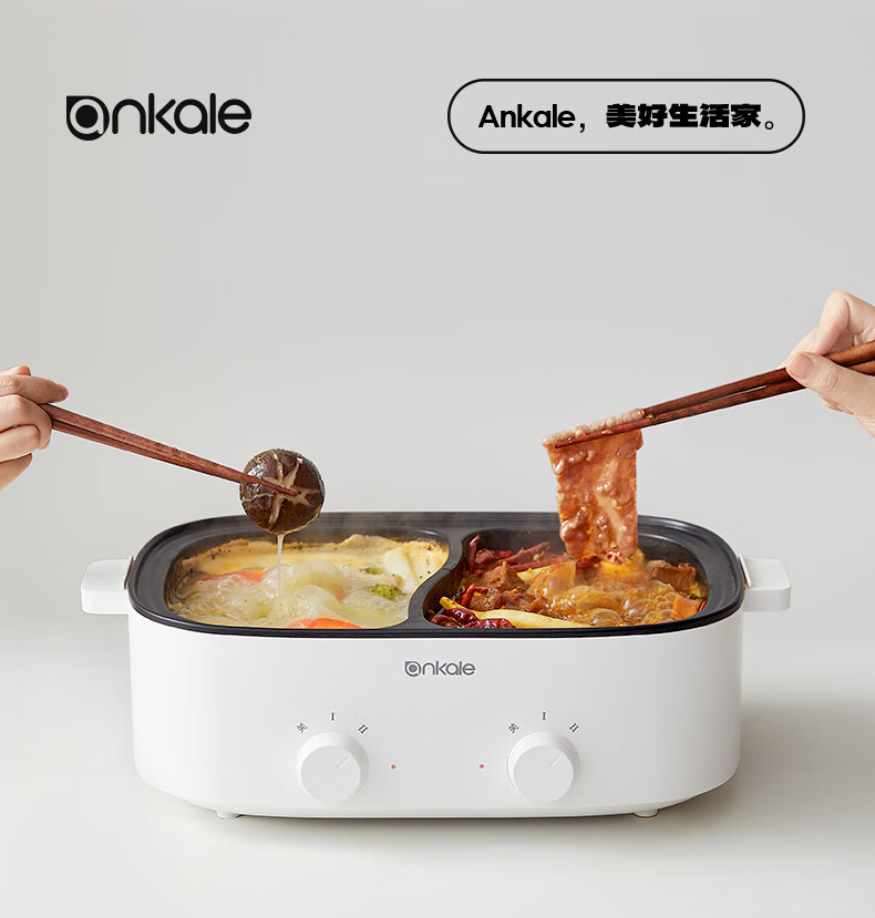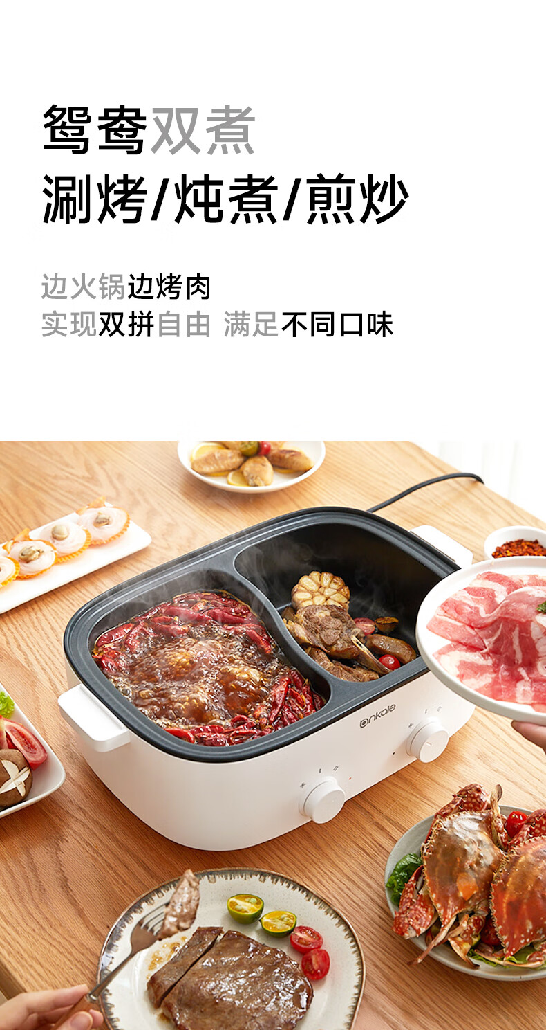 ankale鸳鸯电火锅 电热锅电蒸锅炖蒸煮一体电锅多功能锅电炖锅家用大容量不粘锅 5L 鸳鸯锅-分区控温
