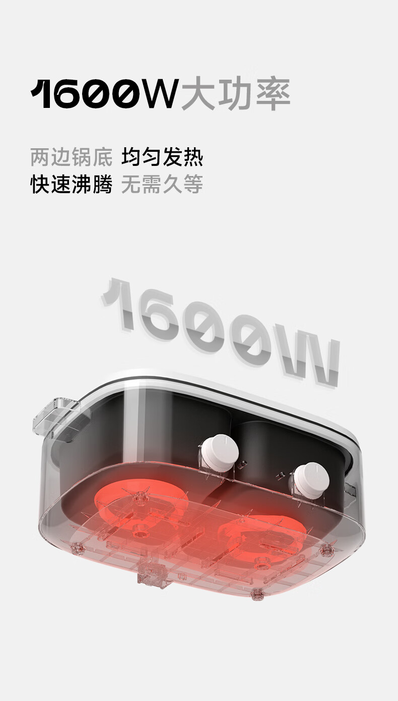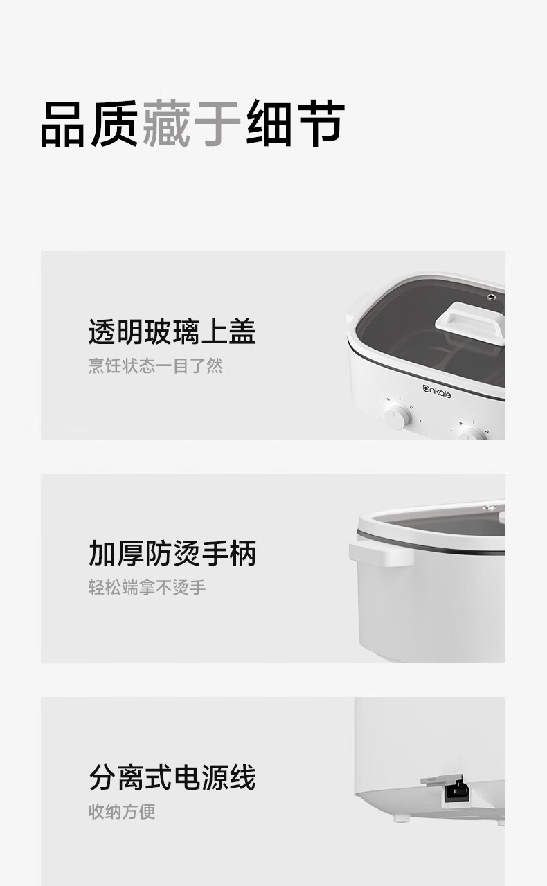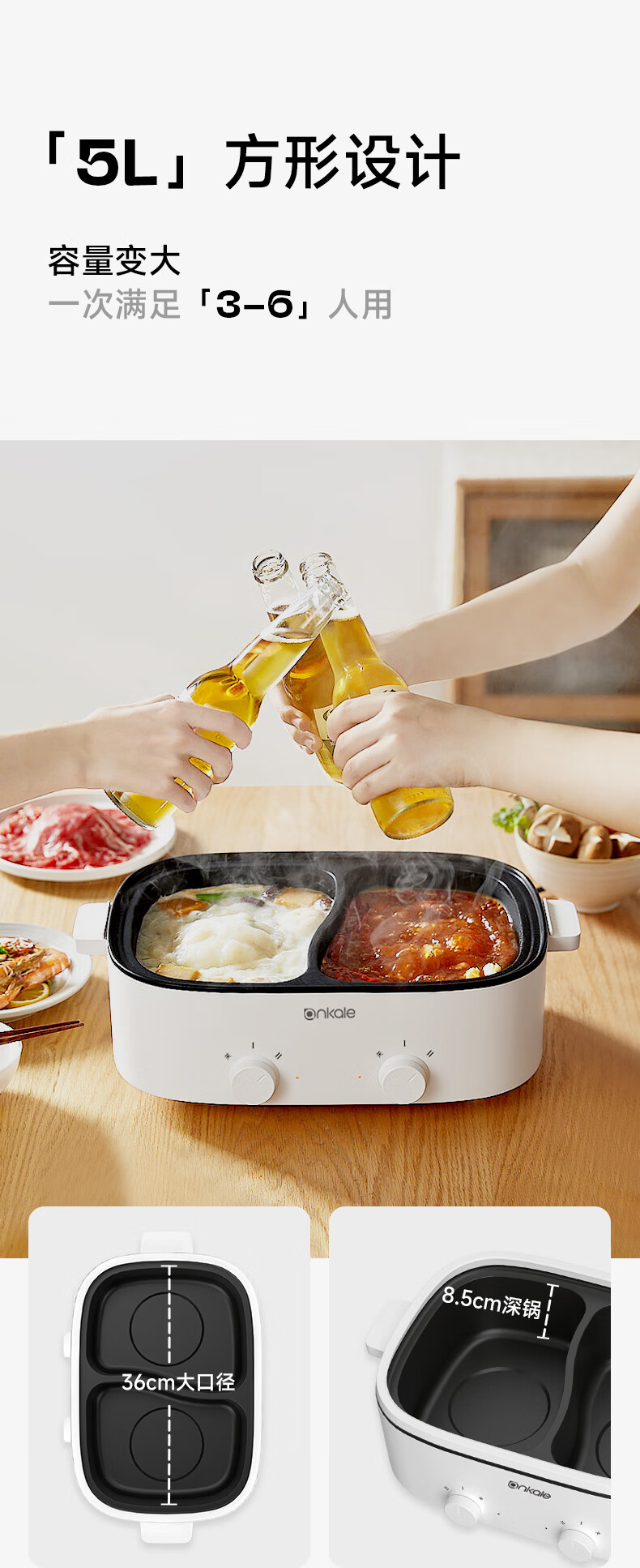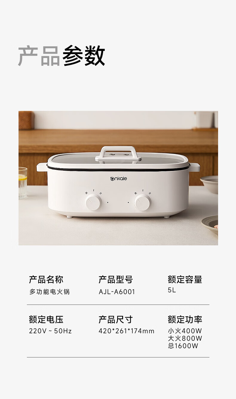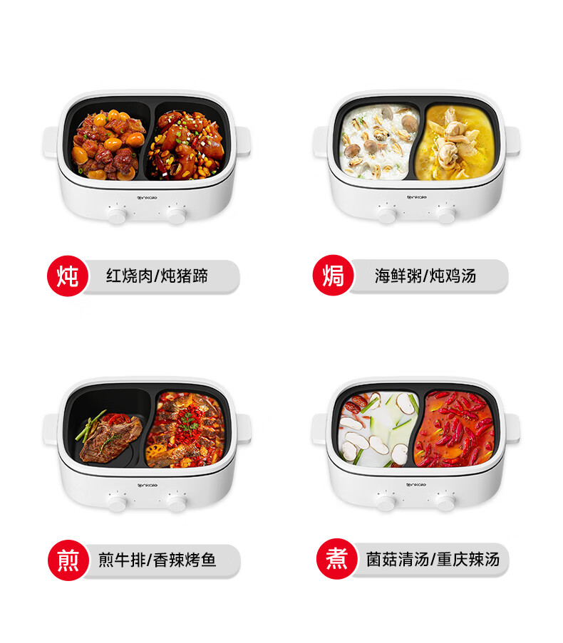 ankale鸳鸯电火锅 电热锅电蒸锅炖蒸煮一体电锅多功能锅电炖锅家用大容量不粘锅 5L 鸳鸯锅-分区控温