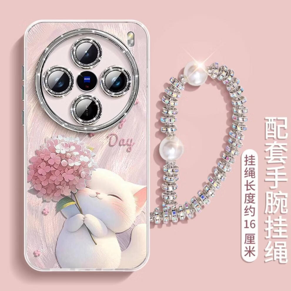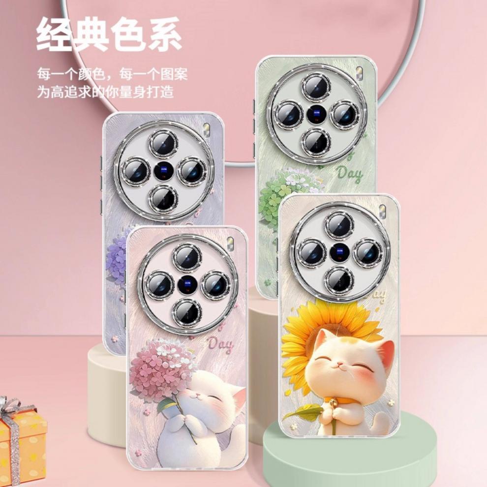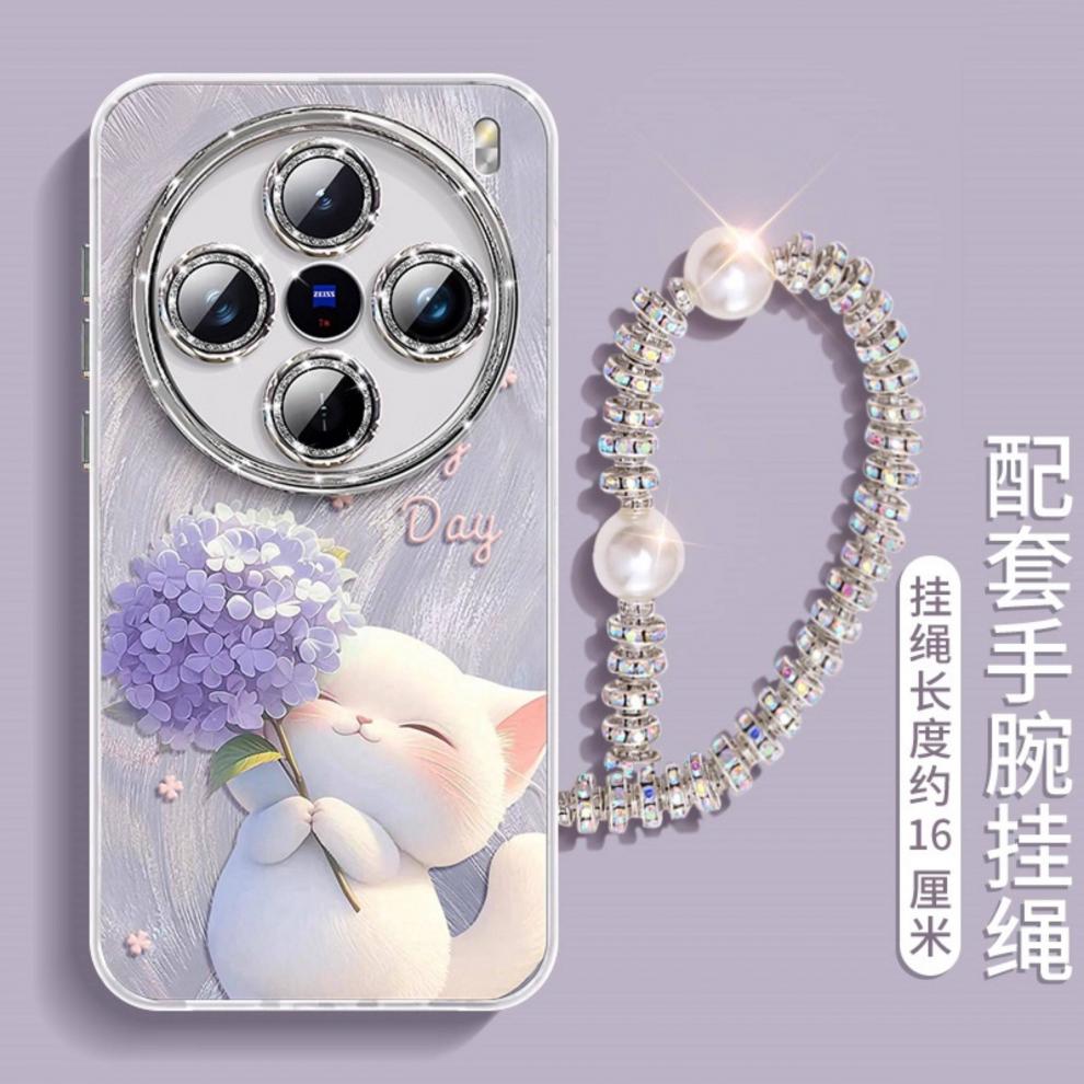 俏博莱适用X300Pro手机壳新款小猫捧花设计防摔保护套兼容X200X100X60S50S17eS16S12 自带镜头膜【绣球猫】炫彩羽纱蓝色+挂绳 vivo Y300 Pro