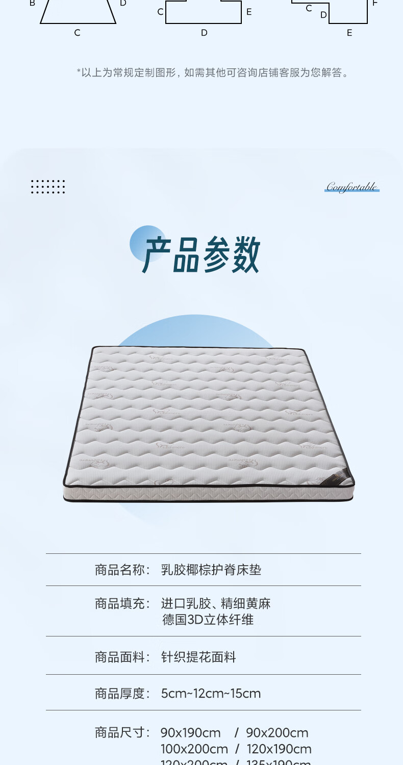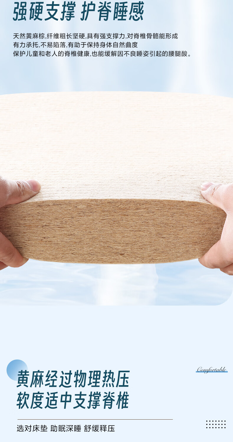 海马天然椰棕黄麻乳胶床垫护脊舒适家用卧室宿舍榻榻米席梦思床垫 5cm椰棕+2cm乳胶(10cm厚) 1.5*2米