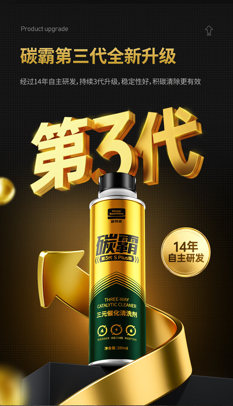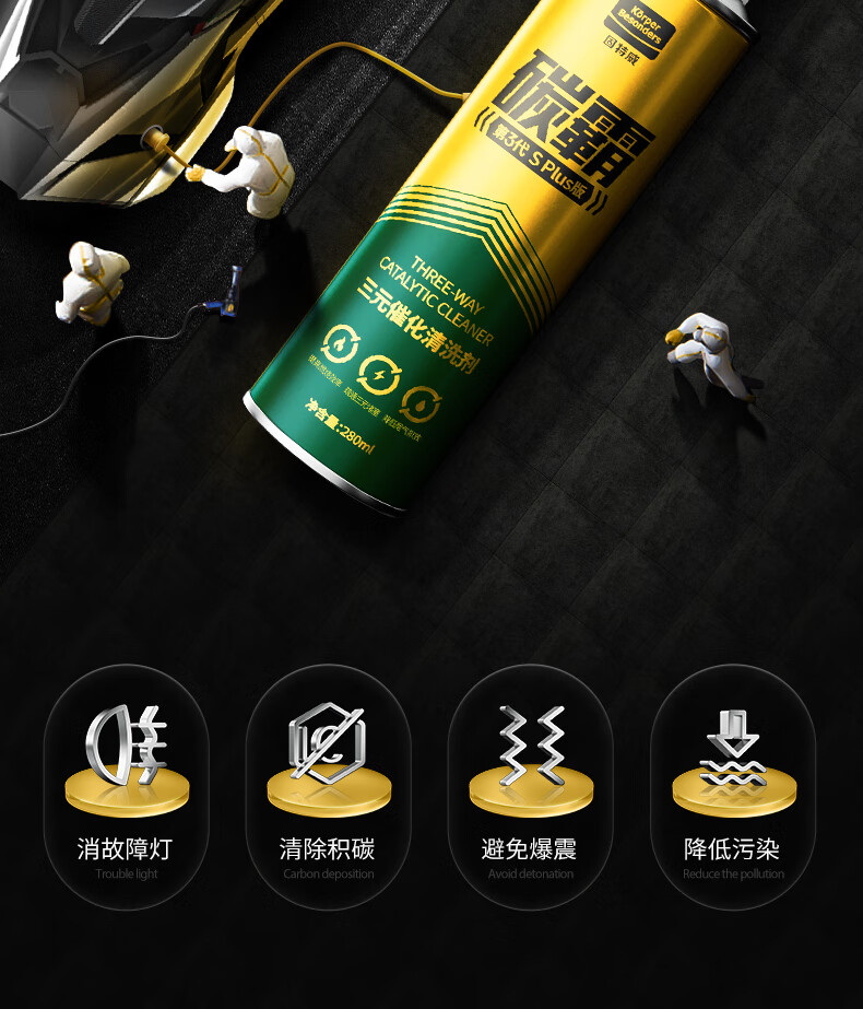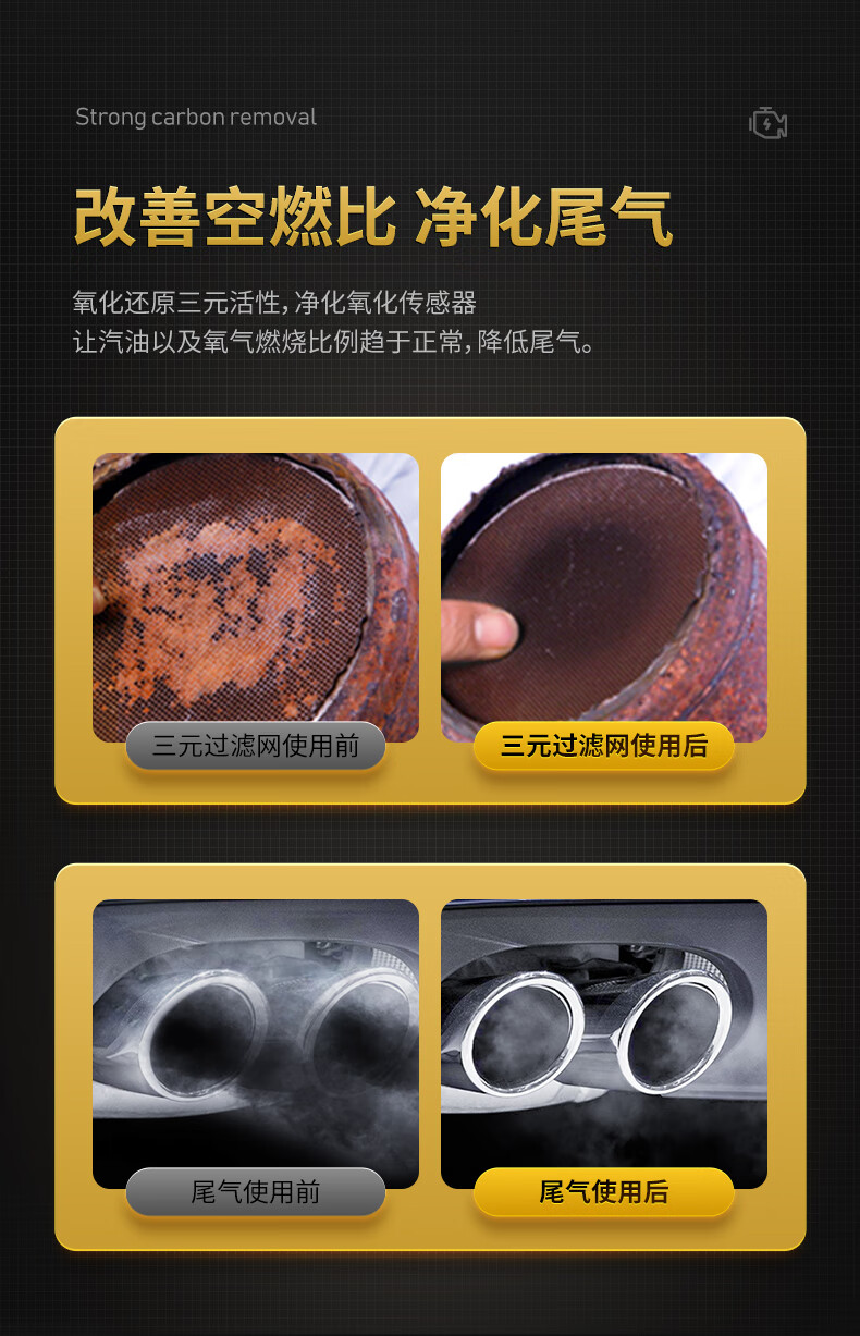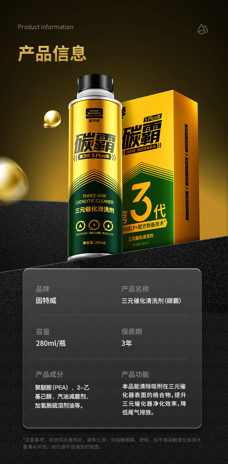 固特威 碳霸S燃油宝三元催化器清洗剂发动机内部除积碳治尾气超标 三元催化清洗剂 3瓶装(10-15万公里)