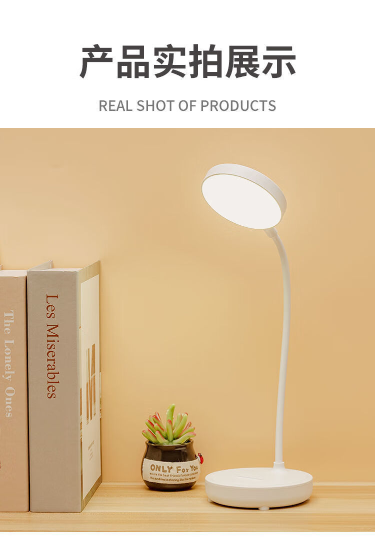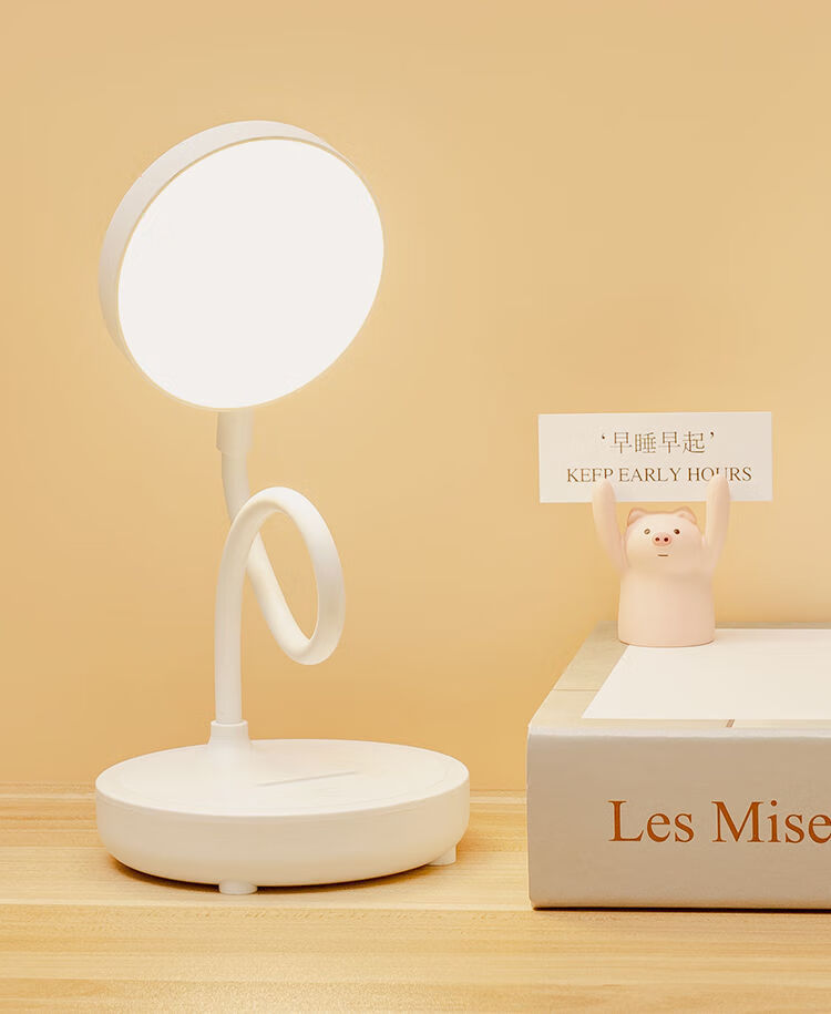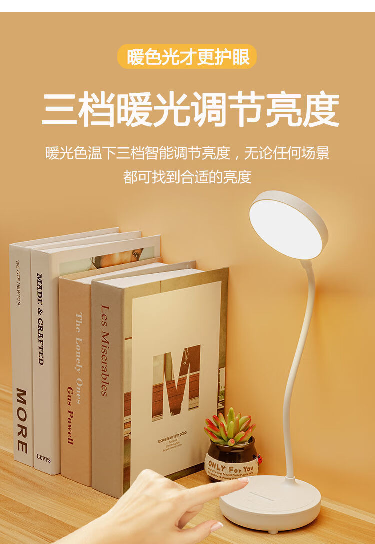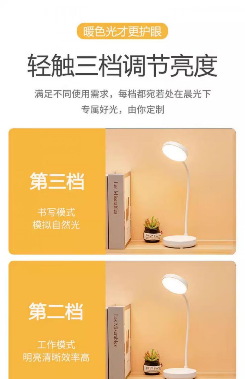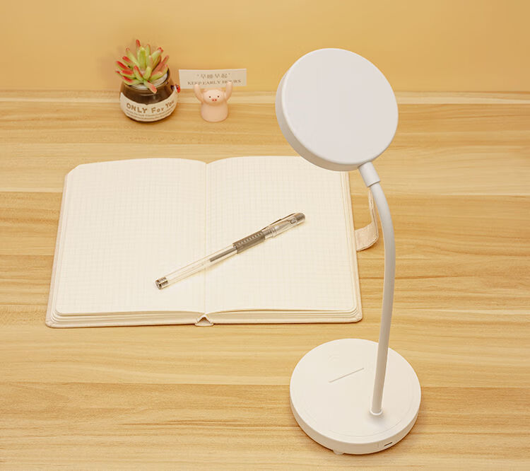 翰鸥斐台灯卧室床头灯老人用台灯学习专用宿舍学生充电护眼大学生小台灯 圆盘-插电款[仅插电使用]调光调 触摸开关