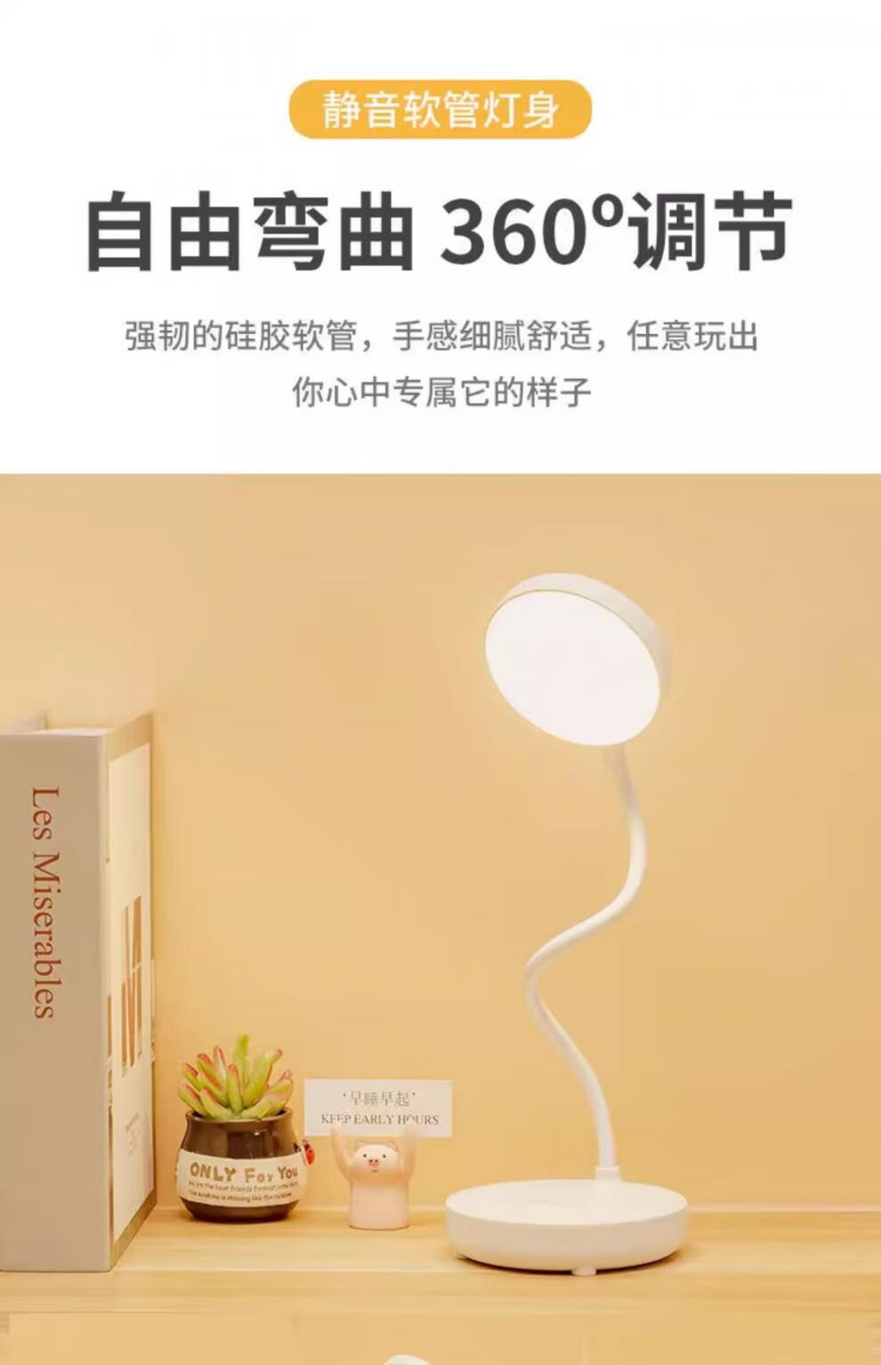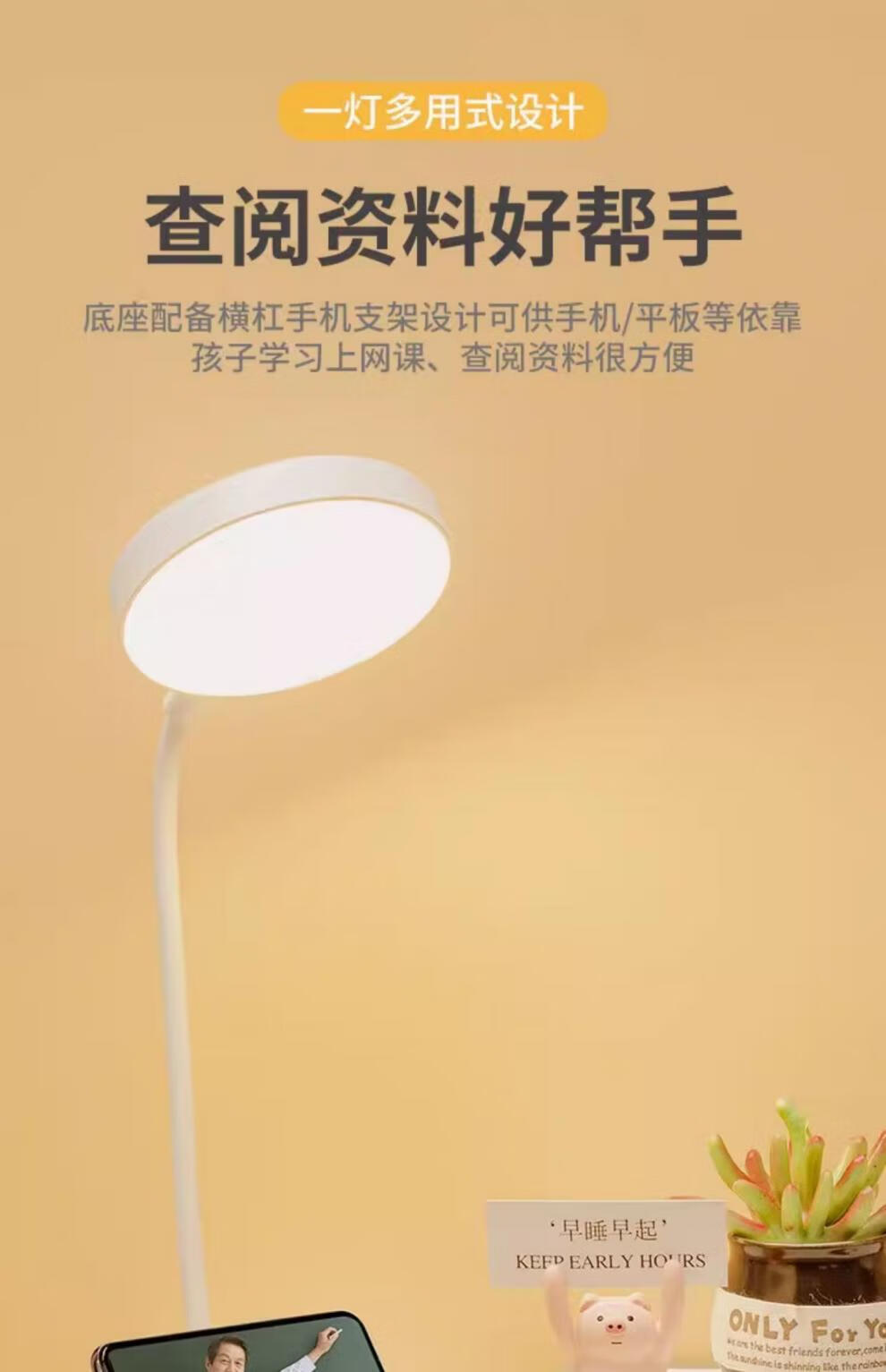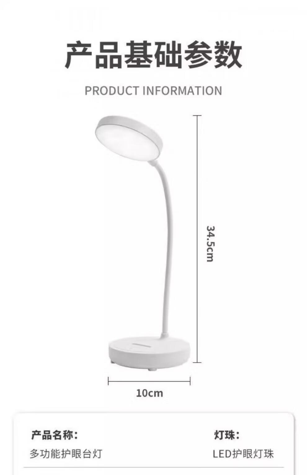 翰鸥斐台灯卧室床头灯老人用台灯学习专用宿舍学生充电护眼大学生小台灯 圆盘-插电款[仅插电使用]调光调 触摸开关