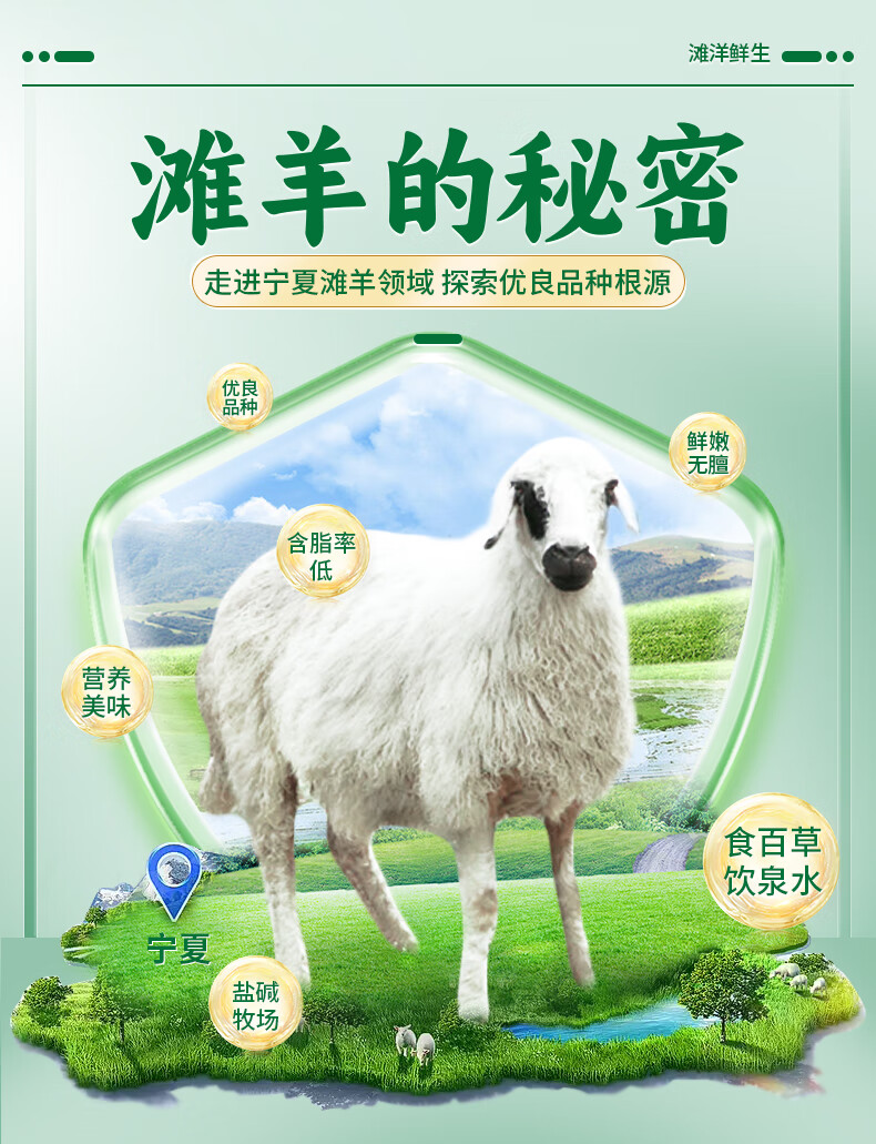 滩洋鲜生 宁夏滩羊肉 原切羔羊排3斤 生鲜冷冻羊肉烧烤手抓清炖年货送礼