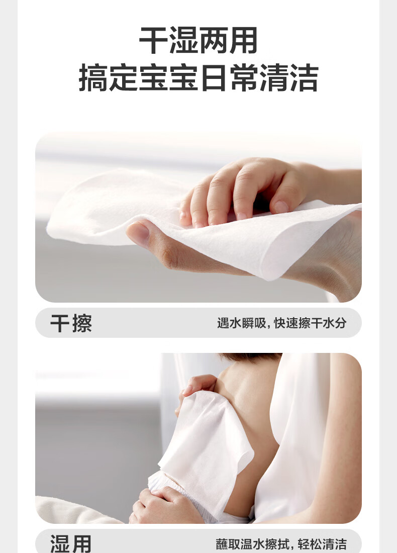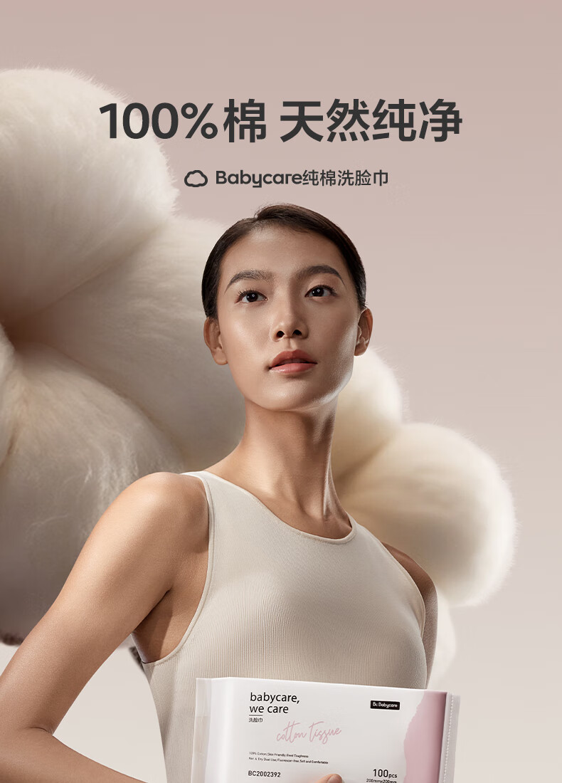 babycare纯棉棉柔巾 一次性洗脸巾100%纯棉干湿两用洁面巾加厚婴儿棉柔巾 100抽 12包 兔兔巾【200mm*120mm】
