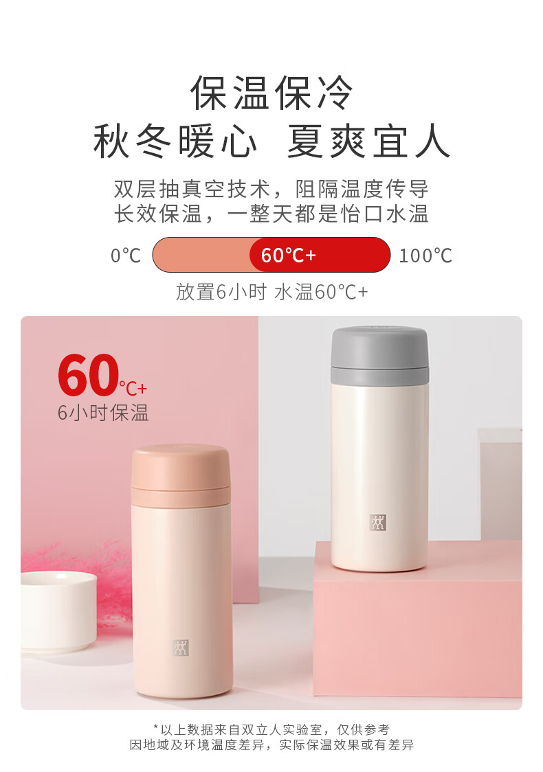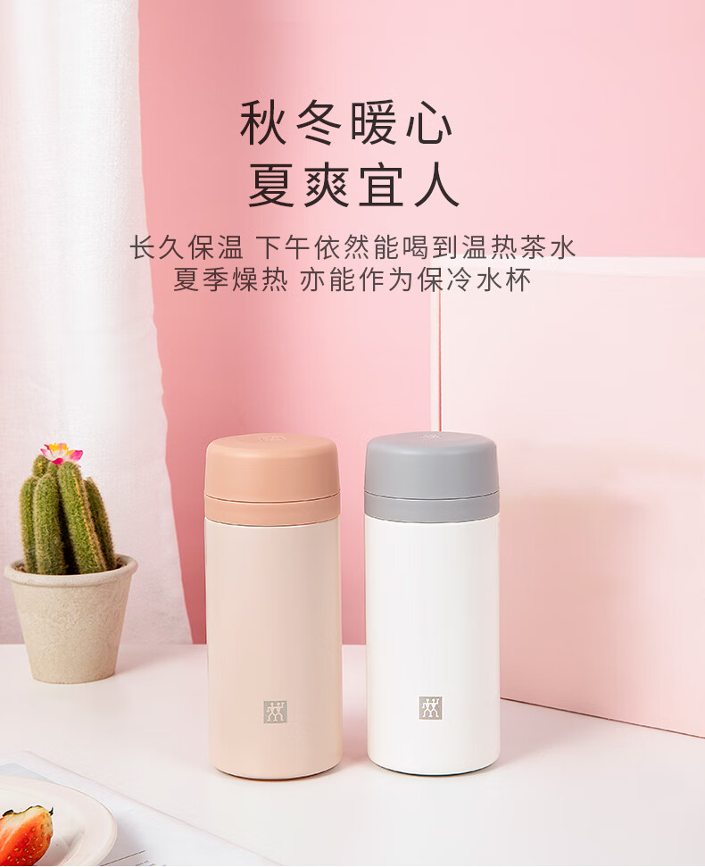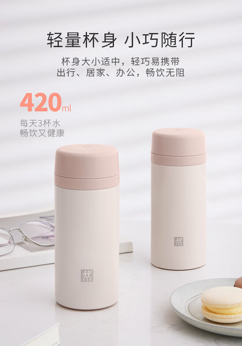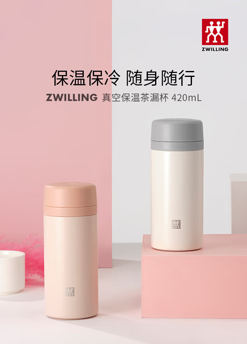 双立人(ZWILLING)水杯保温杯杯子真空茶漏杯大容量不锈钢茶水分离杯节日礼物 粉色-【支持激光印制】420ml