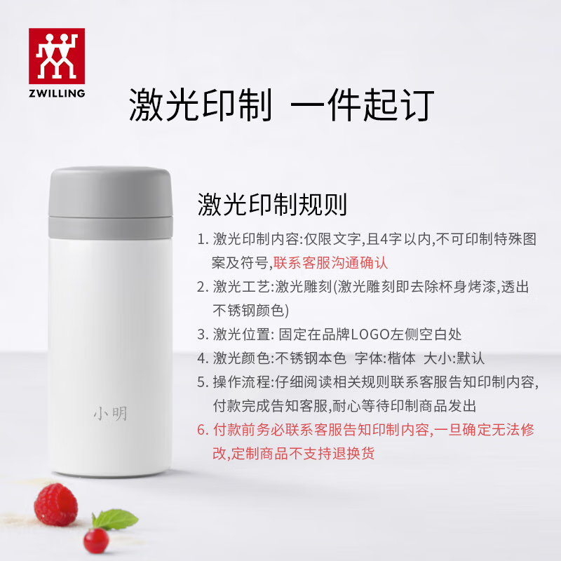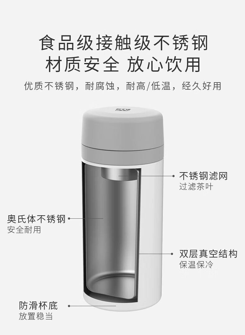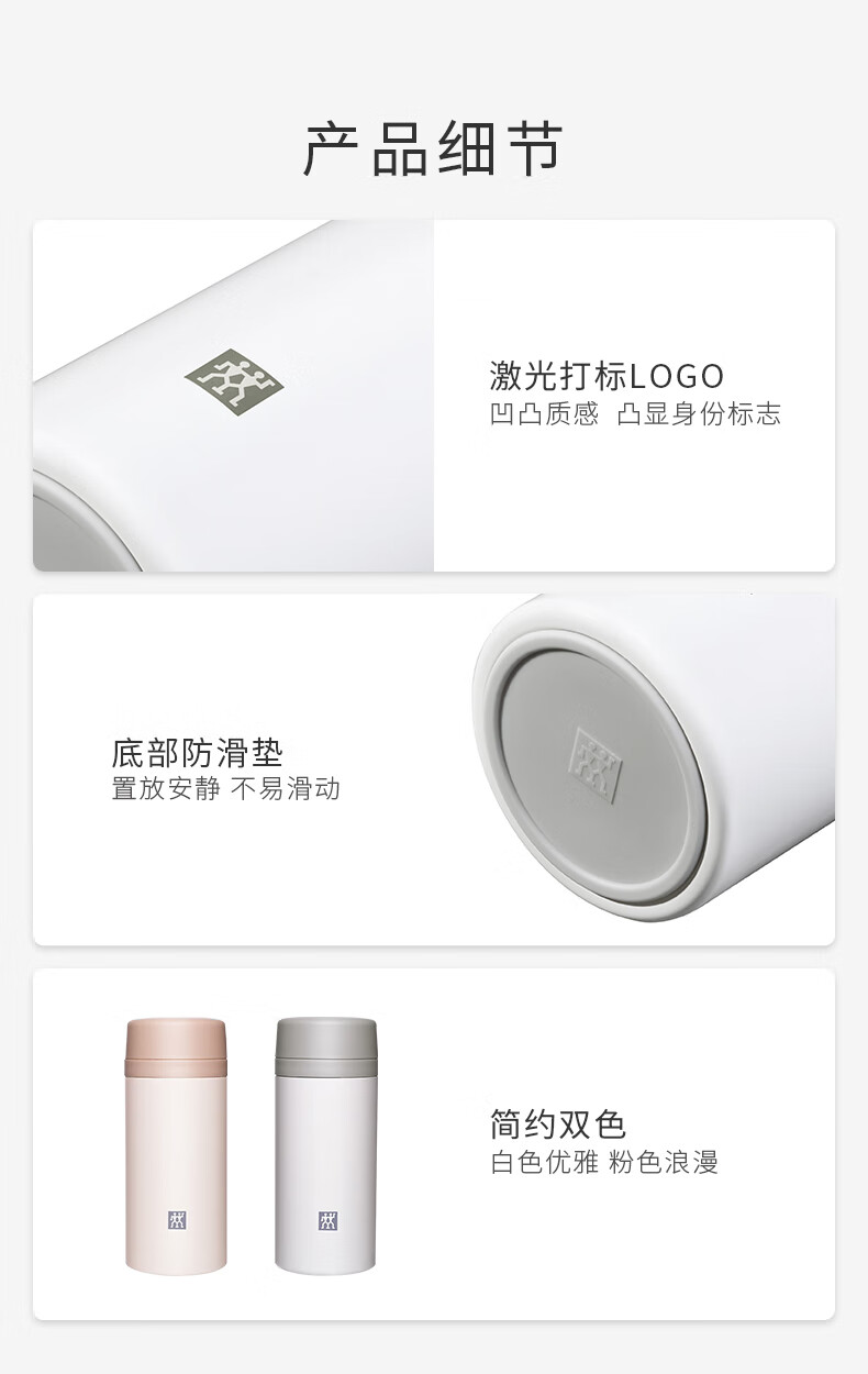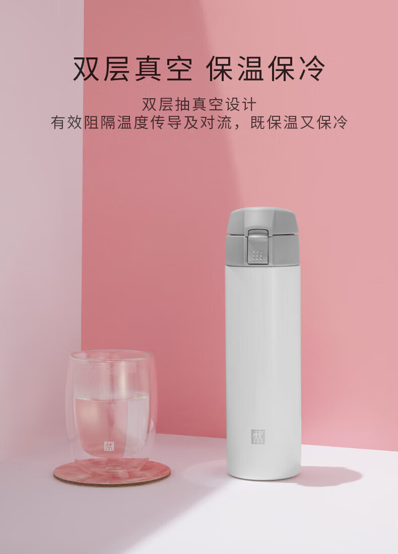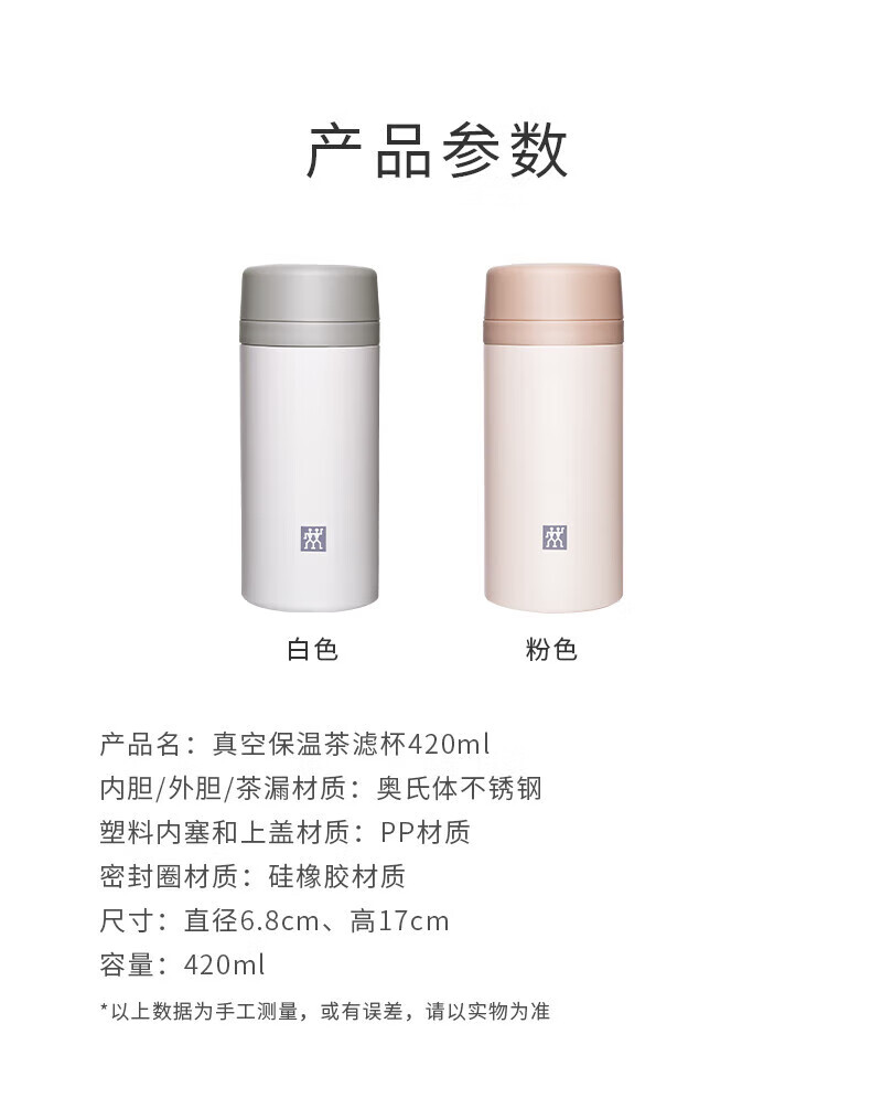 双立人(ZWILLING)水杯保温杯杯子真空茶漏杯大容量不锈钢茶水分离杯节日礼物 粉色-【支持激光印制】420ml