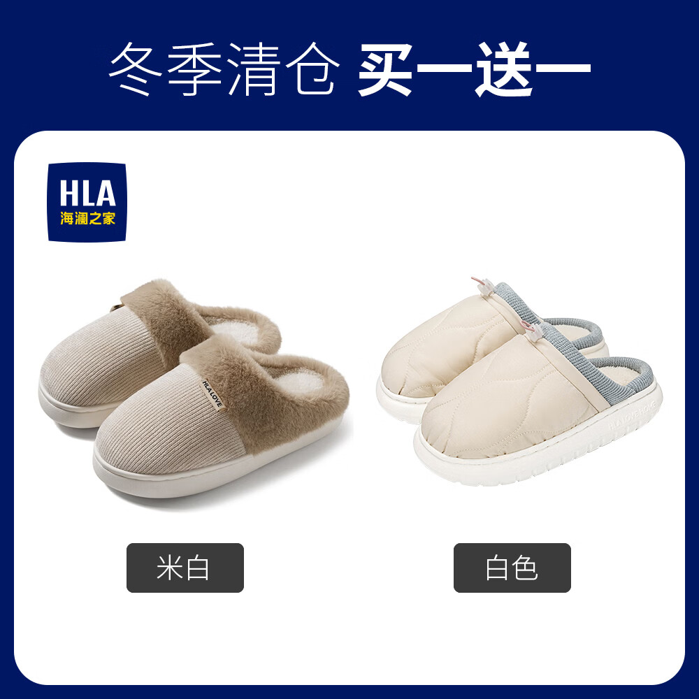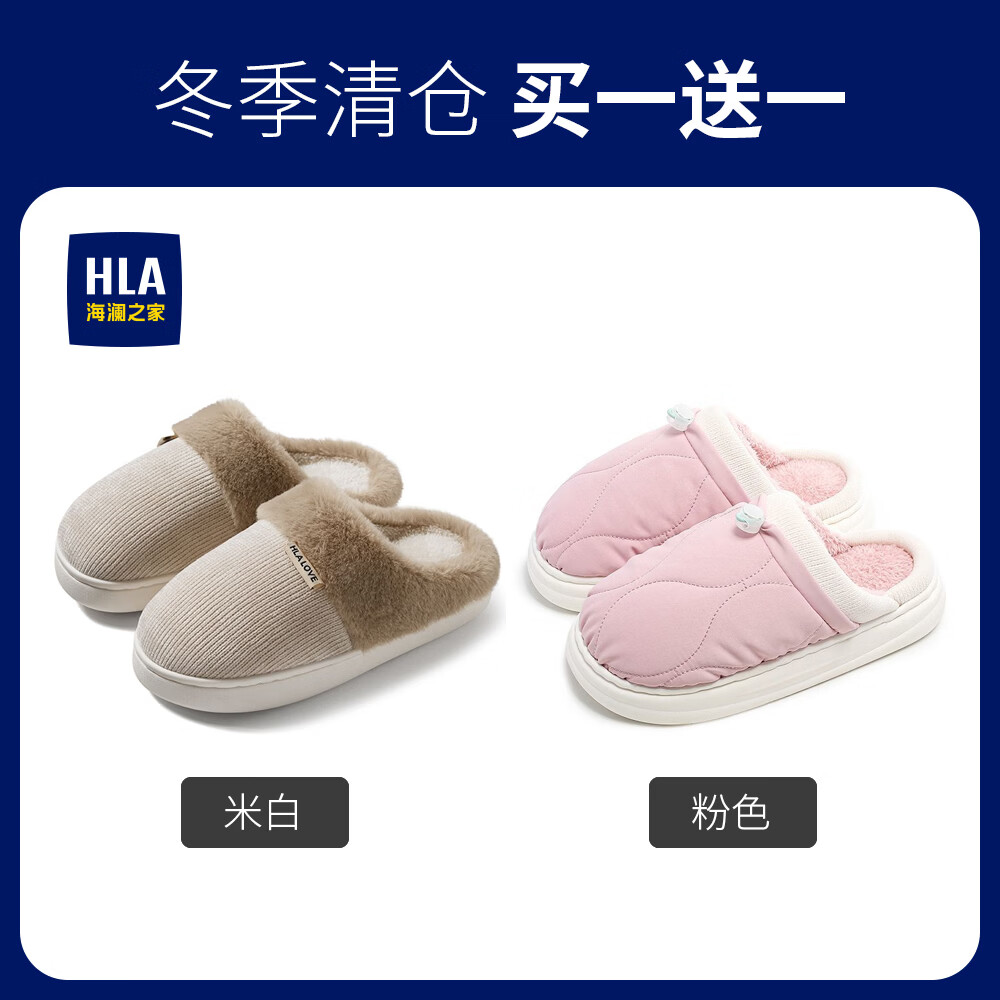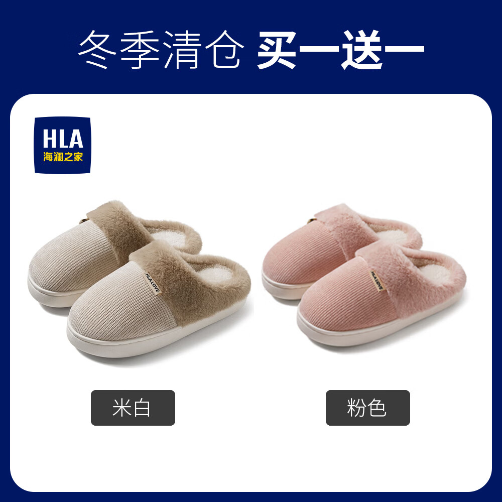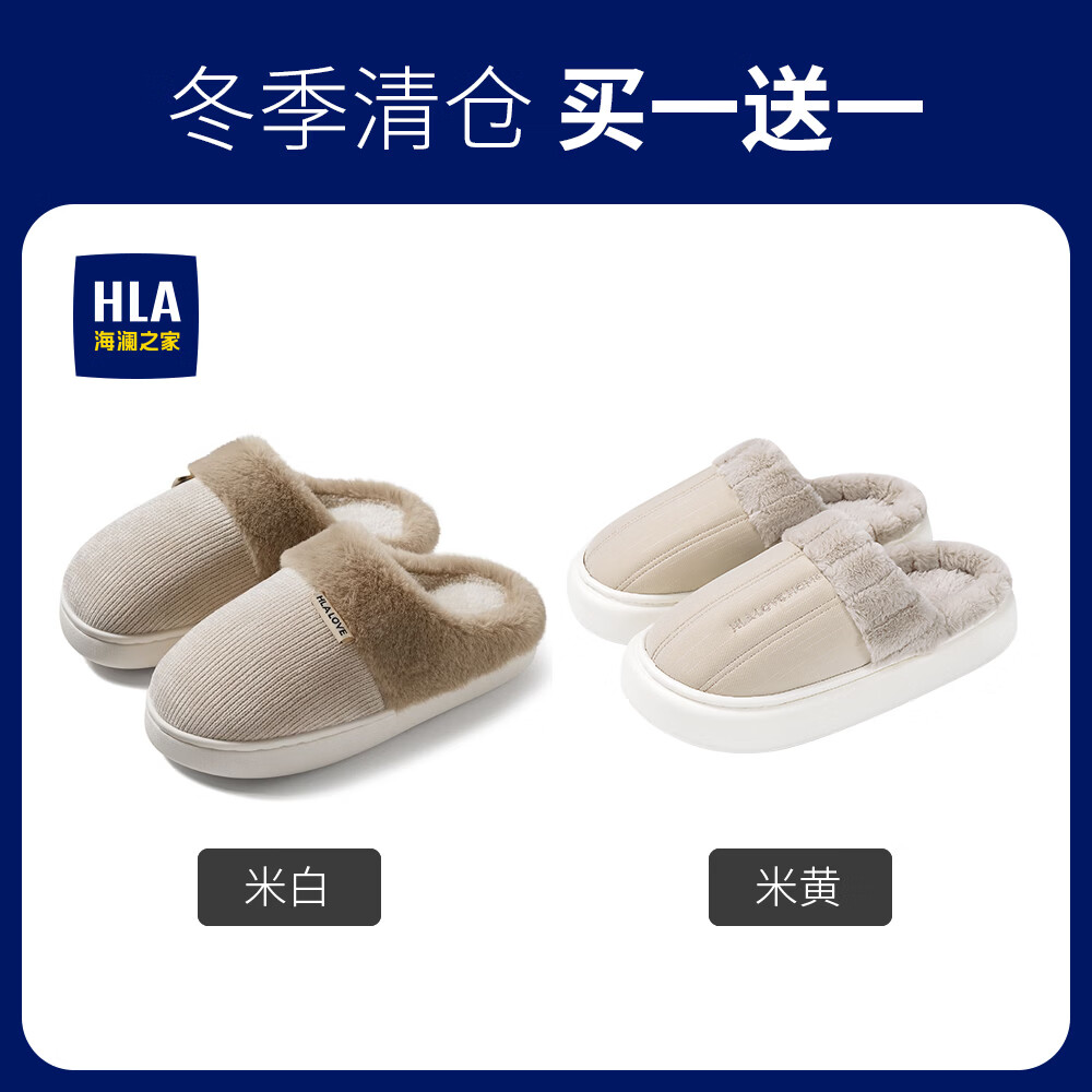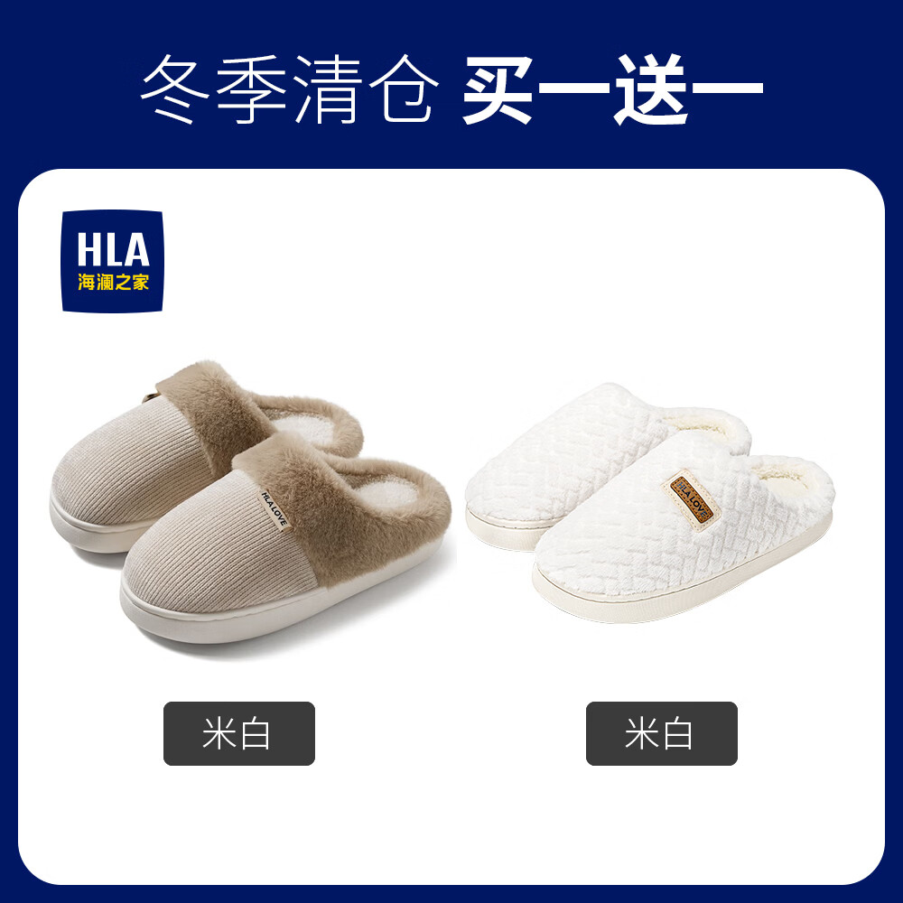 海澜之家(HLA)买一送一棉拖鞋女士秋冬季新款室内家居情侣厚底毛绒保暖拖鞋女 米白+米白1 组合装 38-39+40-41
