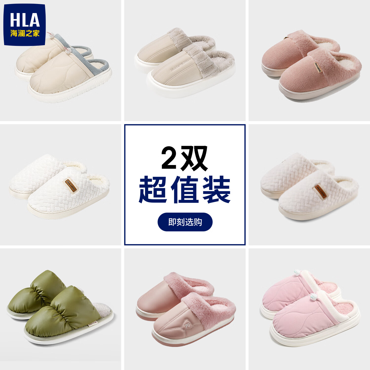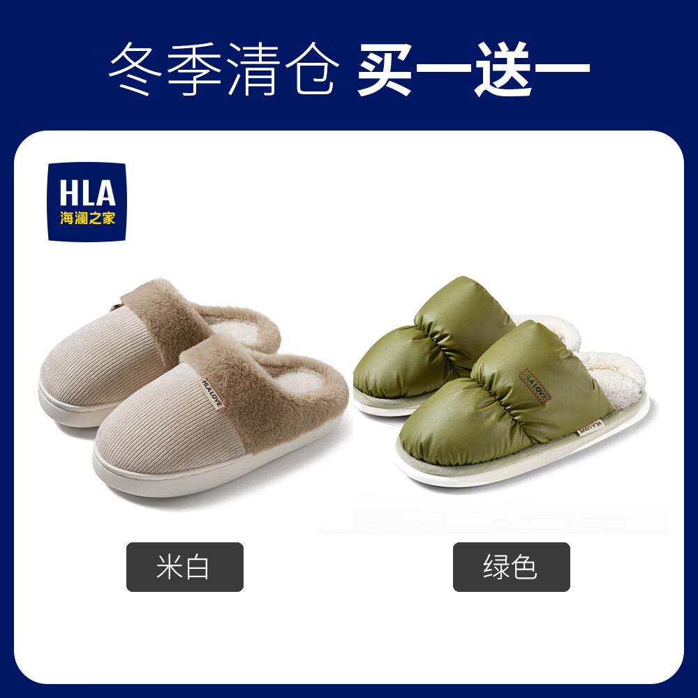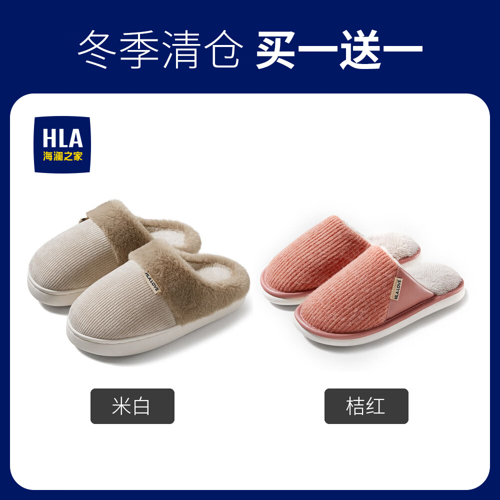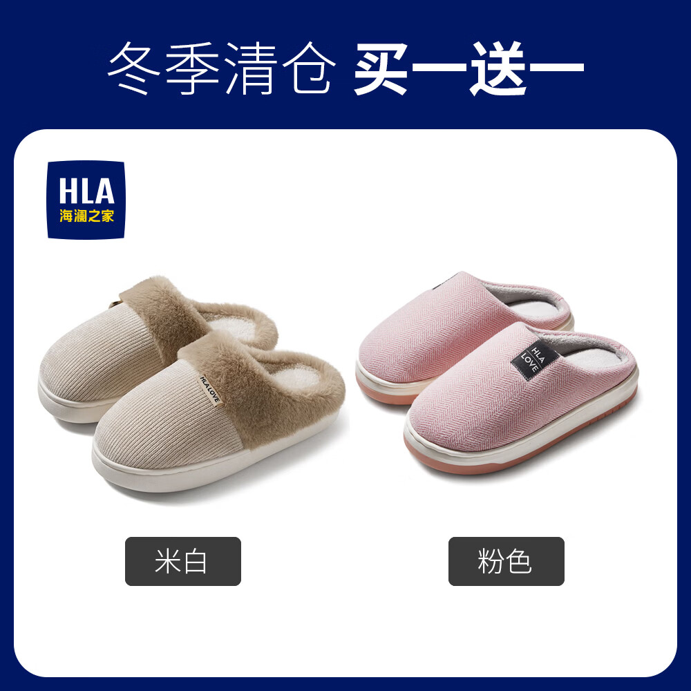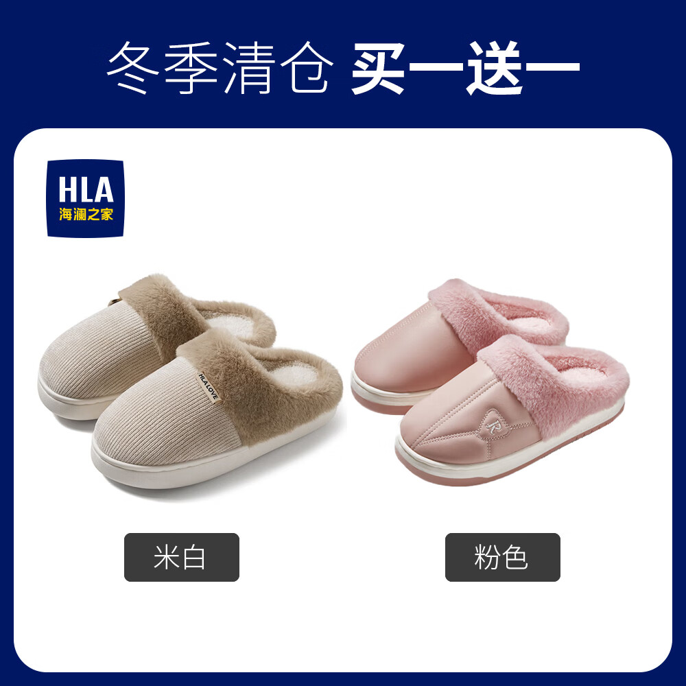 海澜之家(HLA)买一送一棉拖鞋女士秋冬季新款室内家居情侣厚底毛绒保暖拖鞋女 米白+米白1 组合装 38-39+40-41