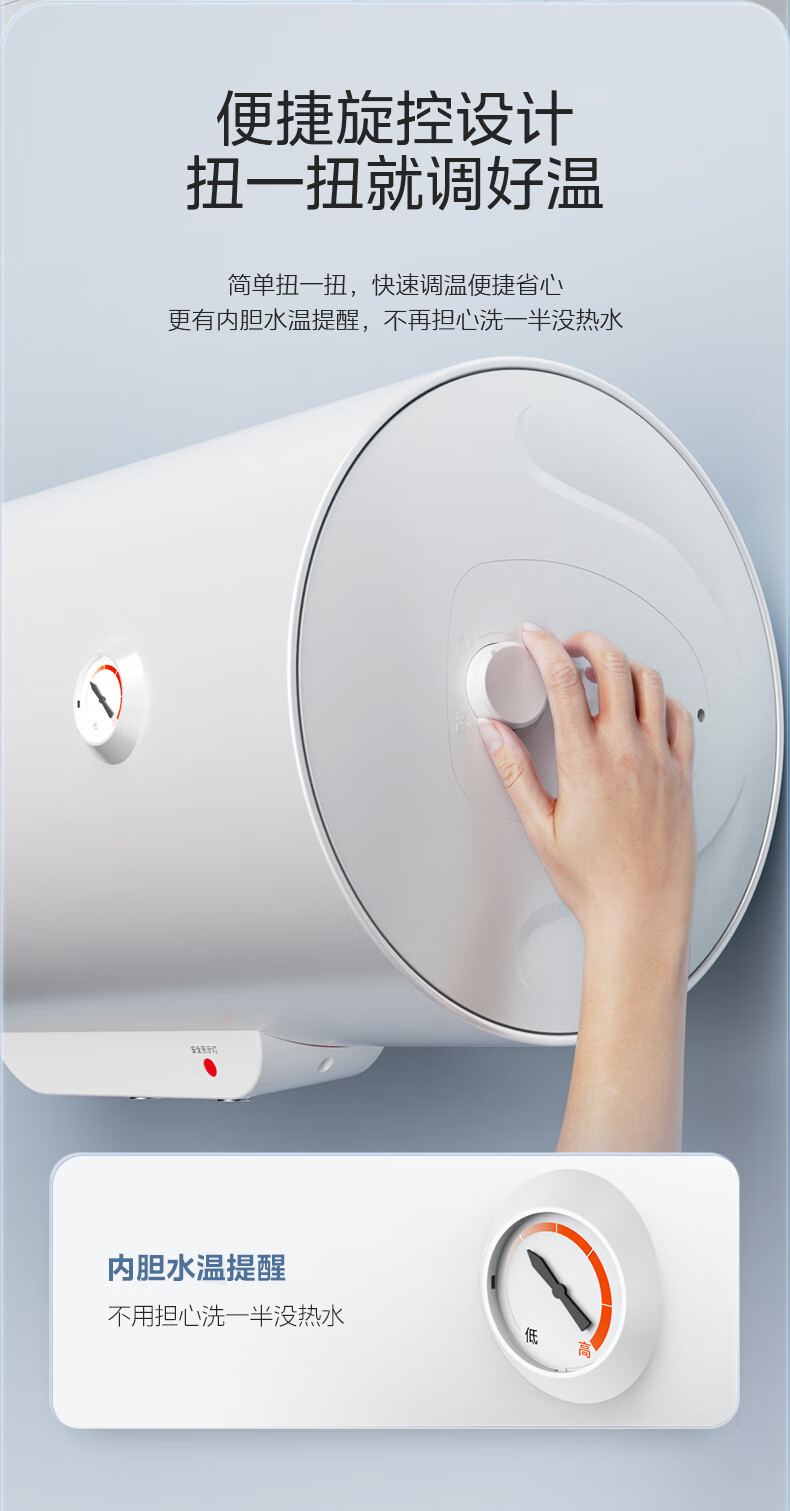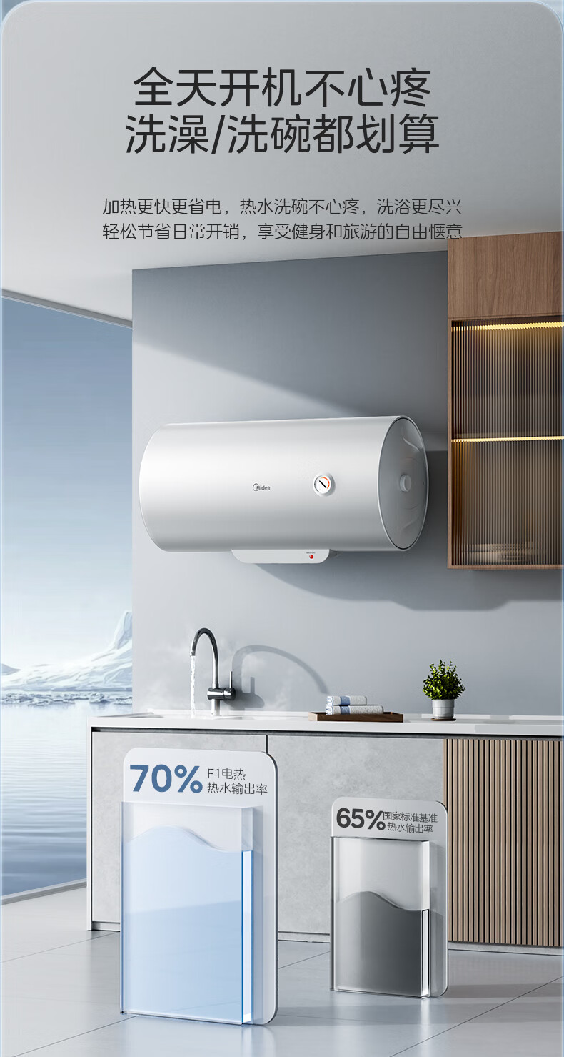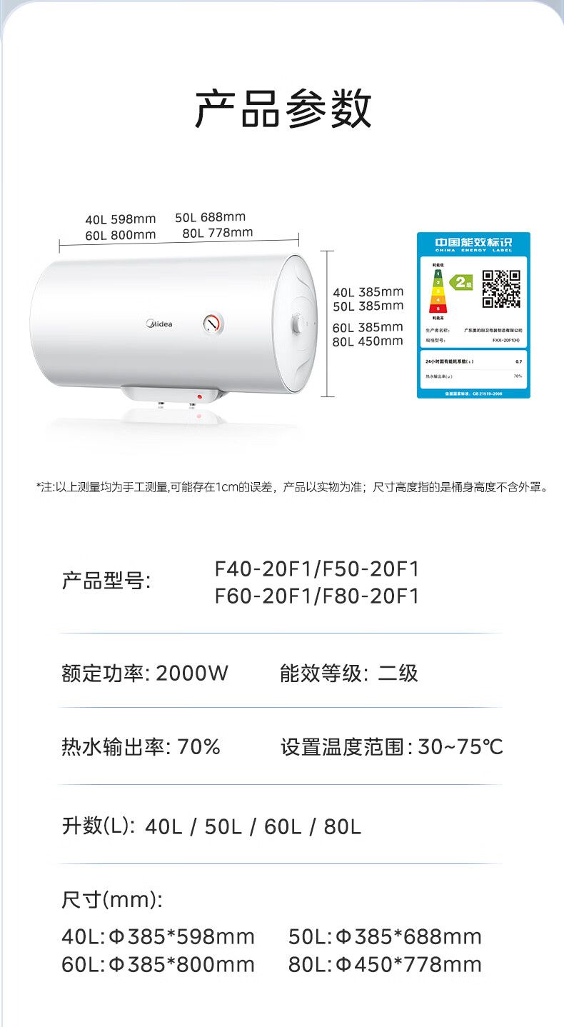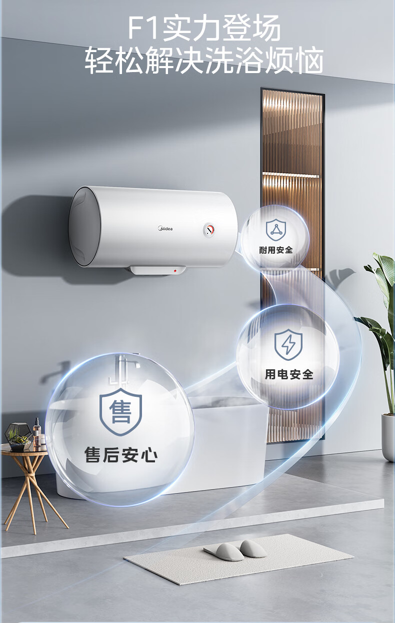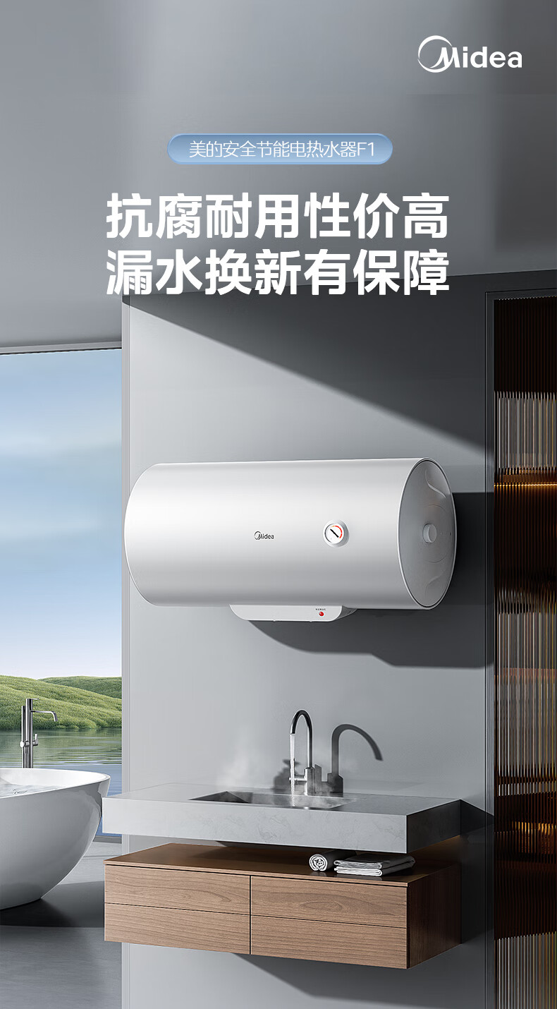 美的(Midea)【整机8年质保】60升电热水器2000W家用出租屋节能抑菌安全防电墙以旧换新门店同款F60-20F1(H)