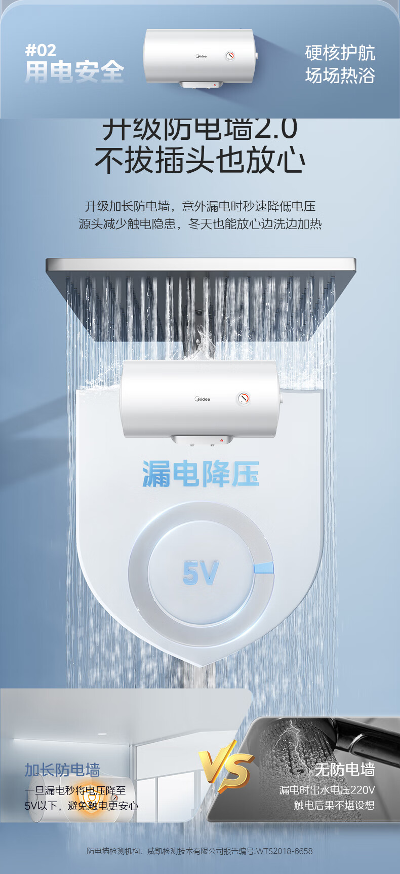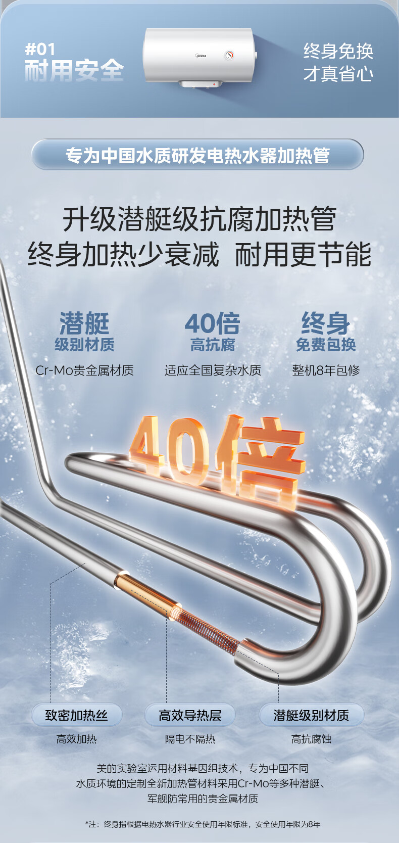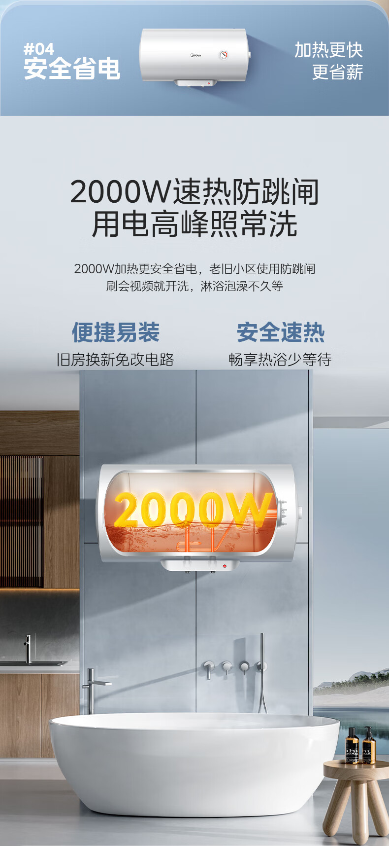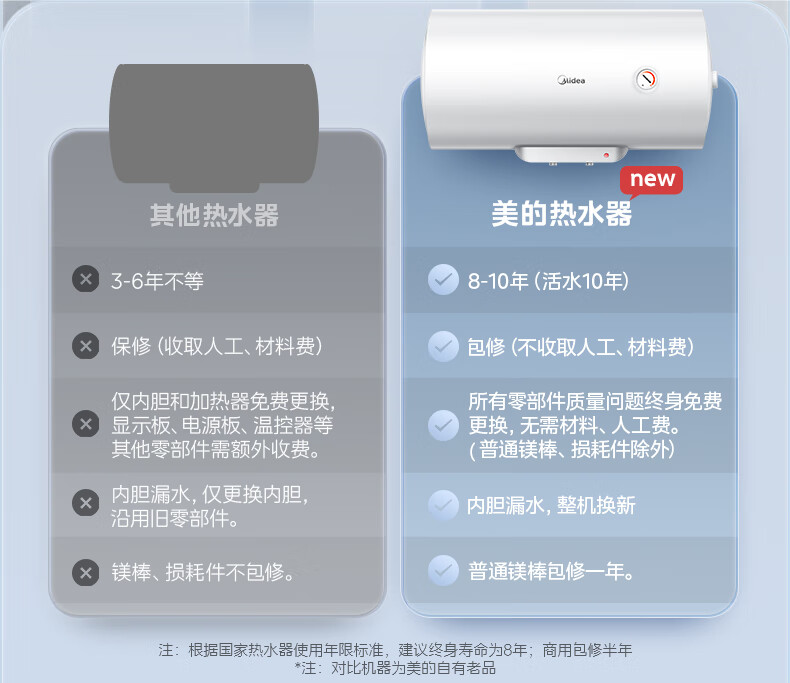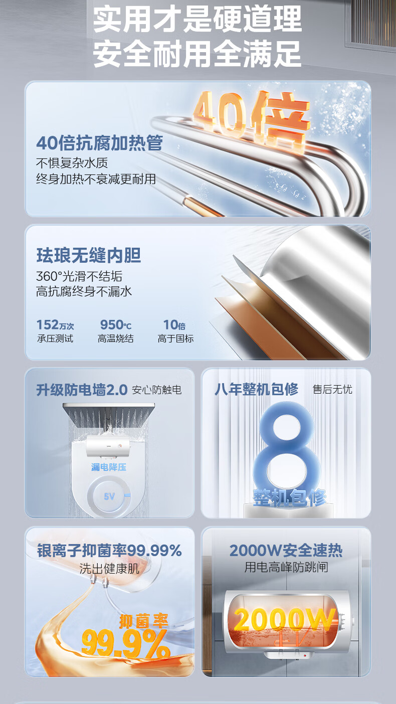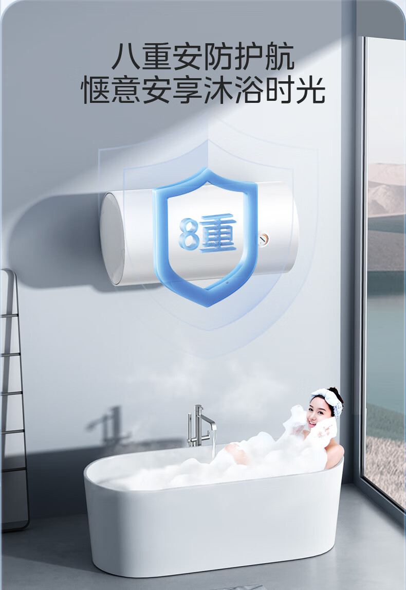 美的(Midea)【整机8年质保】60升电热水器2000W家用出租屋节能抑菌安全防电墙以旧换新门店同款F60-20F1(H)