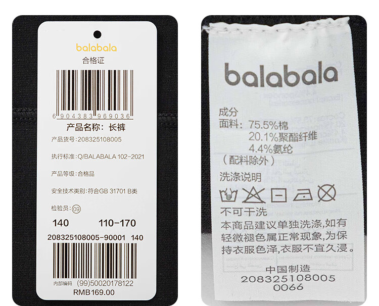巴拉巴拉balaone童装儿童裤子女童长裤2025秋直筒裤甜美时尚208325108005
