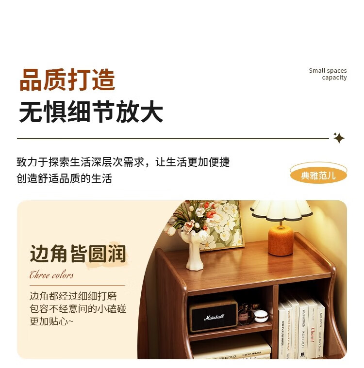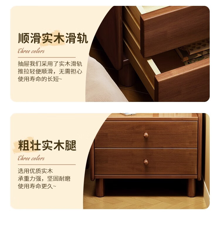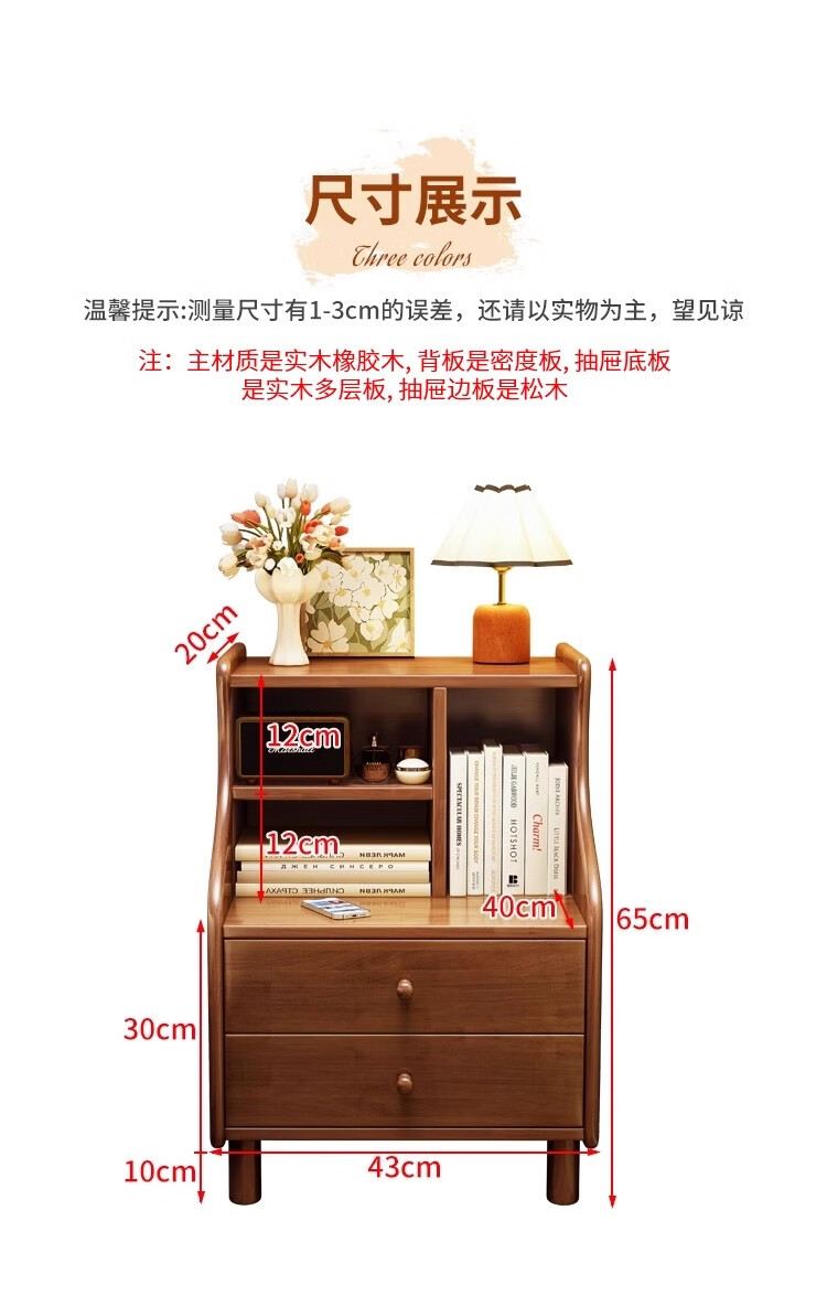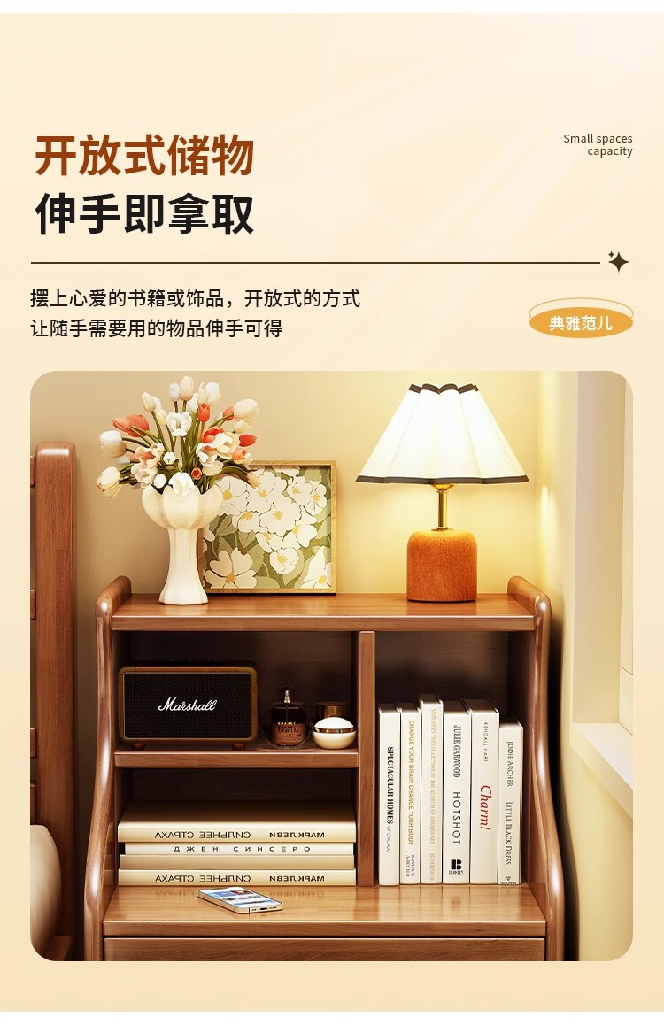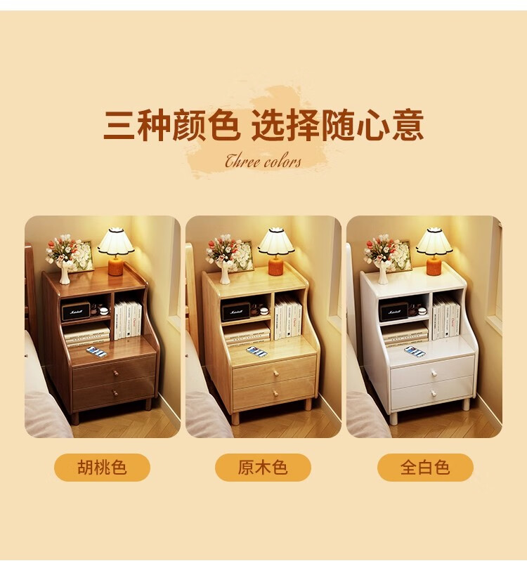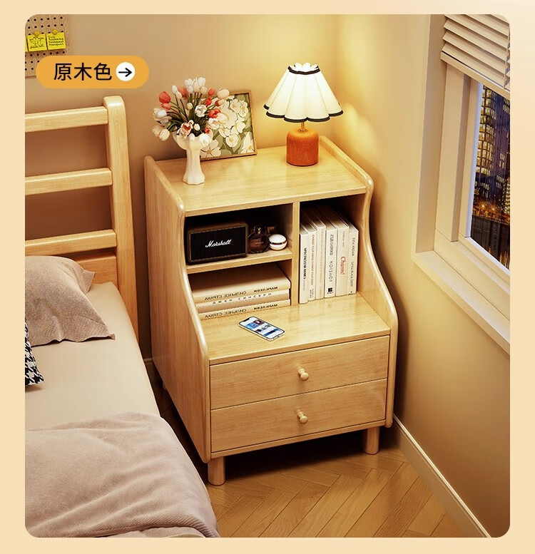 芈迪实木床头柜白色简约家用小型储物收纳柜卧室夹缝儿童床边柜置物架 胡桃色床头柜 双抽