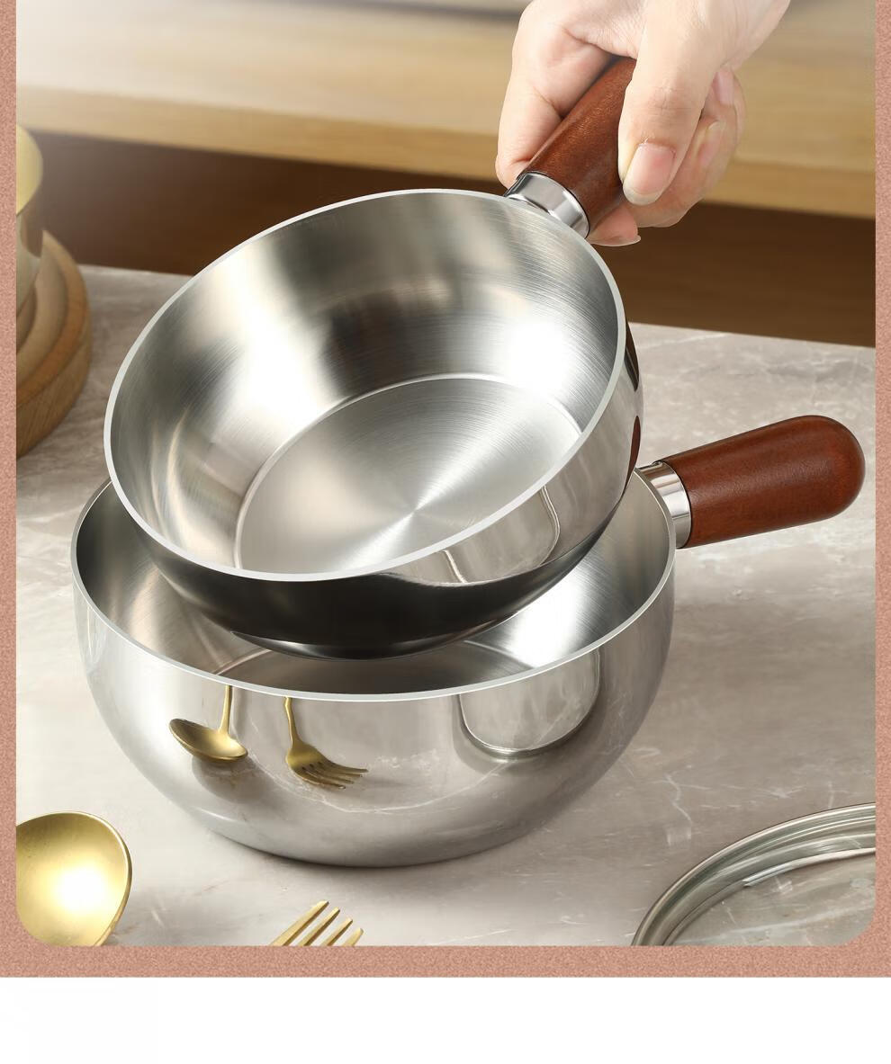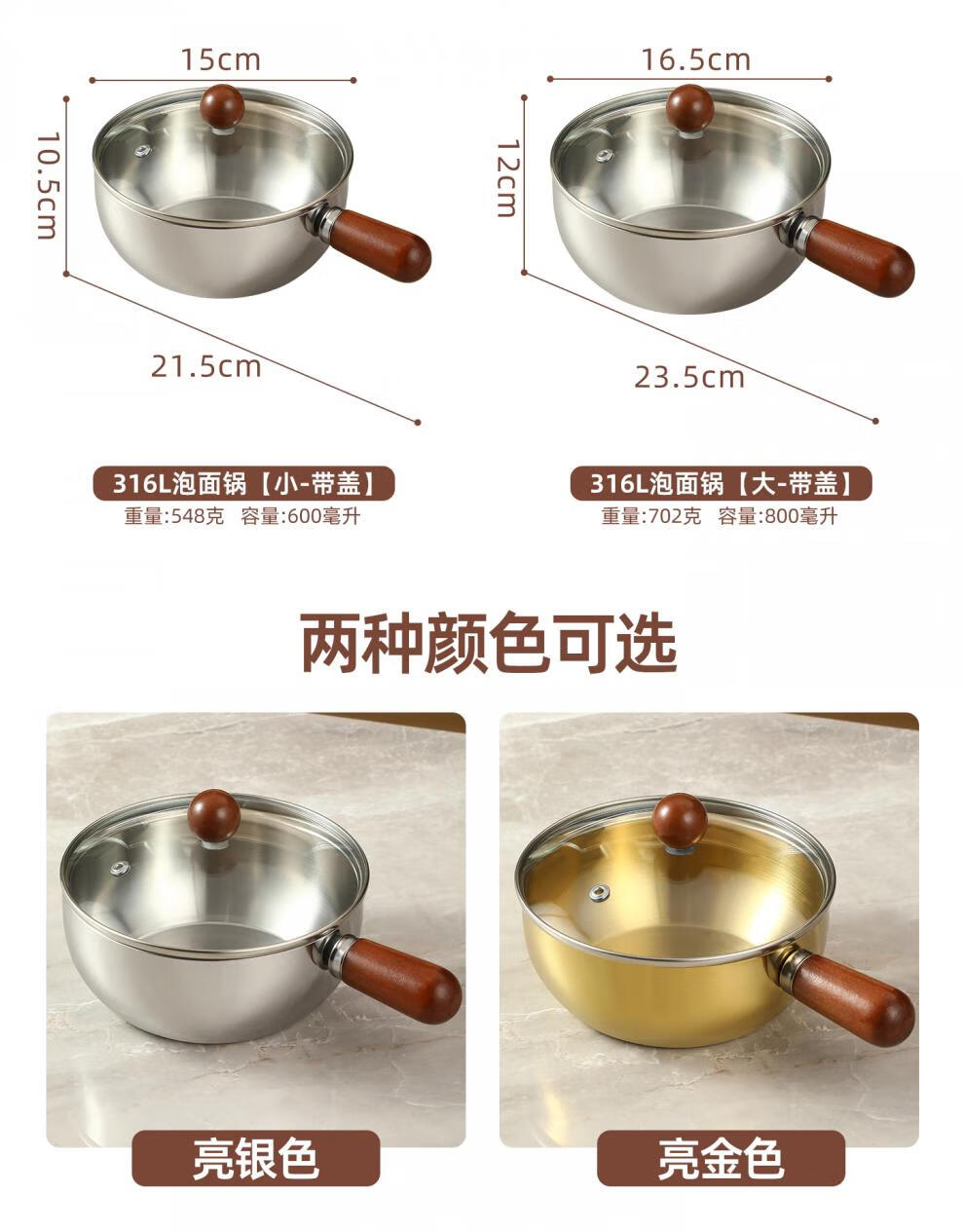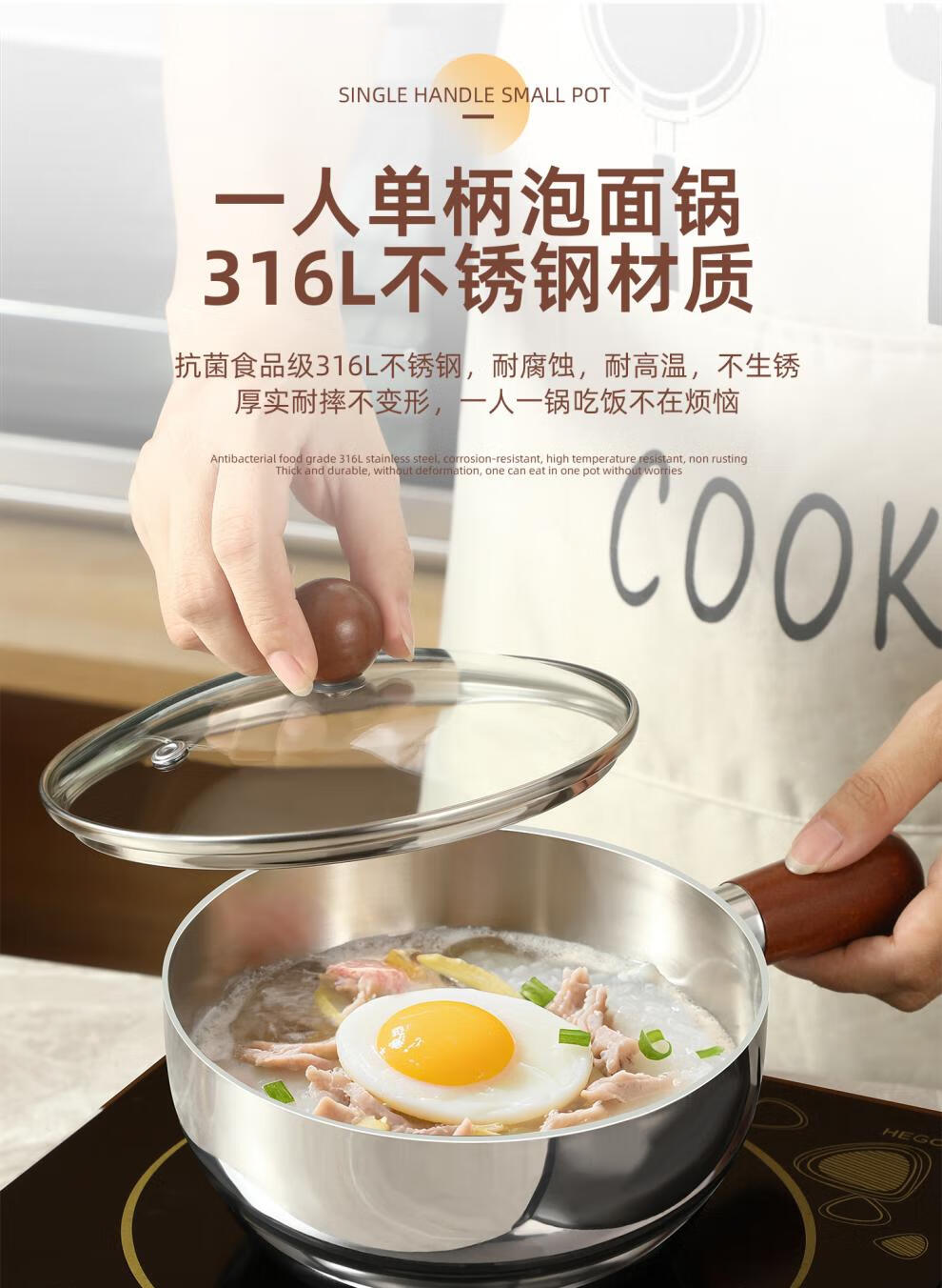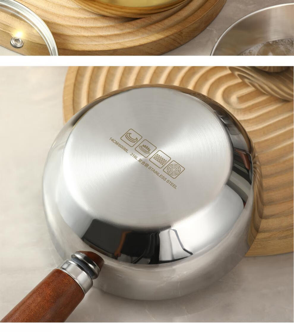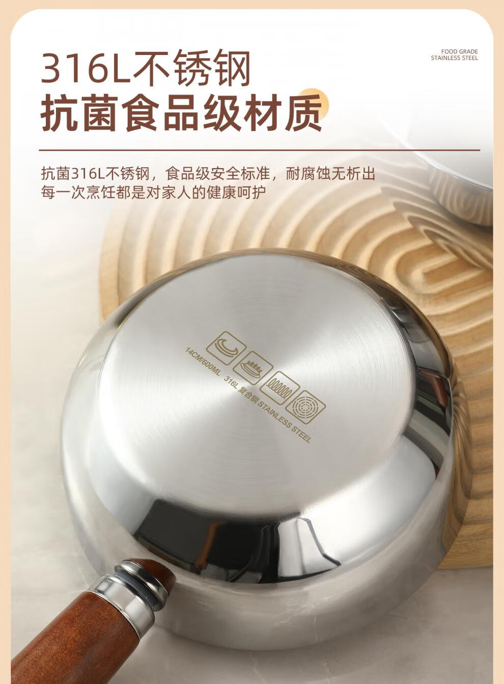 物萃316不锈钢婴儿辅食锅家用一人食防烫手柄碗电磁炉专用小锅 316L材质无盖 14cm 1个