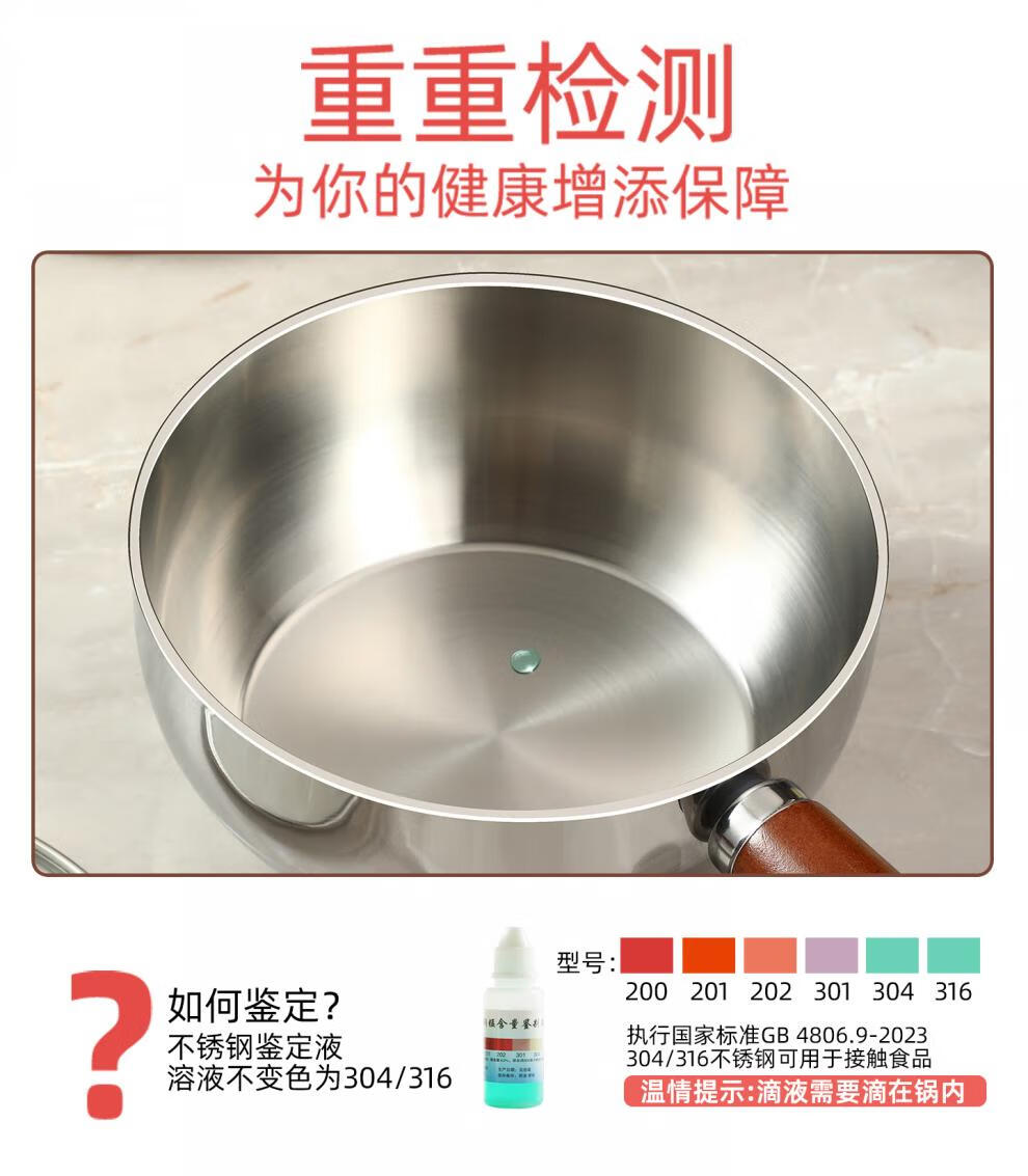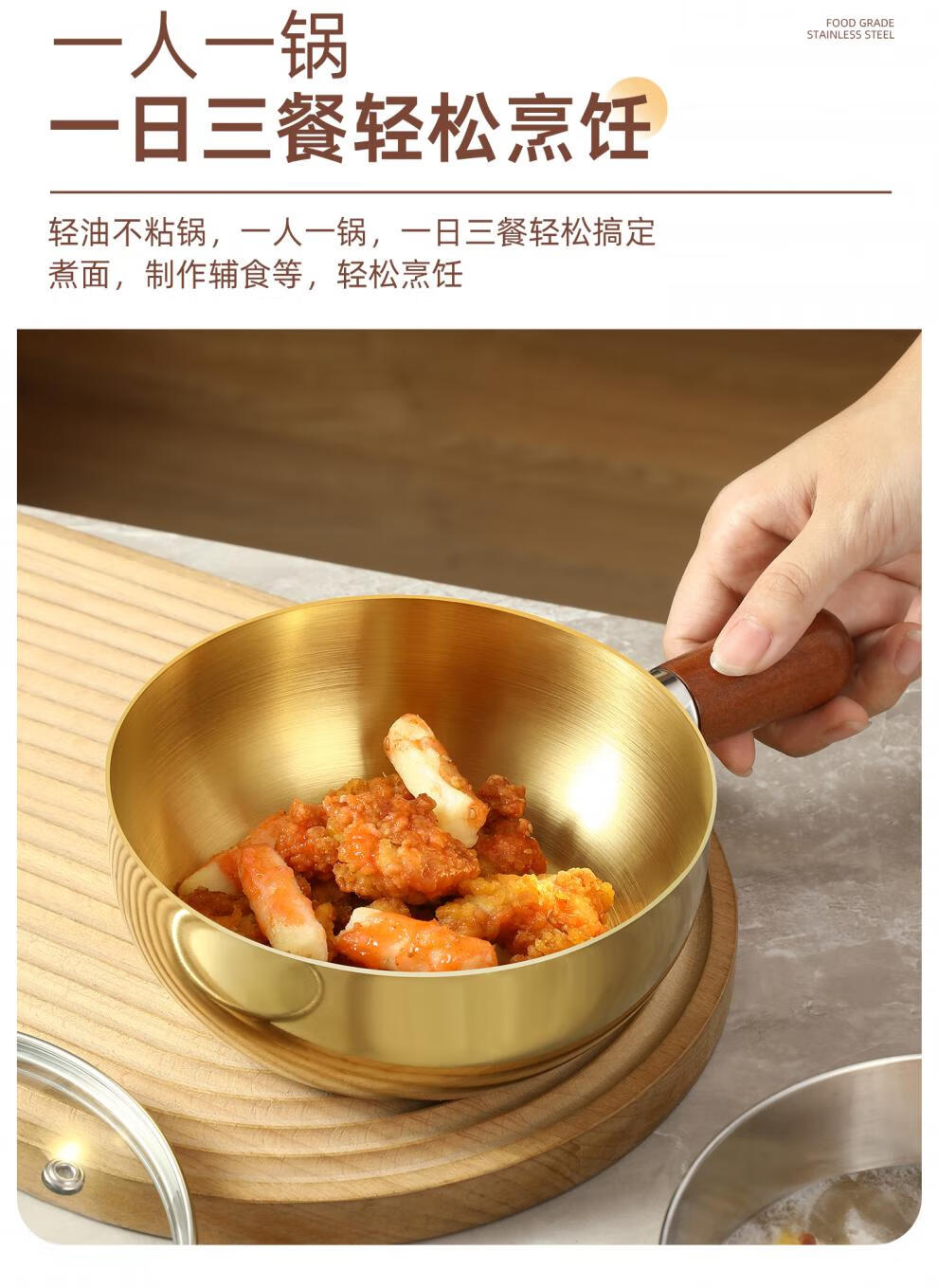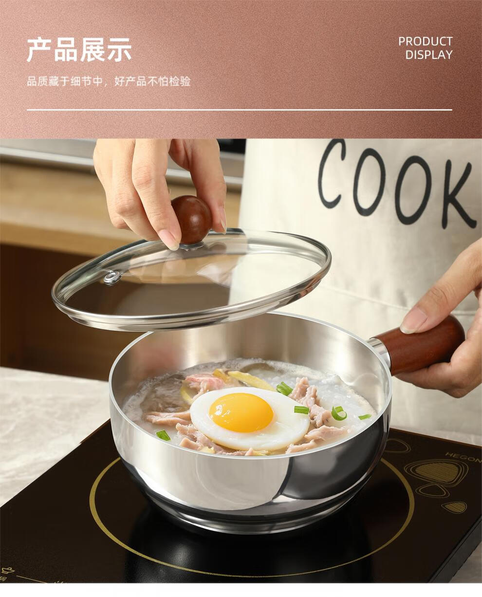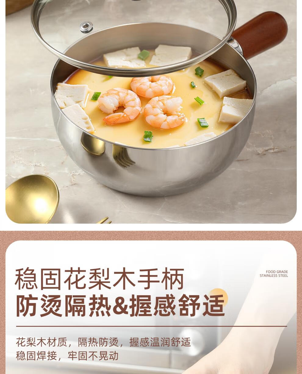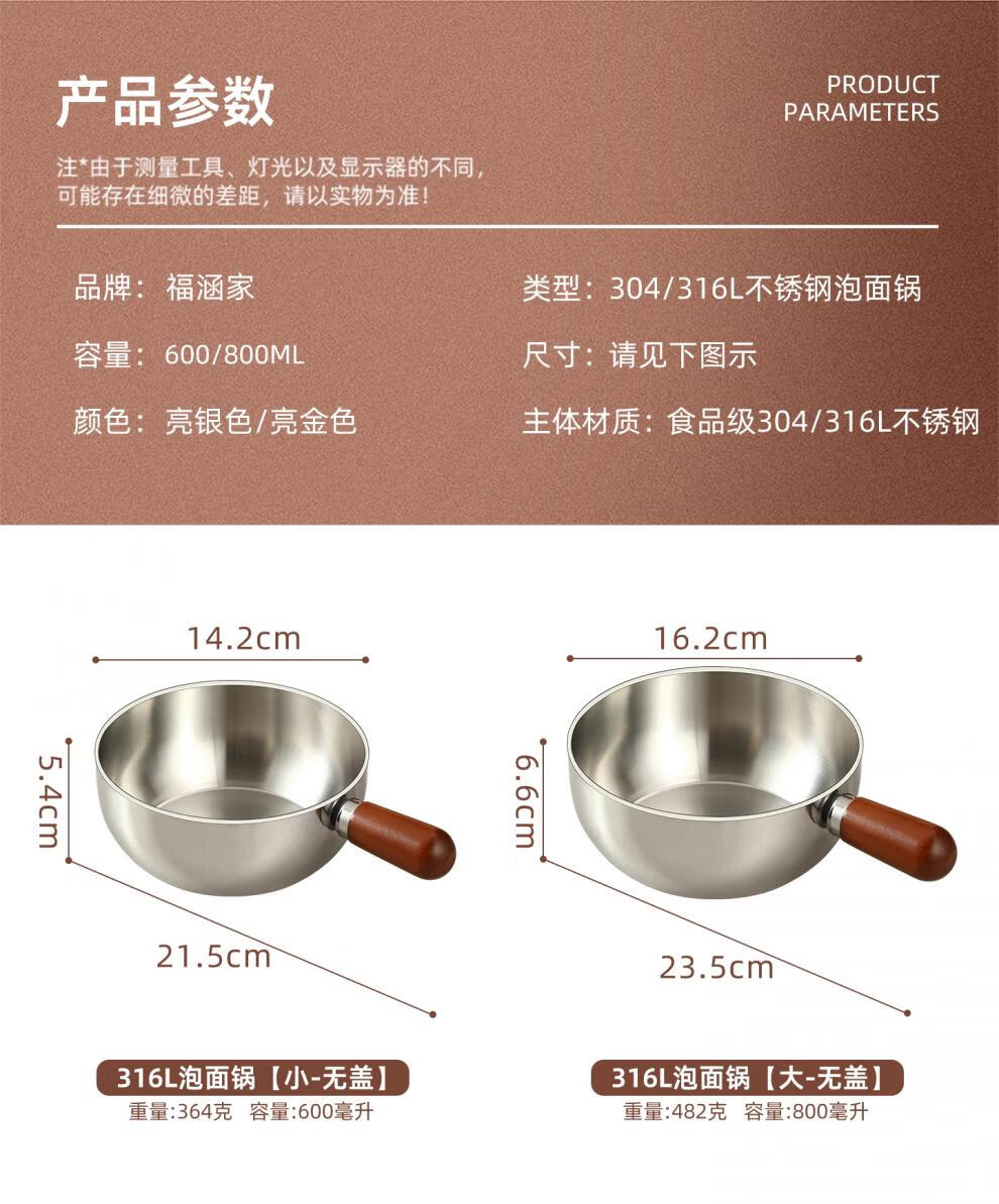 物萃316不锈钢婴儿辅食锅家用一人食防烫手柄碗电磁炉专用小锅 316L材质无盖 14cm 1个