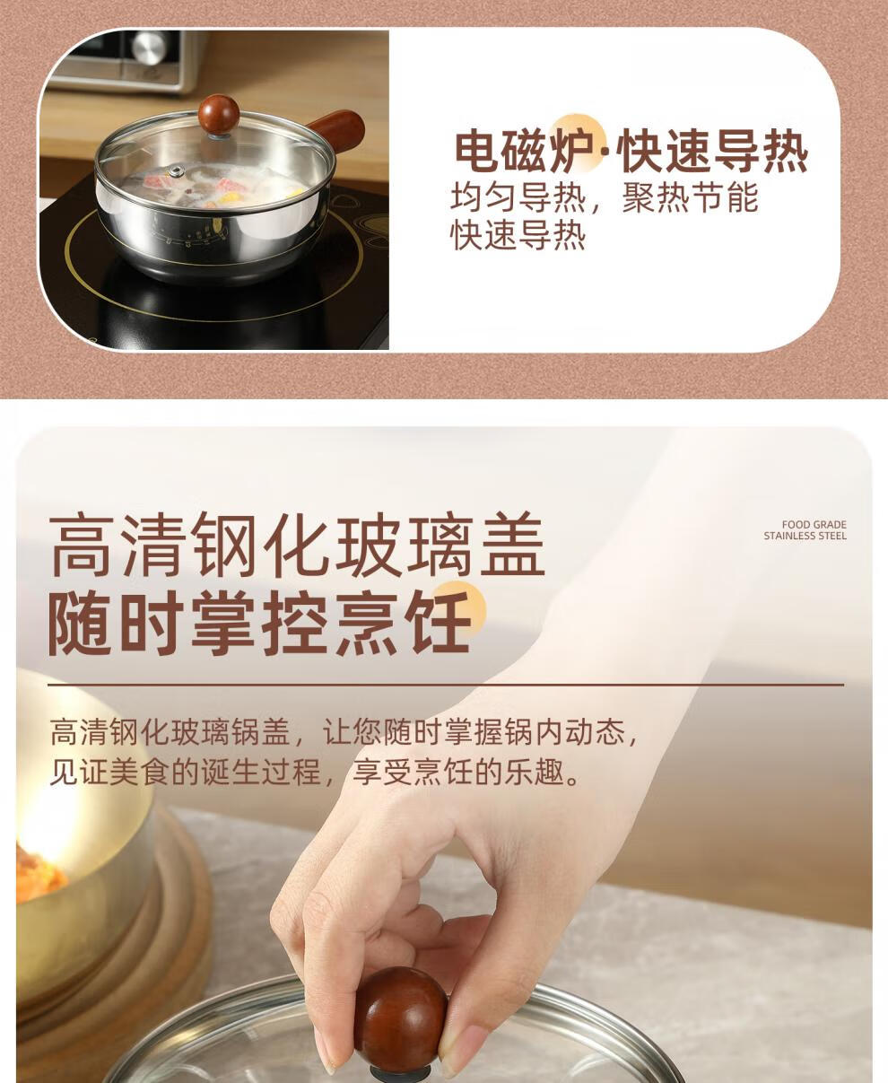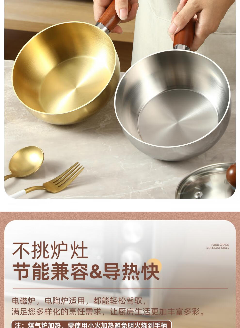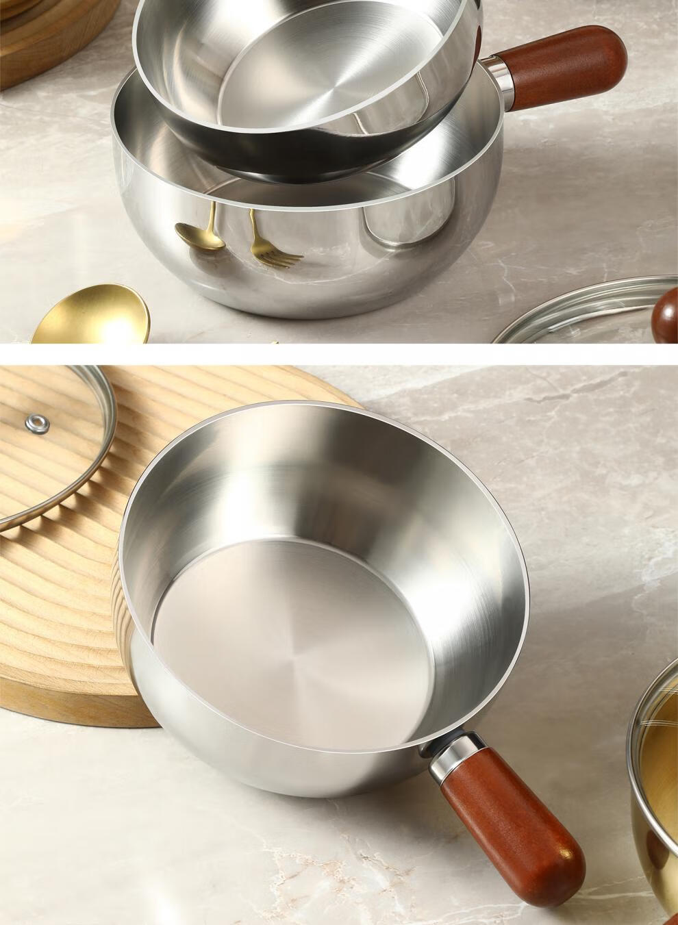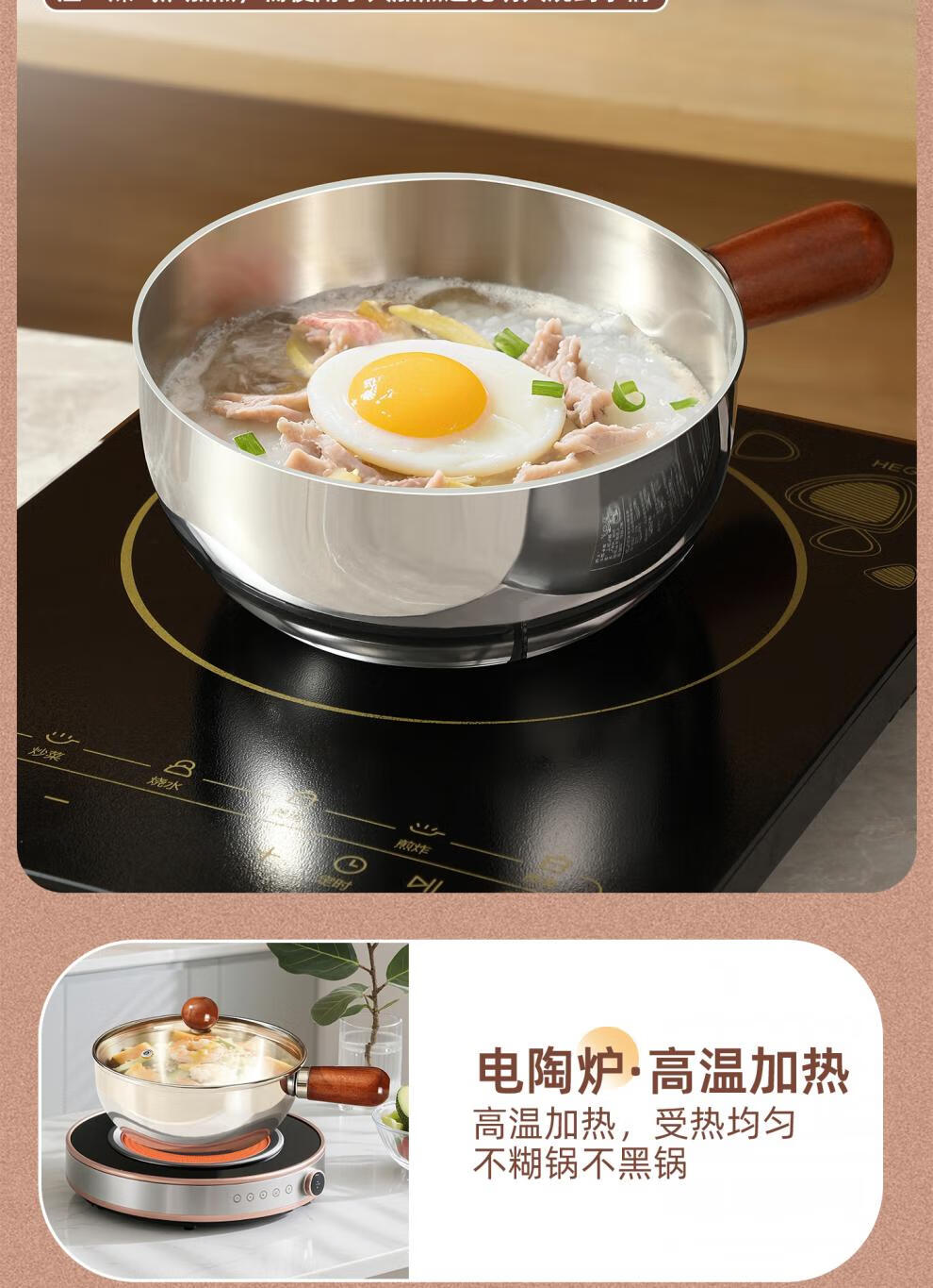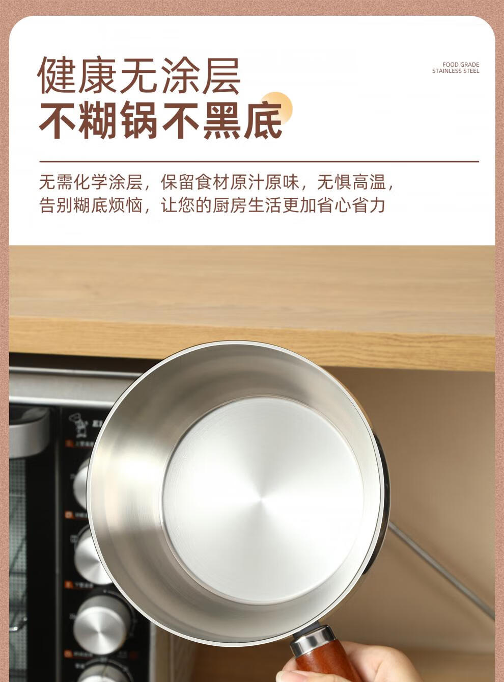物萃316不锈钢婴儿辅食锅家用一人食防烫手柄碗电磁炉专用小锅 316L材质无盖 14cm 1个