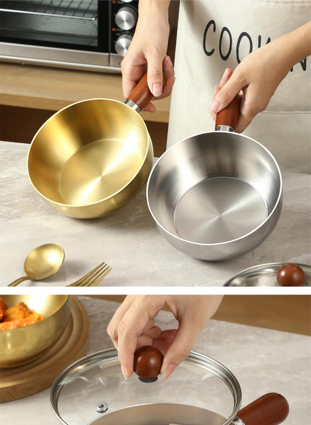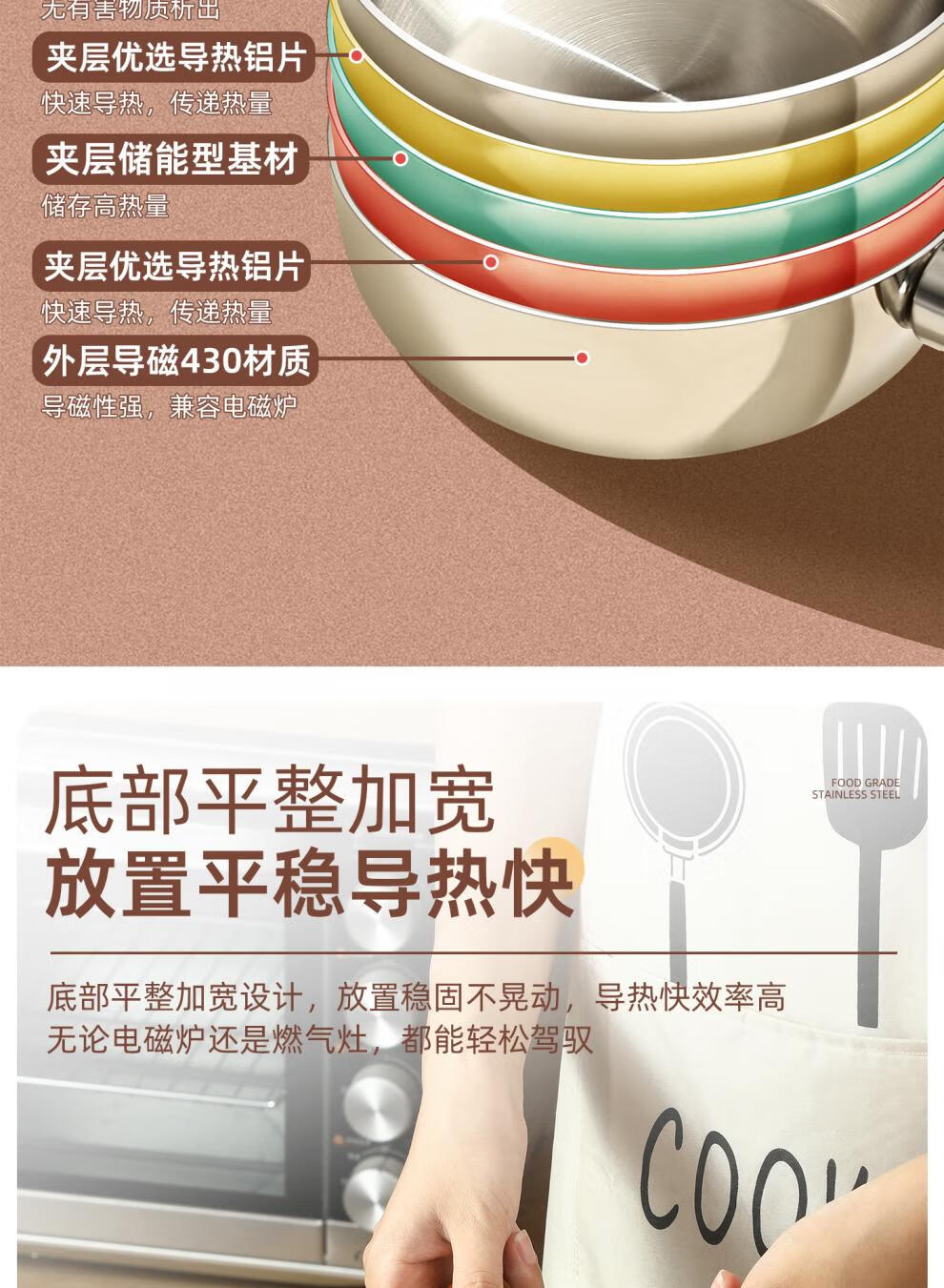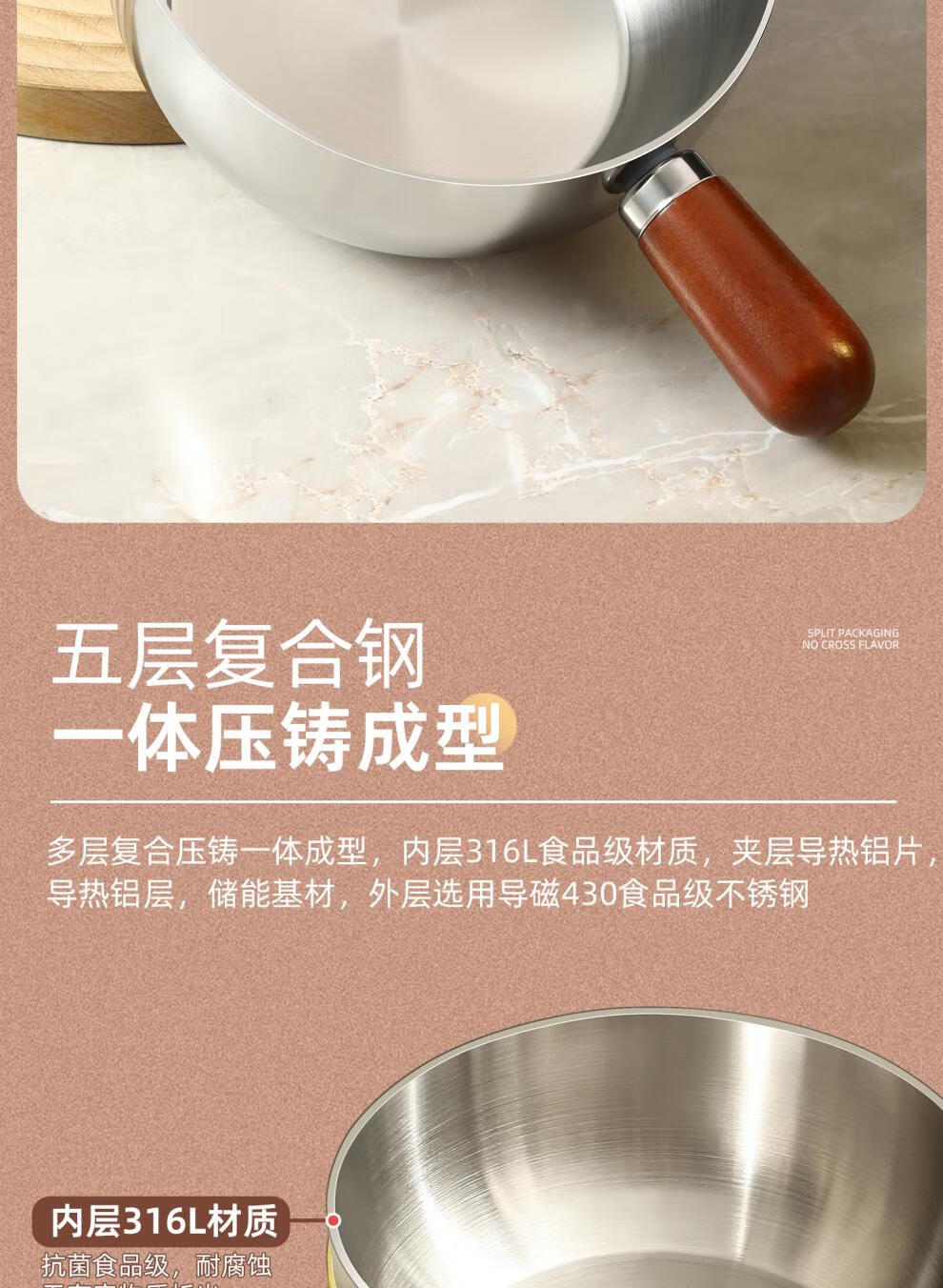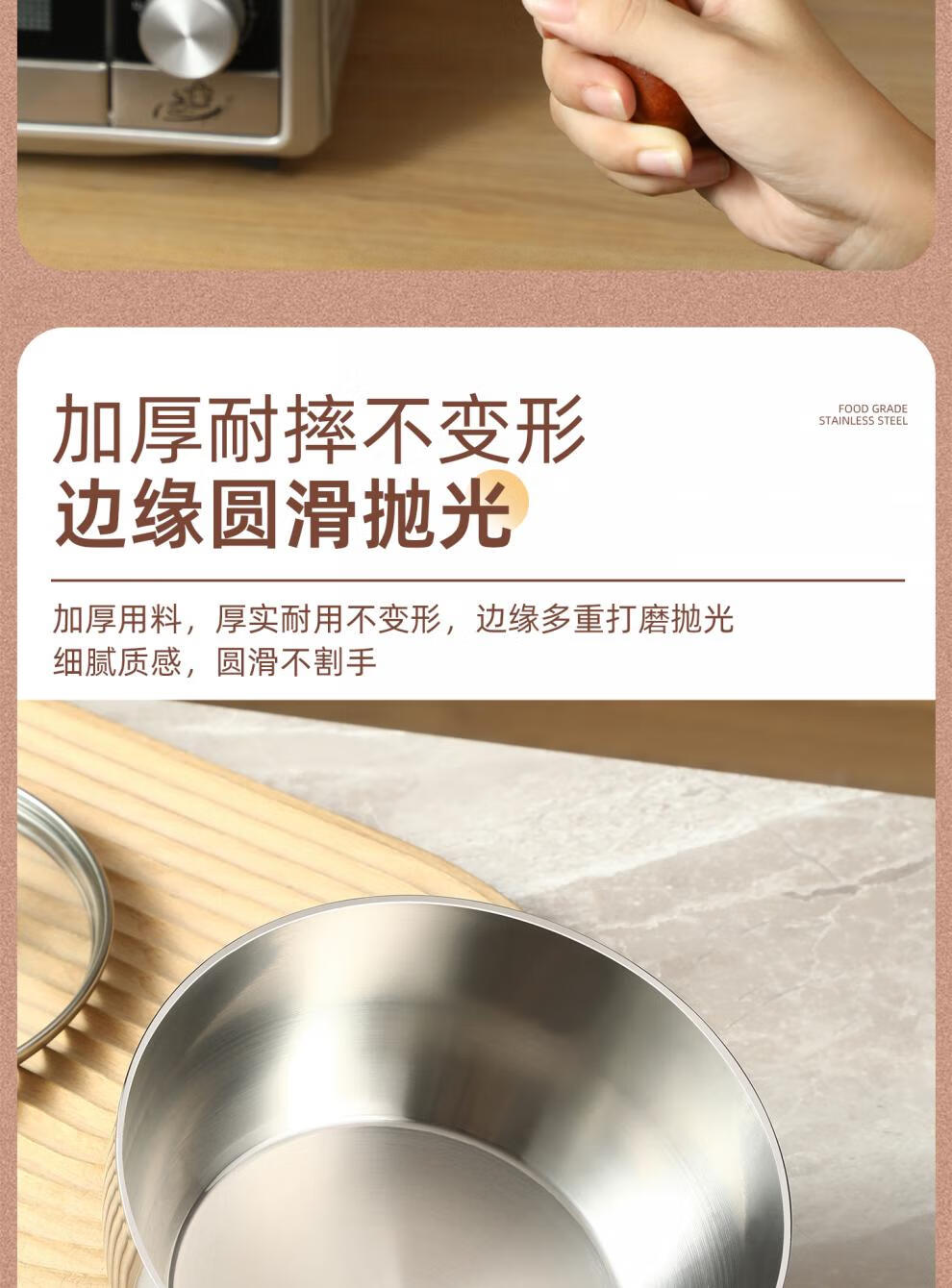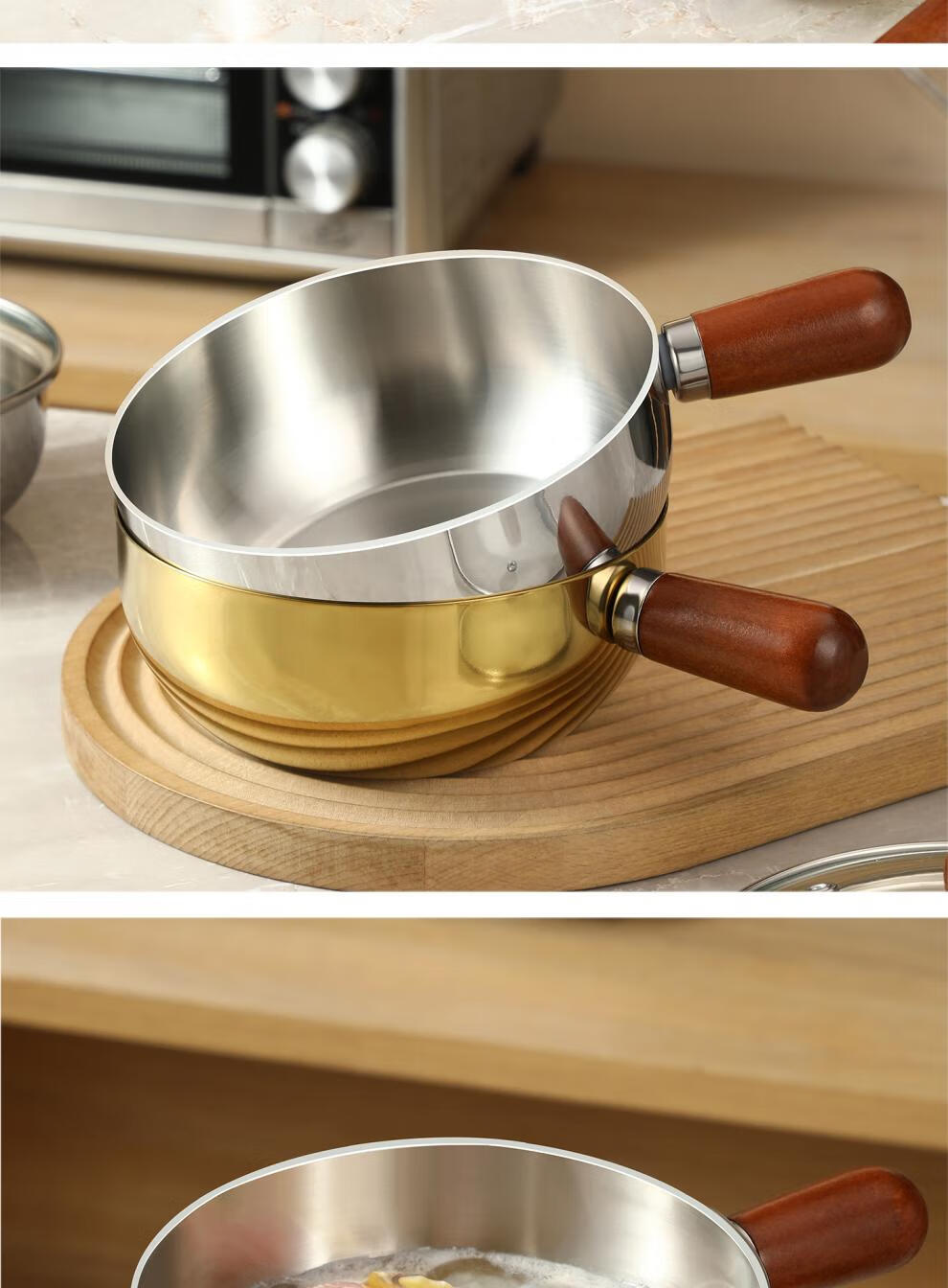 物萃316不锈钢婴儿辅食锅家用一人食防烫手柄碗电磁炉专用小锅 316L材质无盖 14cm 1个