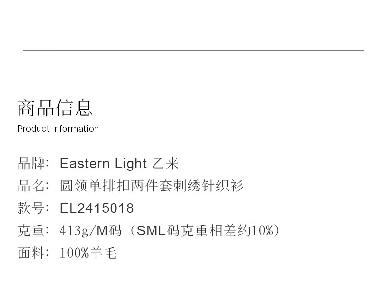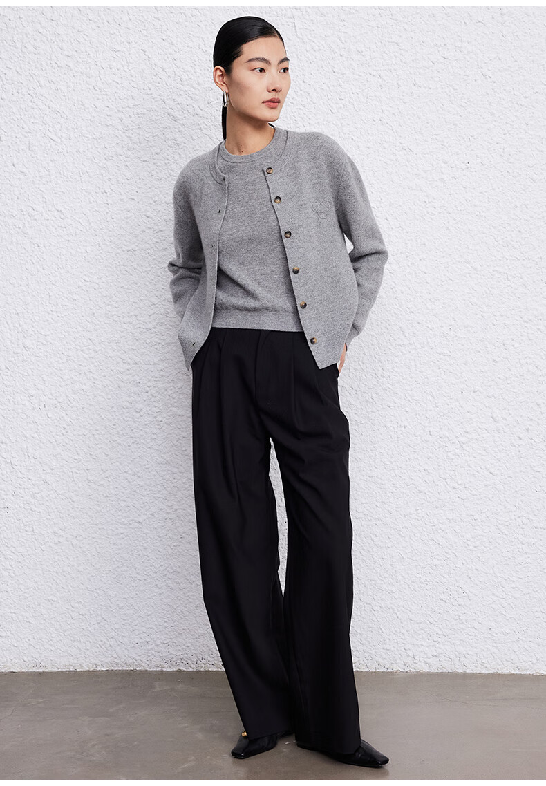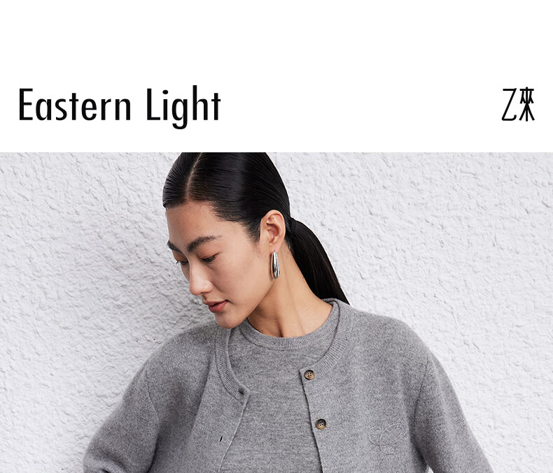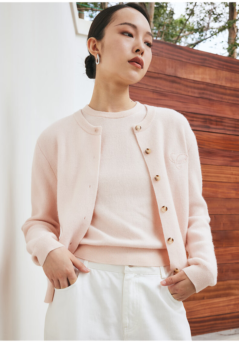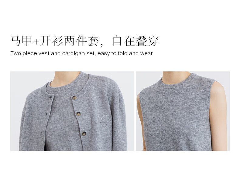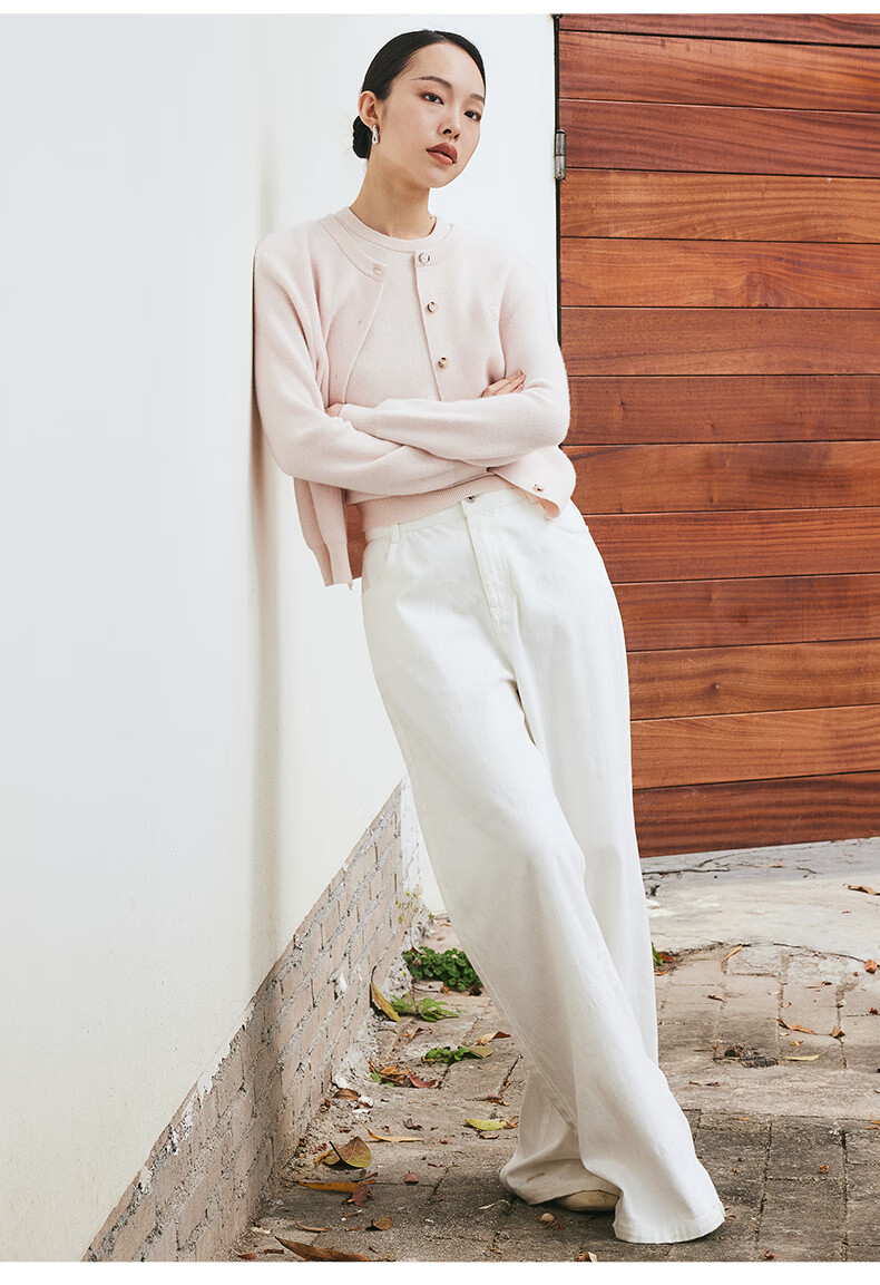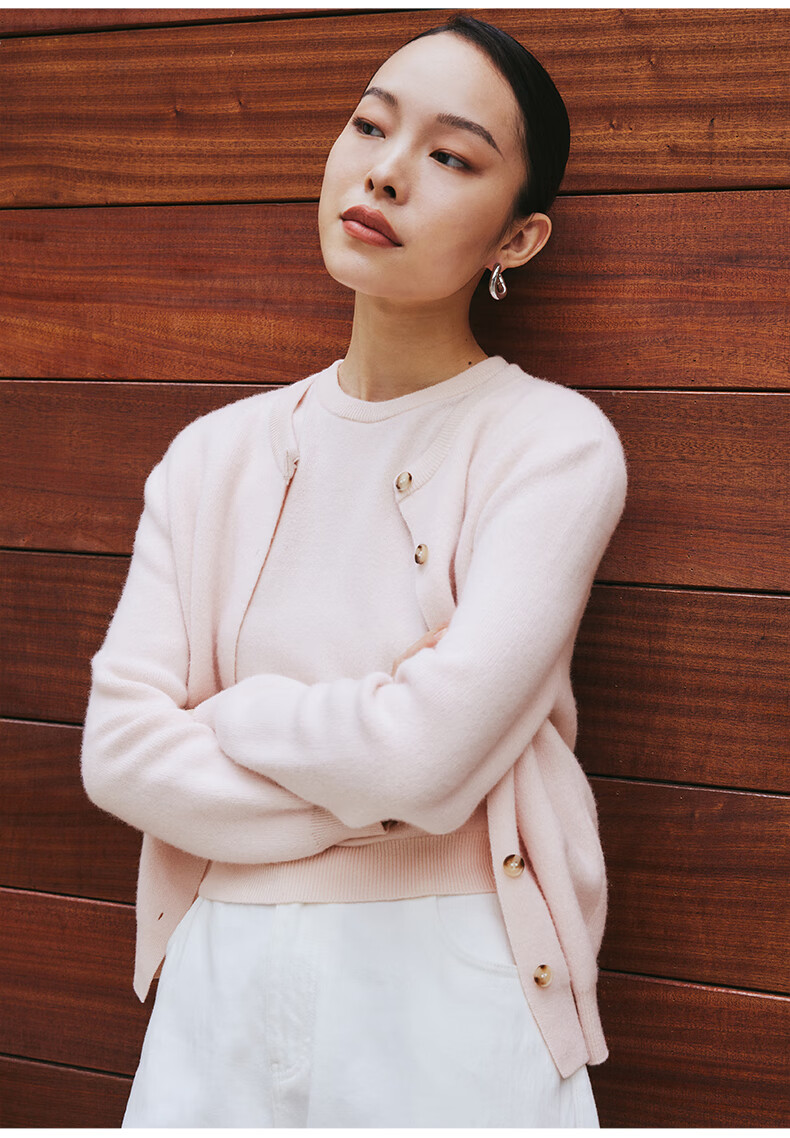 乙来(EASTERN LIGHT)【董生活明星同款】100%澳洲美利奴羊毛开衫马甲2件套 珍珠粉 M