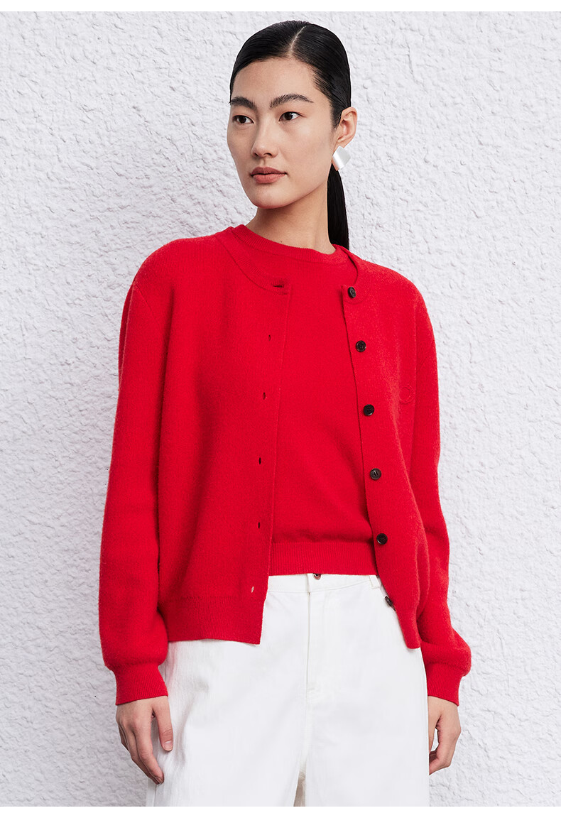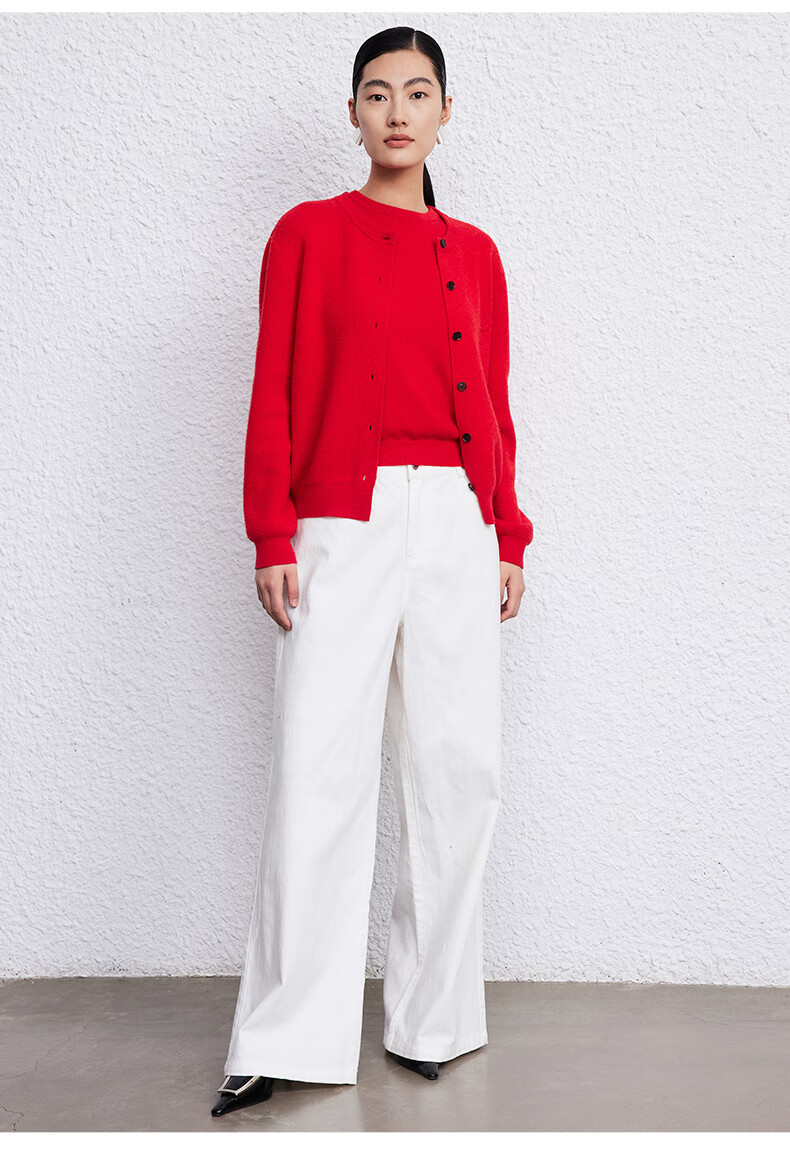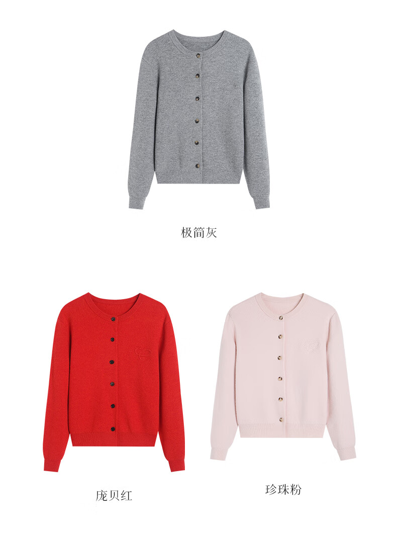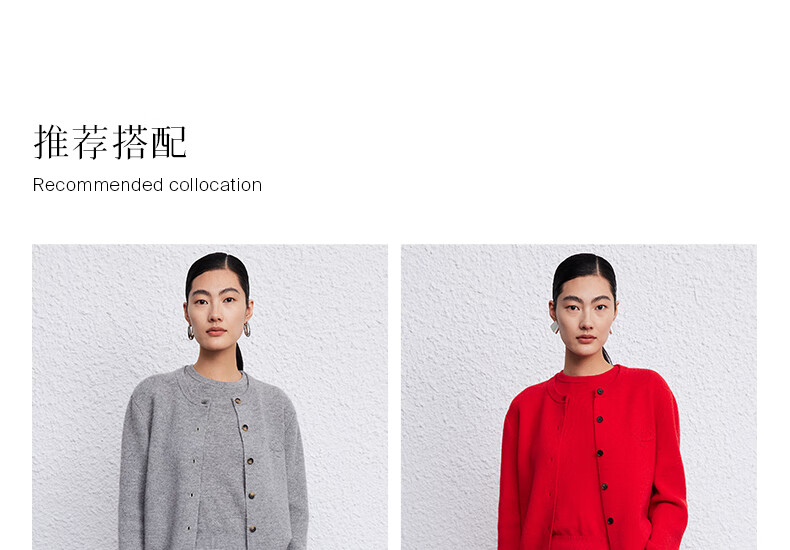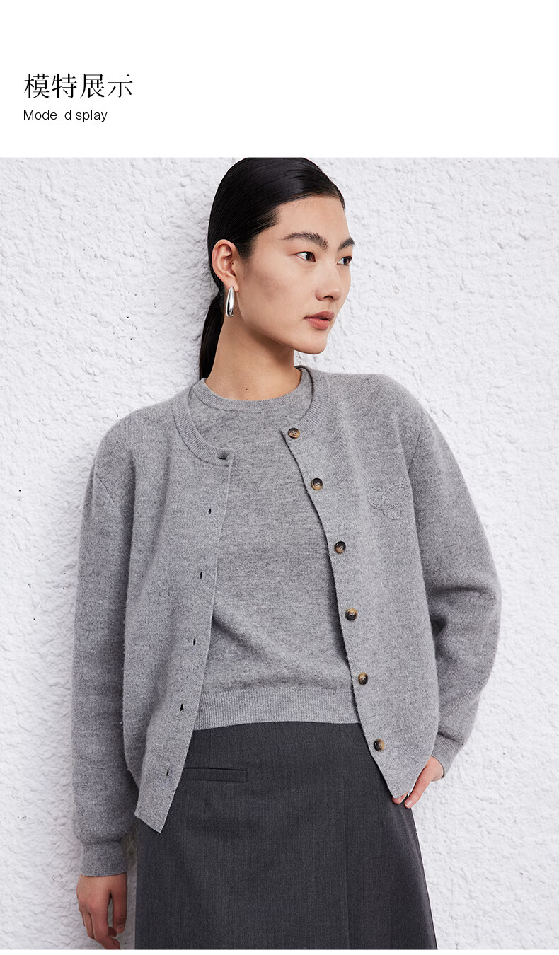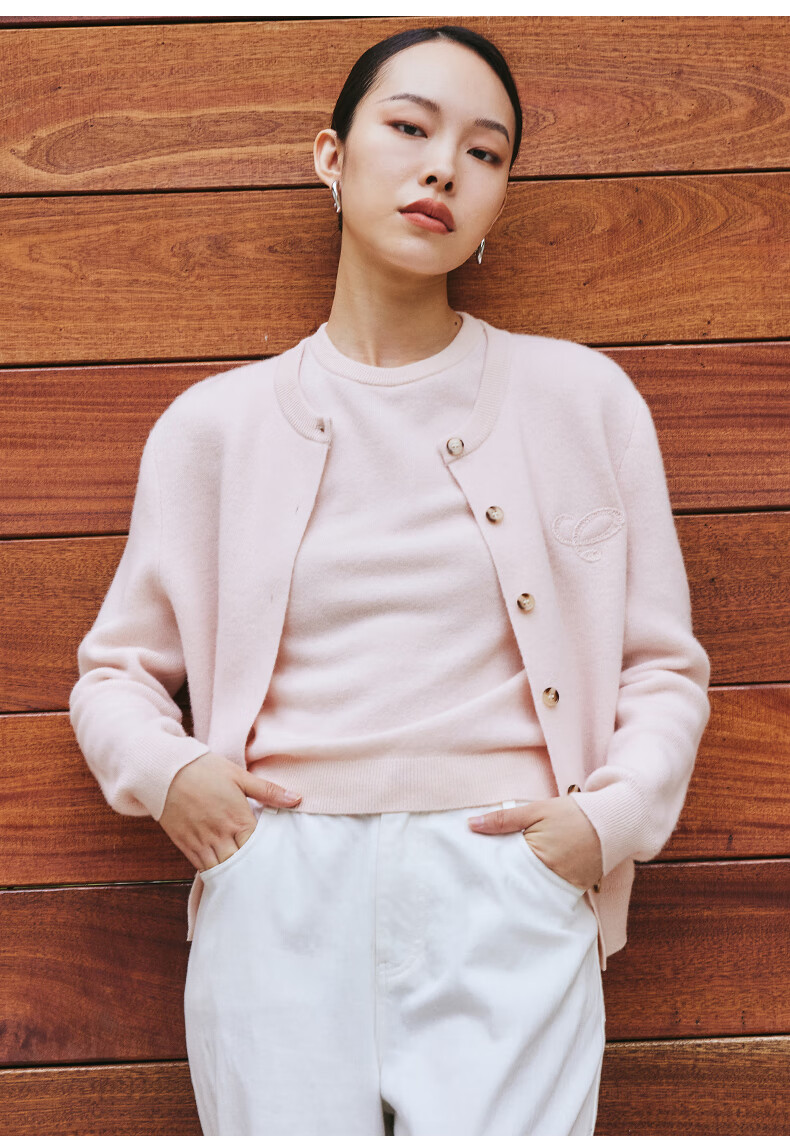 乙来(EASTERN LIGHT)【董生活明星同款】100%澳洲美利奴羊毛开衫马甲2件套 珍珠粉 M