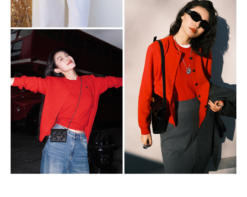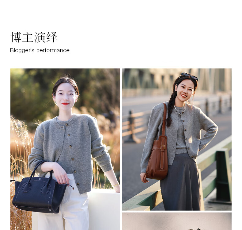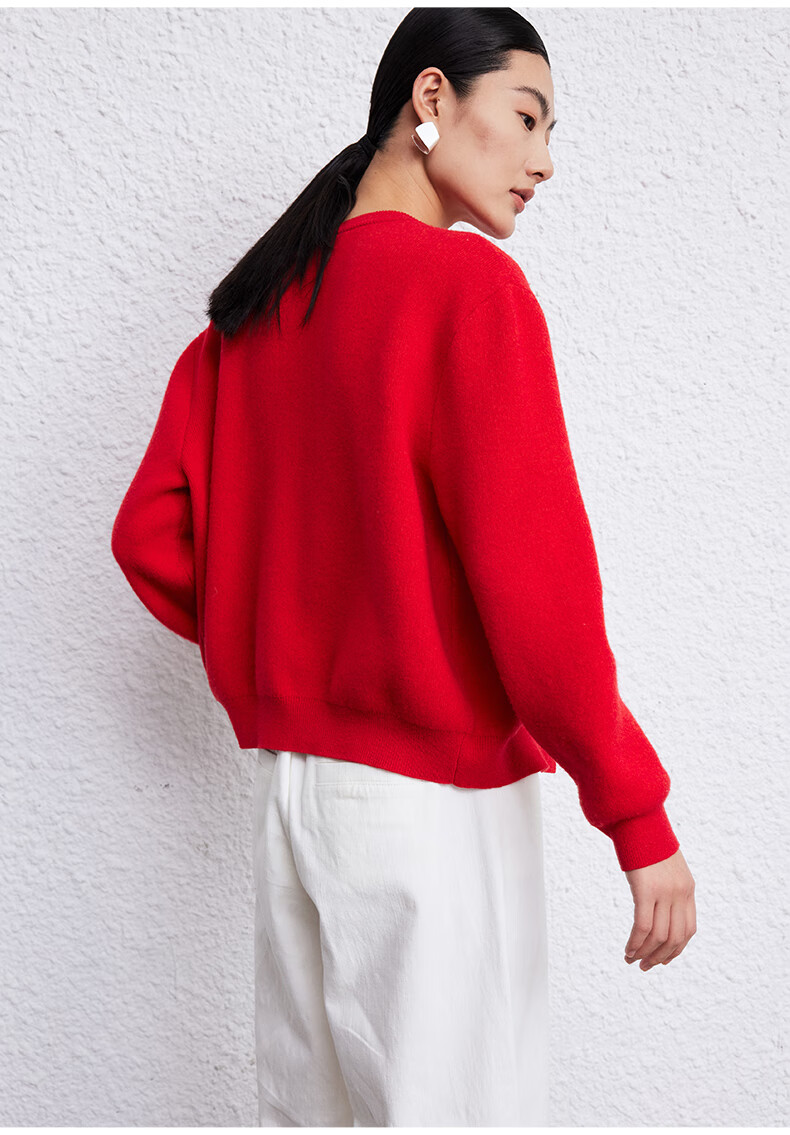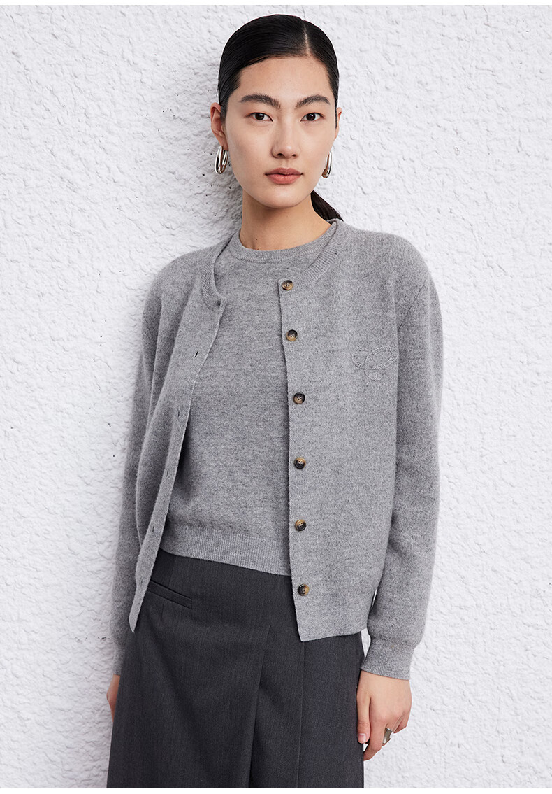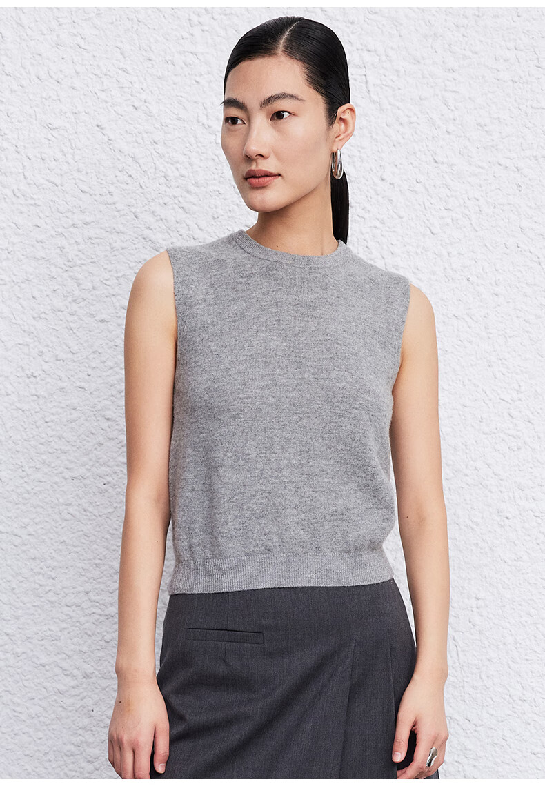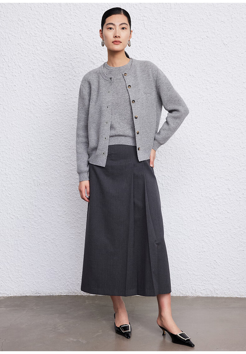 乙来(EASTERN LIGHT)【董生活明星同款】100%澳洲美利奴羊毛开衫马甲2件套 珍珠粉 M