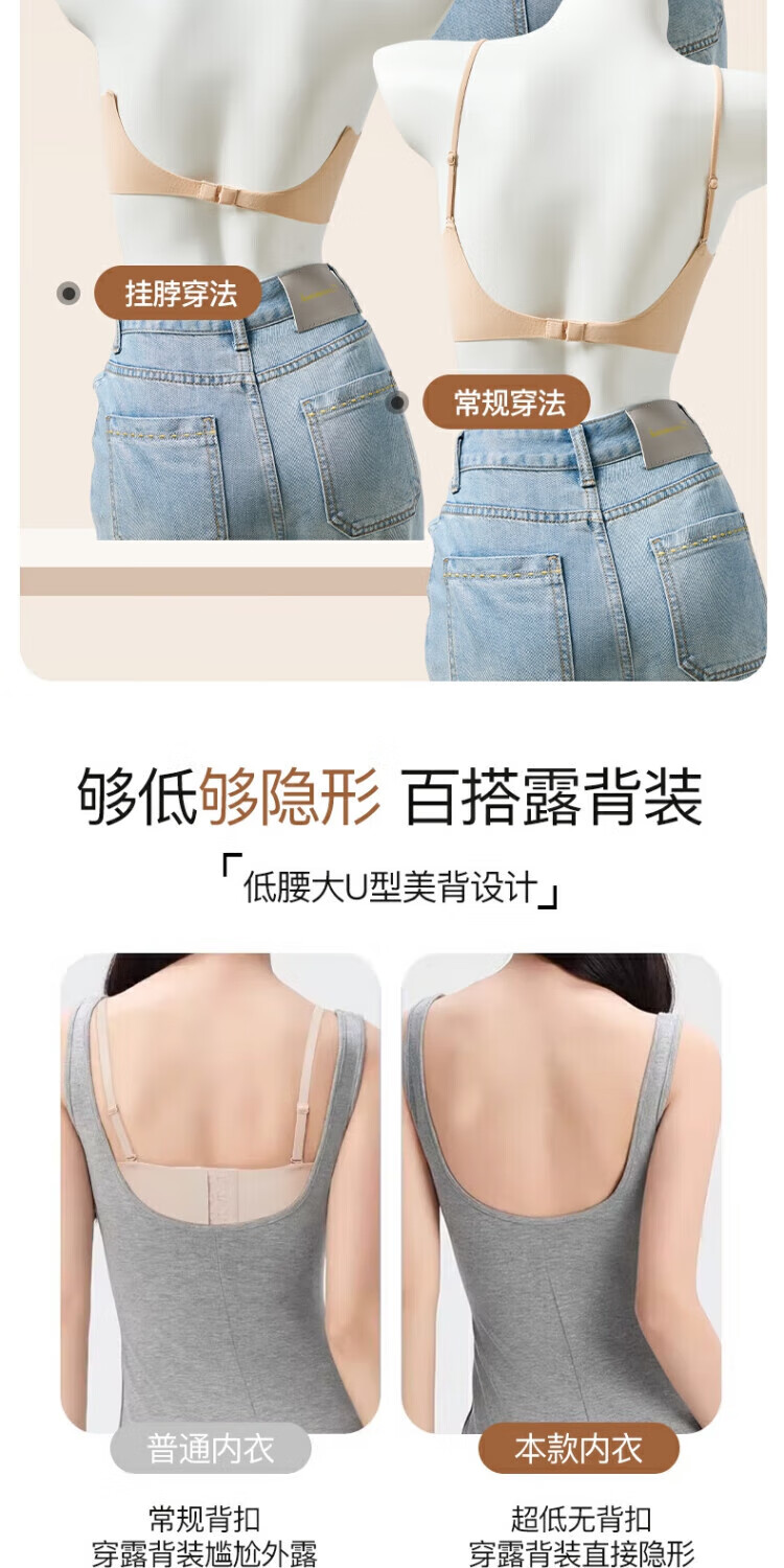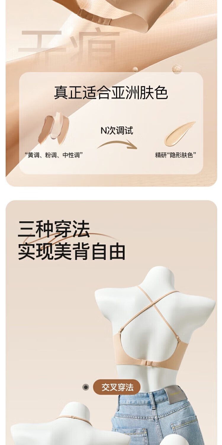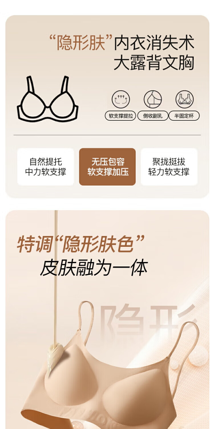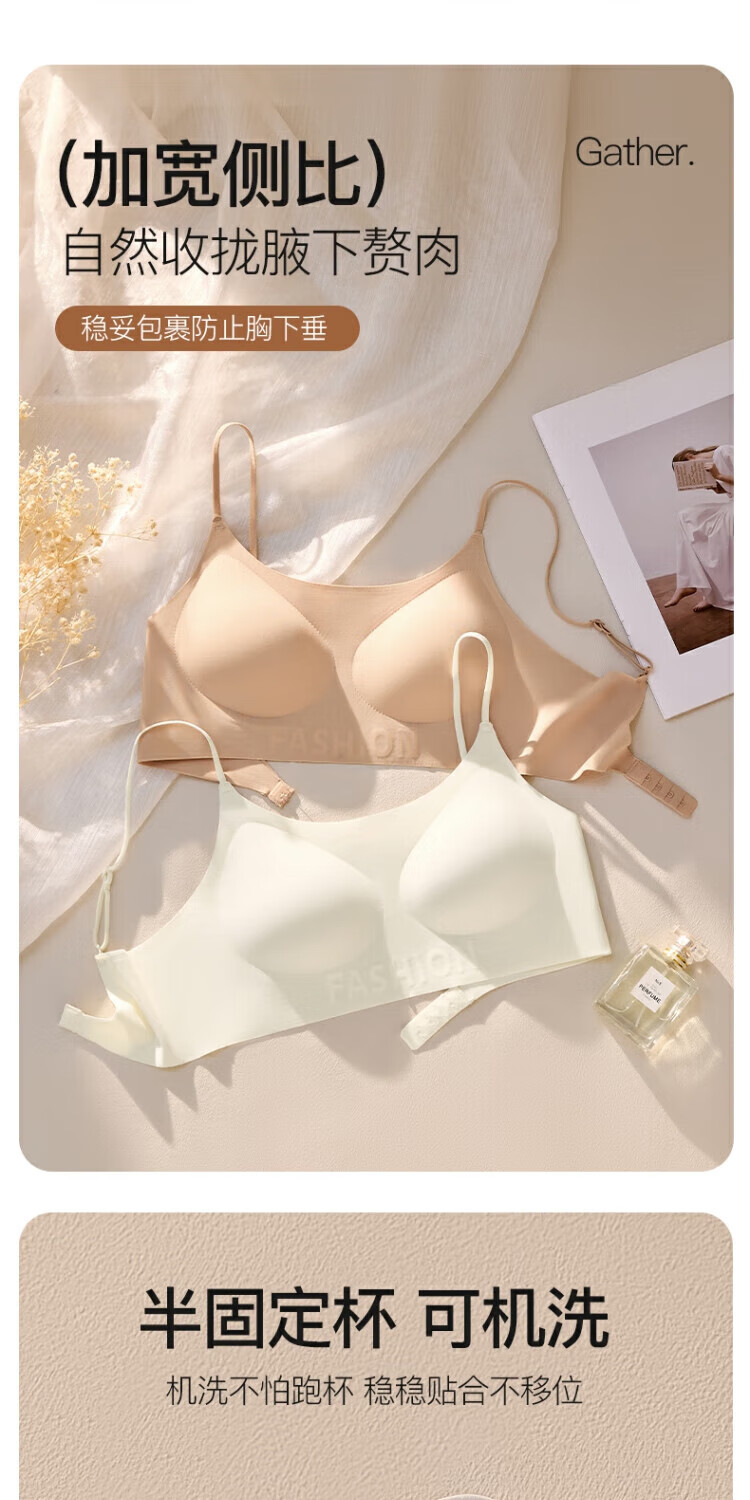 顶瓜瓜小胸聚拢薄款美背夏季文胸内衣透气舒适无痕一片式裸感软支撑06 粉底肤 M 【90-110斤】