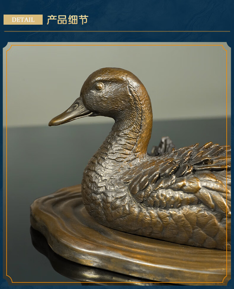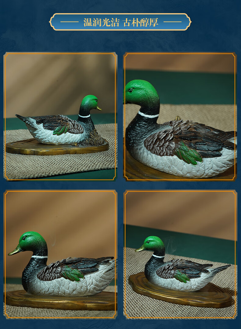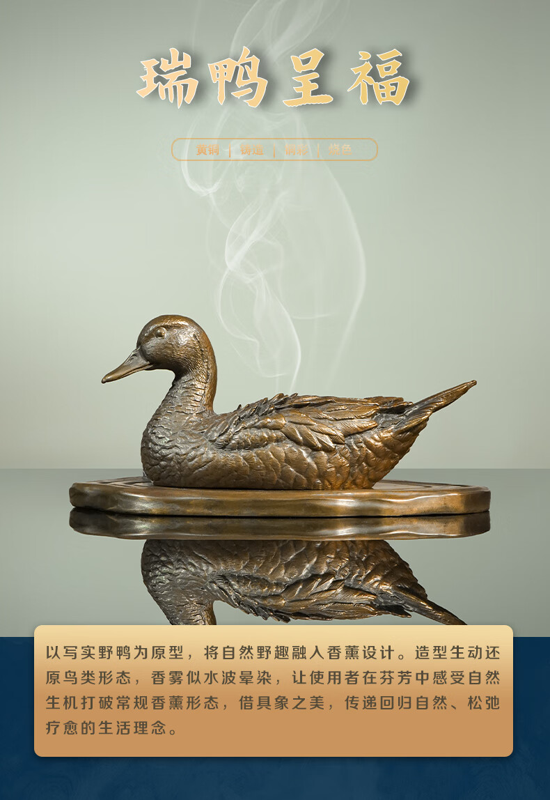 箐铜记全黄铜瑞鸭呈福香炉摆件家居客厅办公室茶室祝福礼品 瑞鸭呈福香炉B款+铜底座