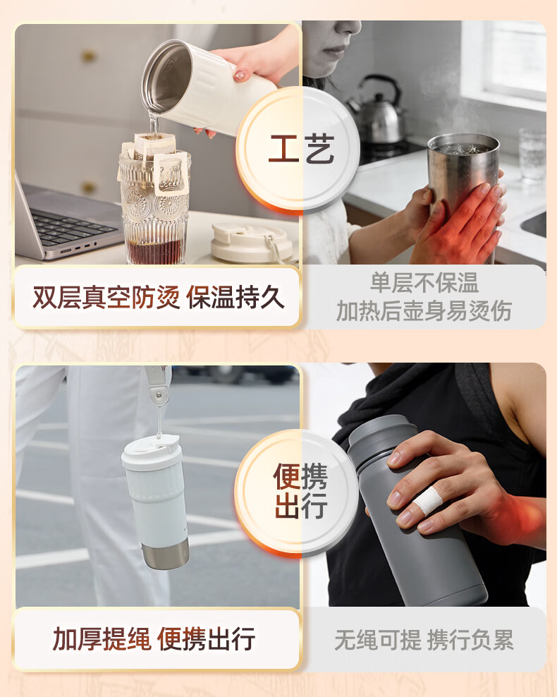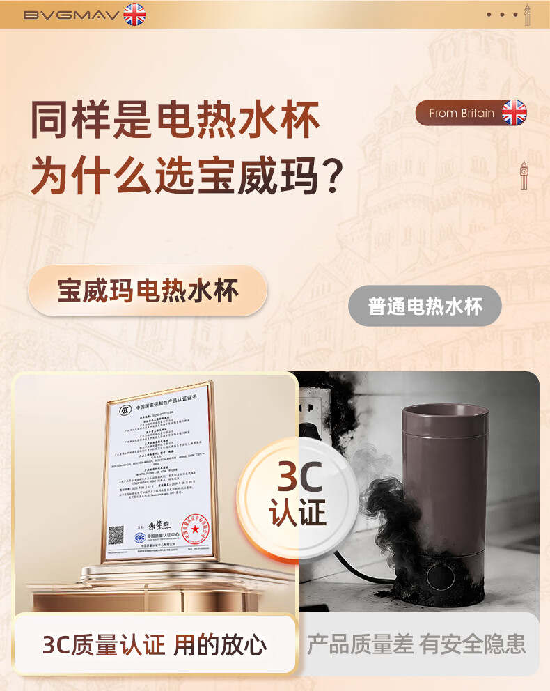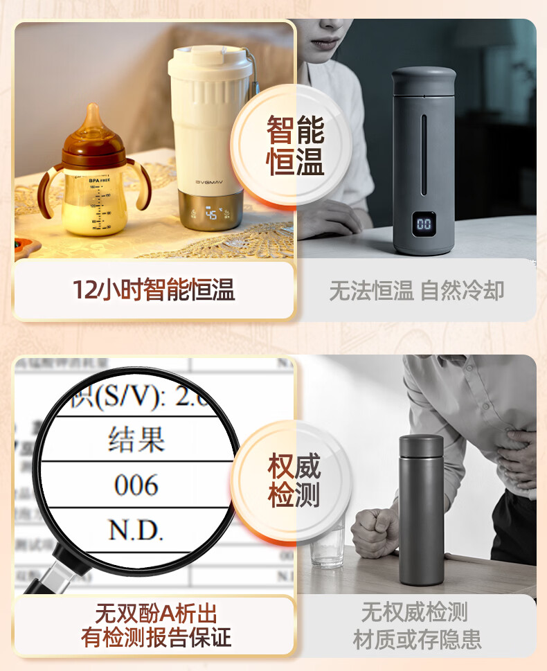 宝威玛(BVGMAV)英国户外旅行便携智能恒温电热水杯316不锈钢内胆双层密封防漏水咖啡杯保温杯 0.4L 雅士白-珠光漆面