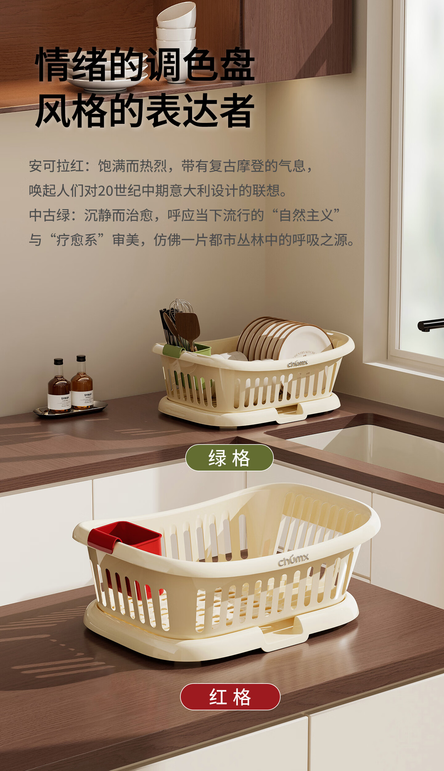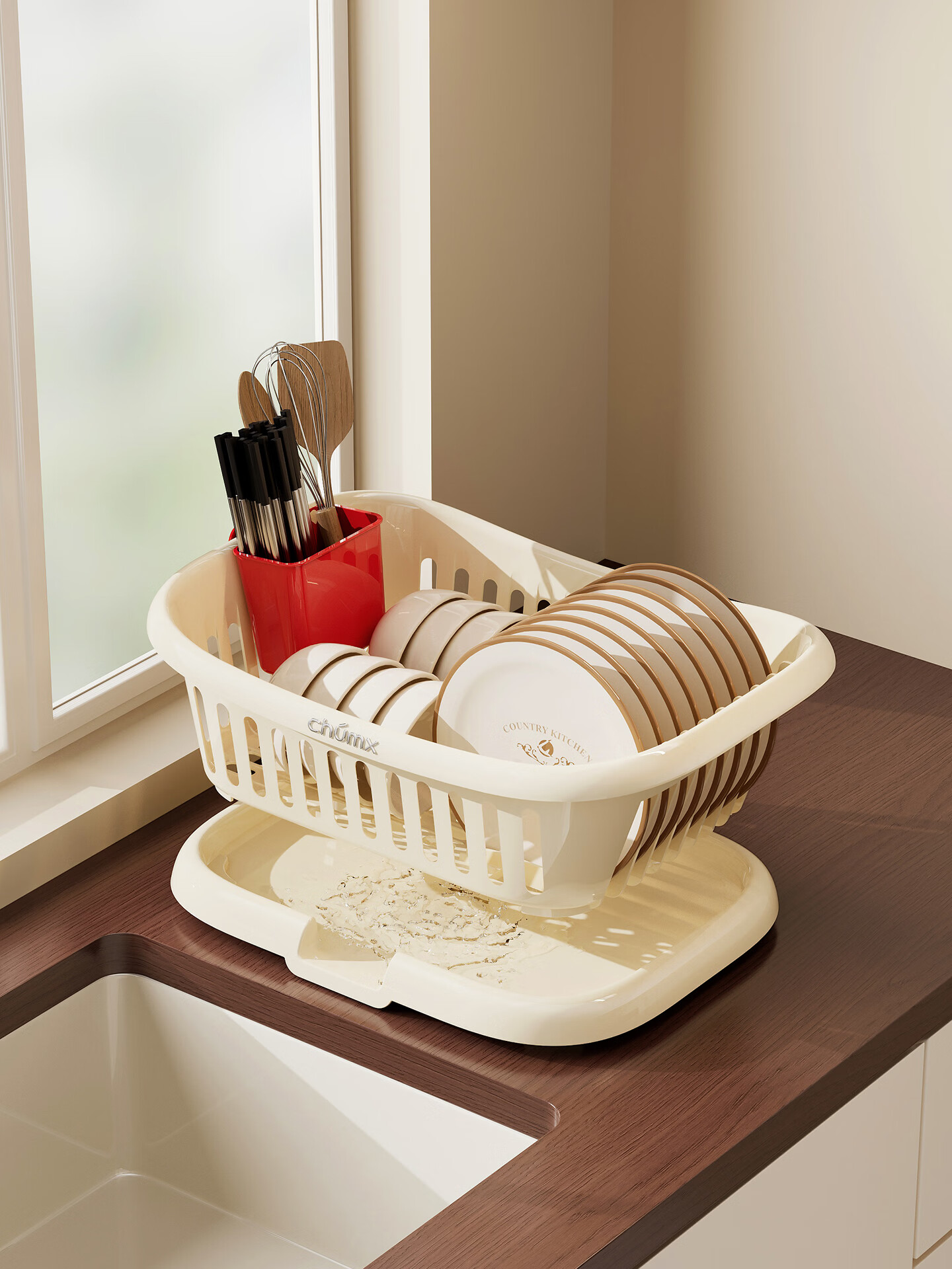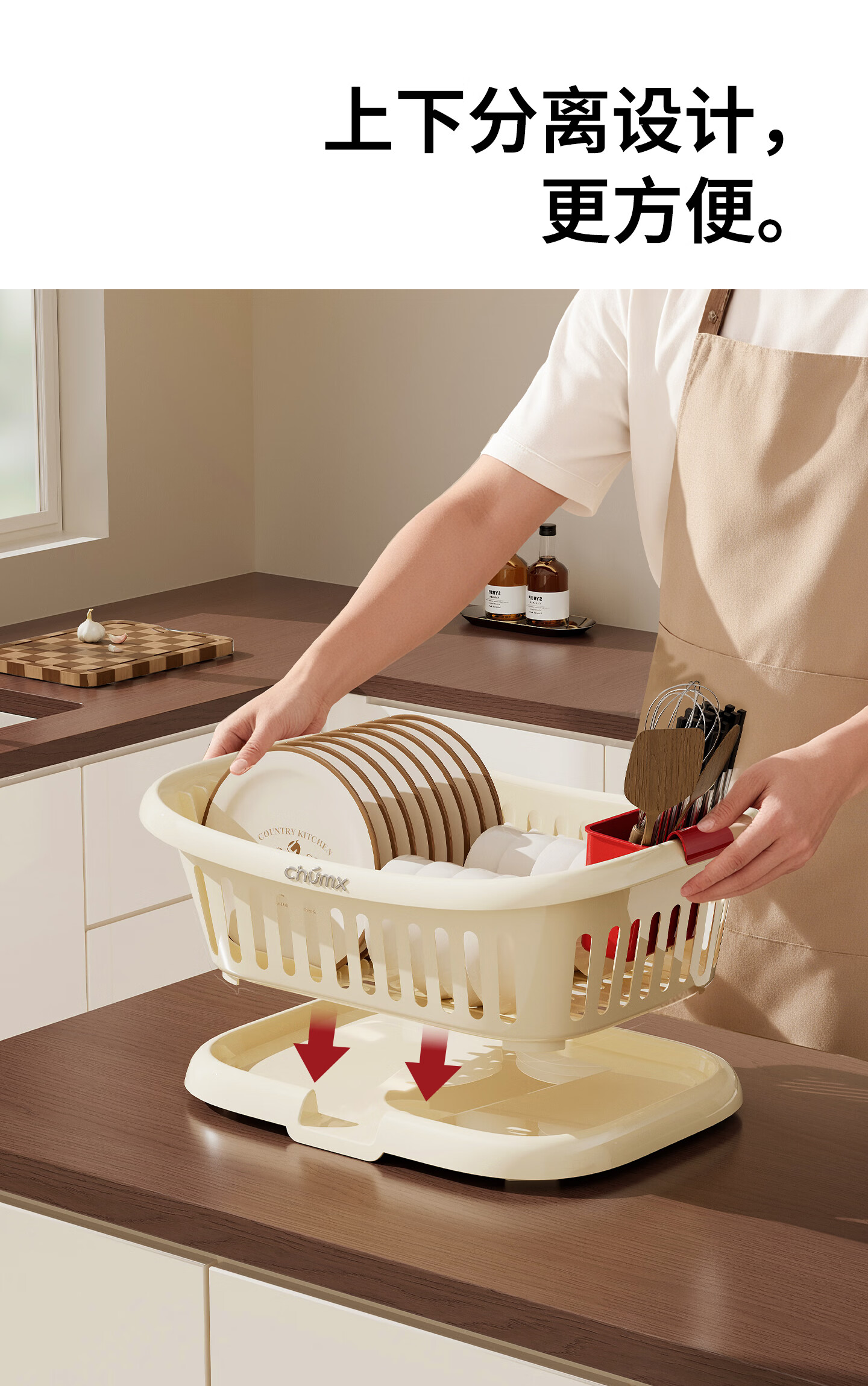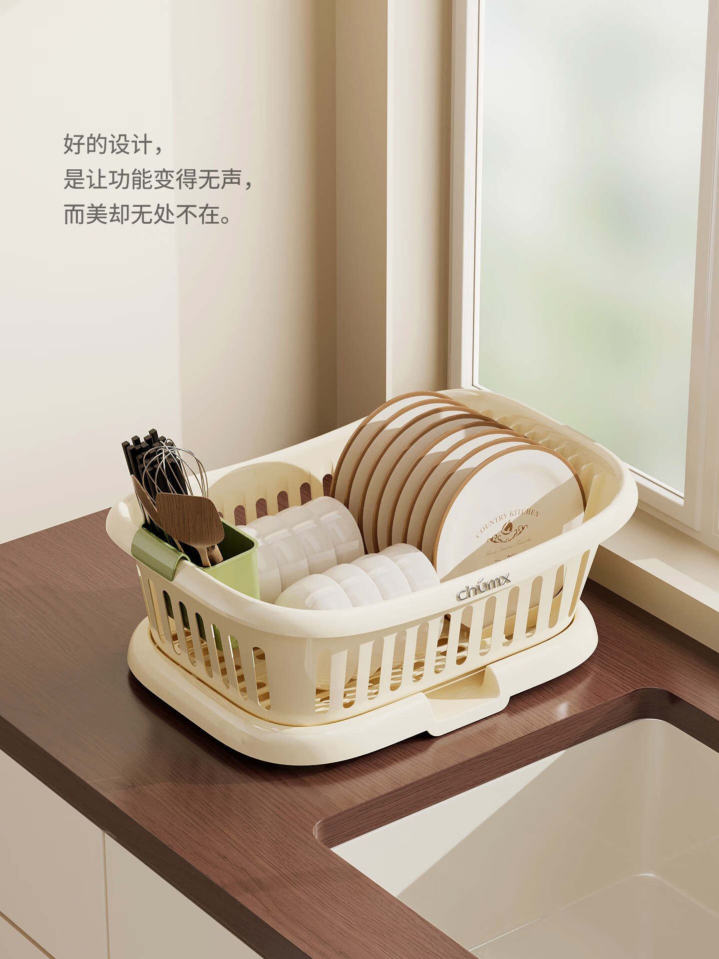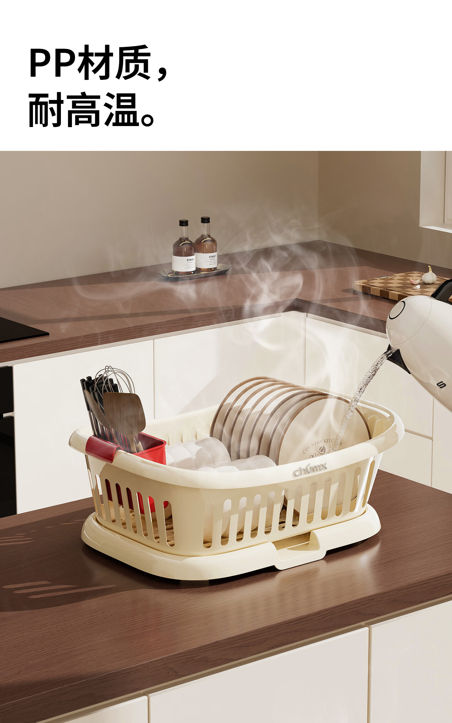 橱明星碗筷收纳盒塑料沥水篮厨房家用带盖多功能放碗碟盘碗柜餐具收纳架 沥水碗架-优雅白
