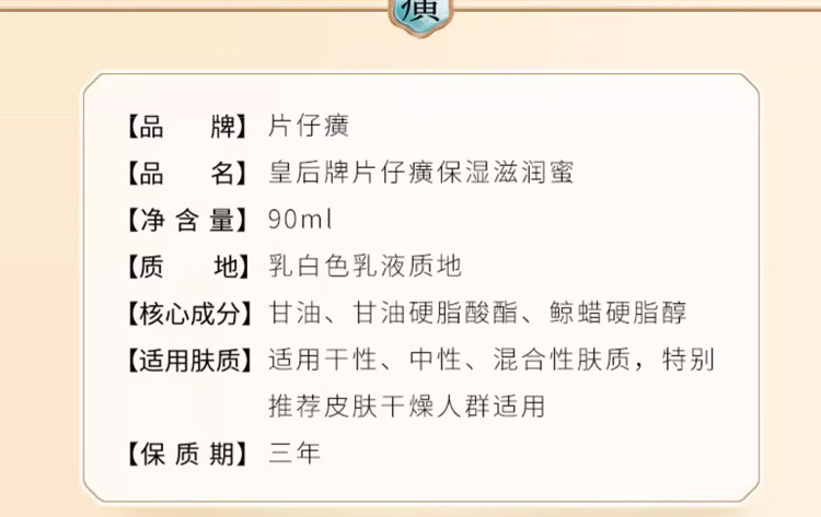 片仔癀皇后牌滋润蜜全身体乳液面霜国货护肤缓解干燥补水保湿留香润肤霜 【年底囤货4瓶装】保湿滋润蜜360ml