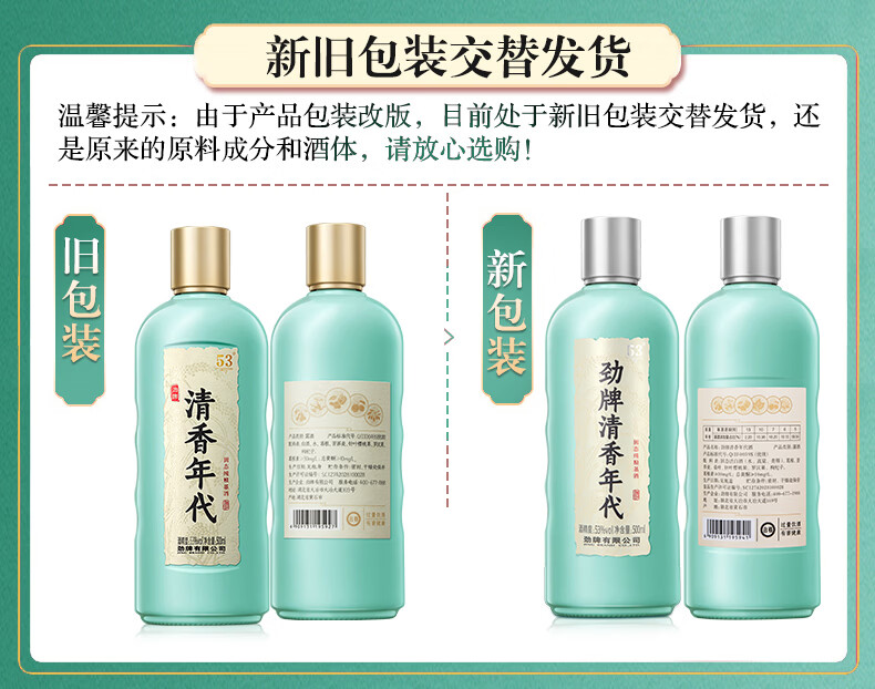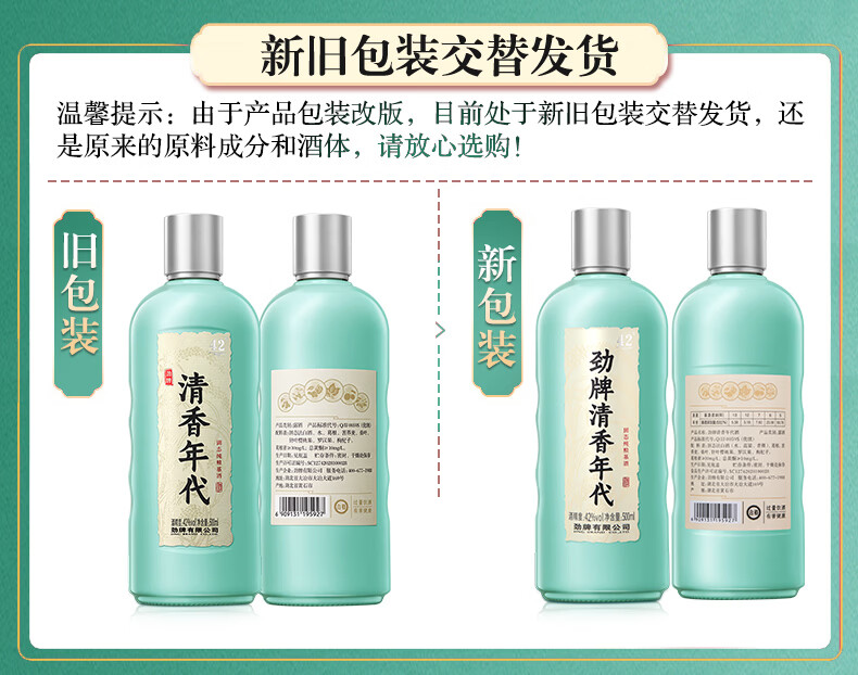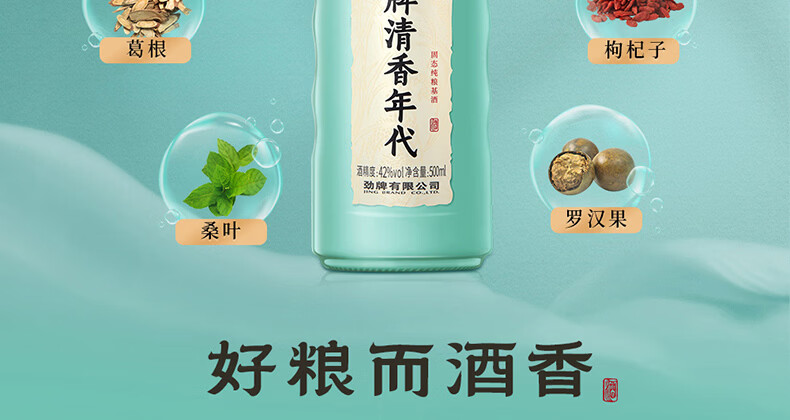 劲牌 清香年代42度/53度 500mL 口粮酒 清香型草本白酒基酒 纯粮基酒 42度 500mL 1瓶 +人参八珍酒1瓶