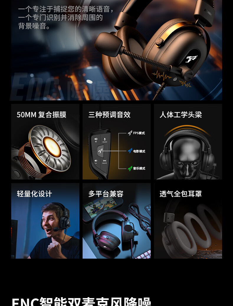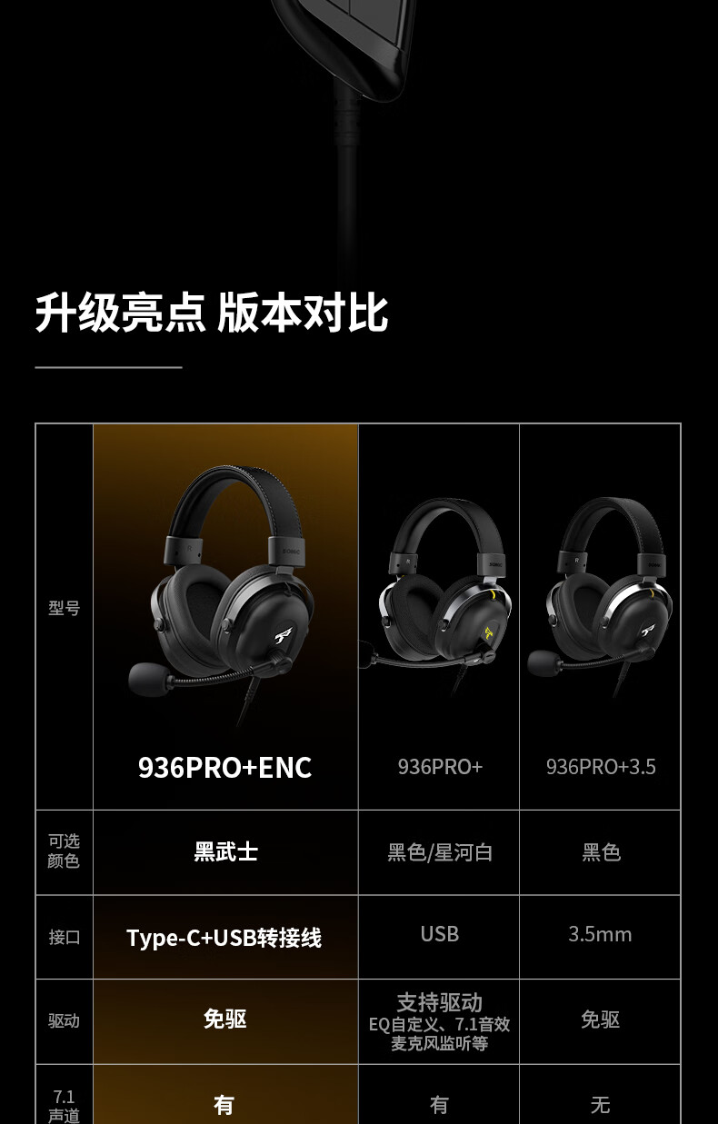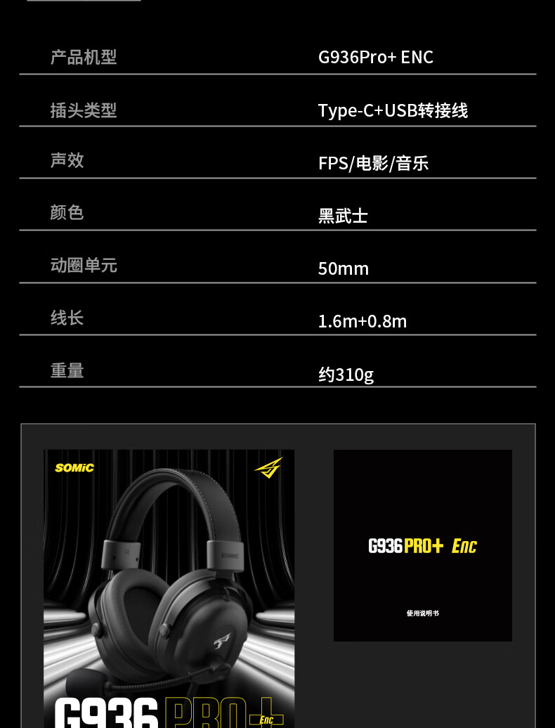 硕美科2025年新款头戴式有线耳机电脑手机有线降噪耳麦电竞游戏专用 G936PRO+黑色有线耳机*单3.5mm