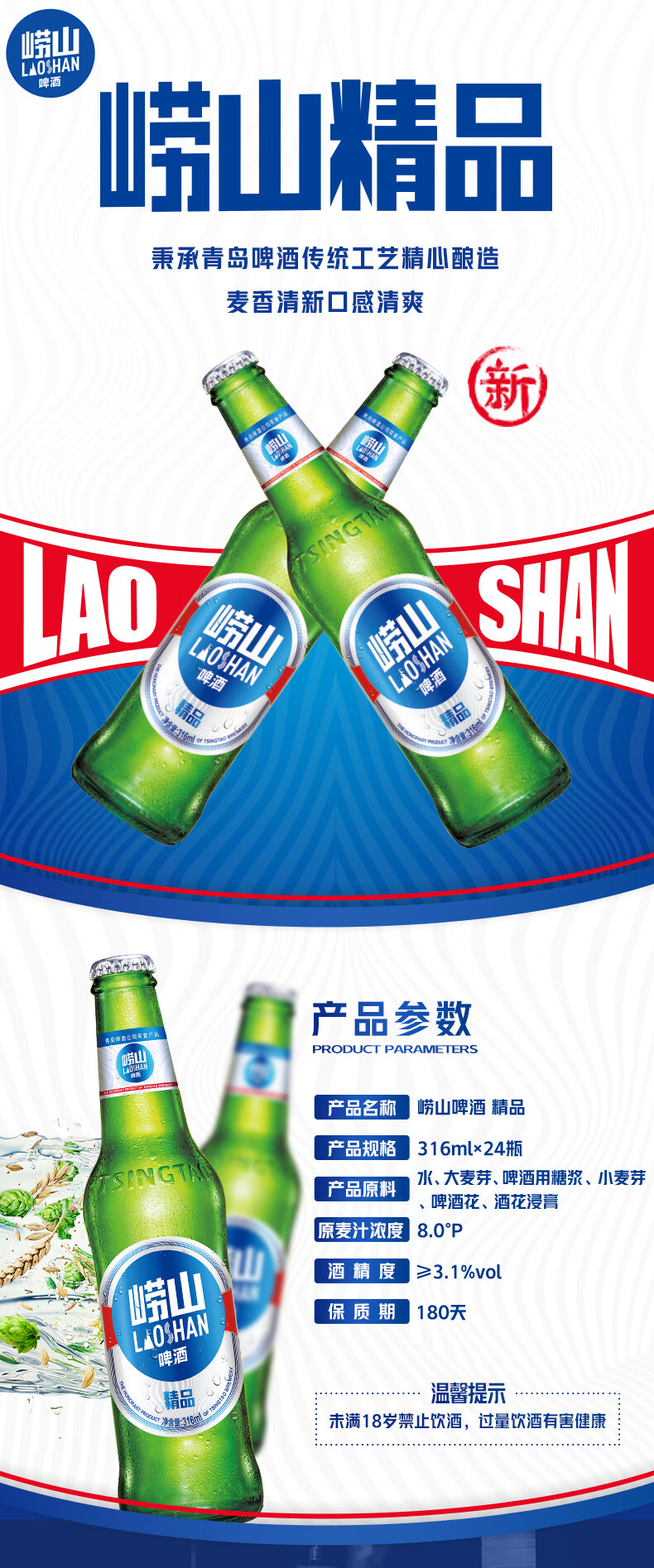 崂山啤酒(laoshan beer)精品经典 316ml*24瓶 青岛崂山啤酒 传统工艺酿造 啤酒整箱 316mL 24瓶 整箱装