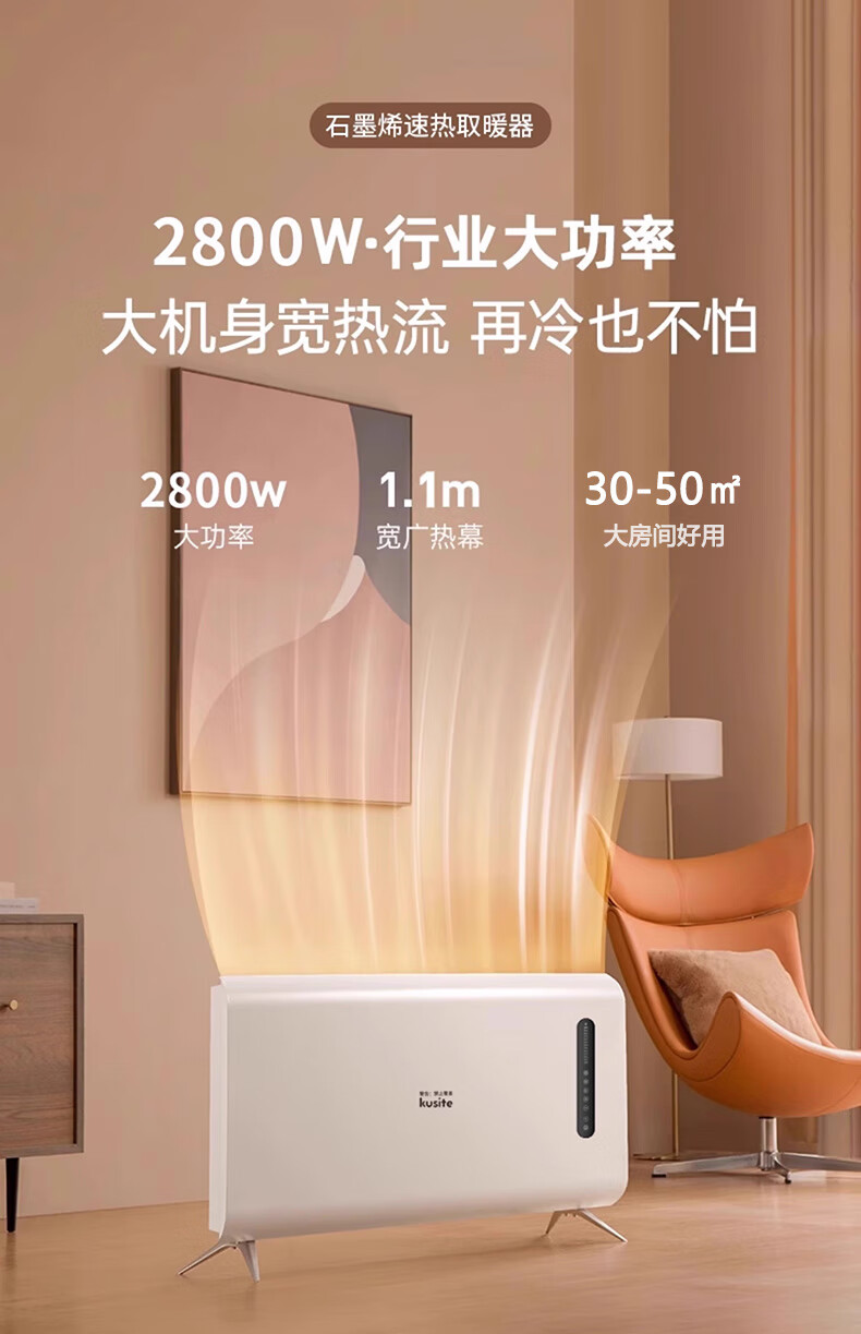 库思特石墨烯取暖器家用节能变频电暖气烤火大面积全屋暖气片加湿新款负离子净化S10