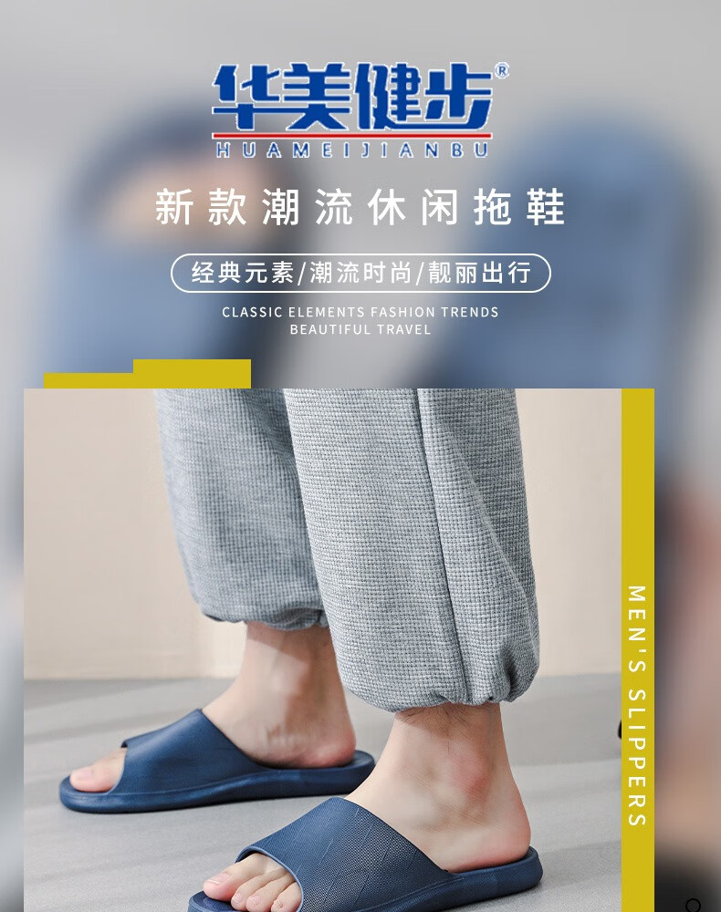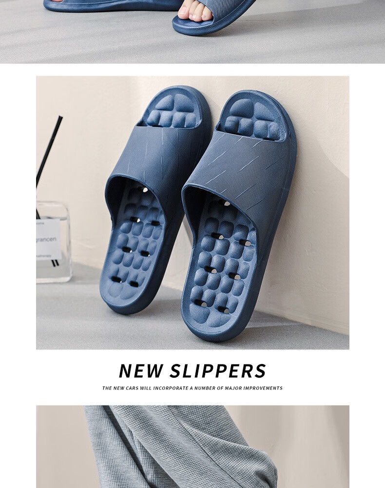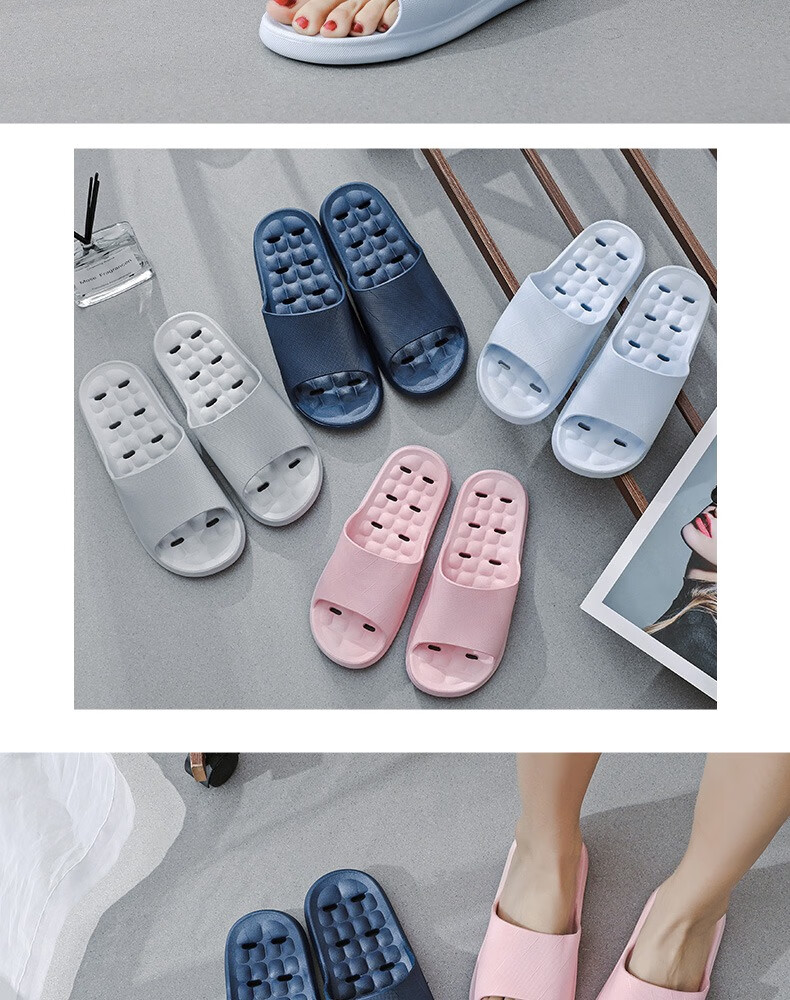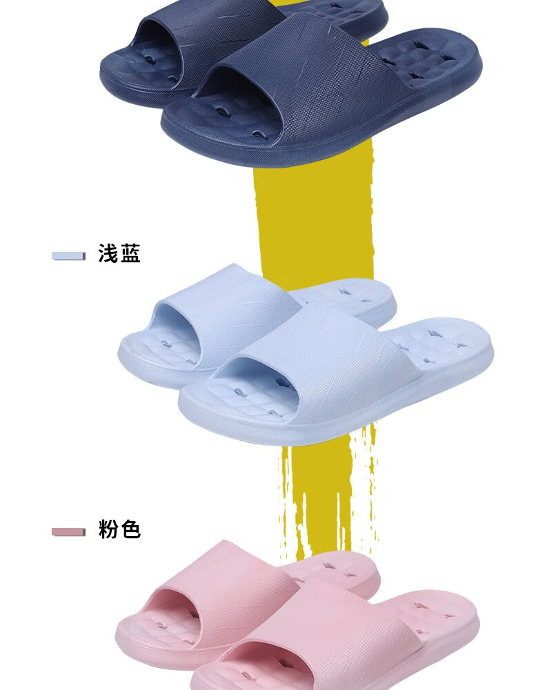 华美健步浴室内沥水款软简约厚底一字漏水拖鞋家居鞋凉拖 深蓝色 44-45