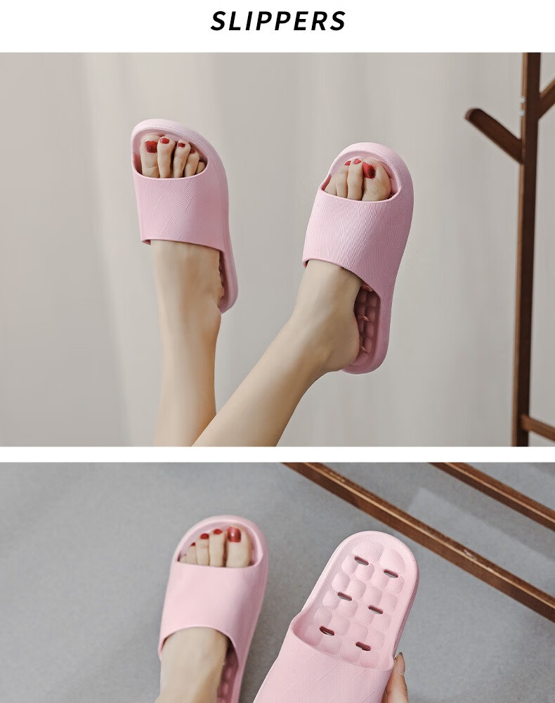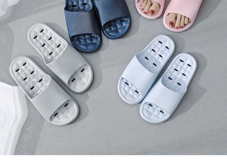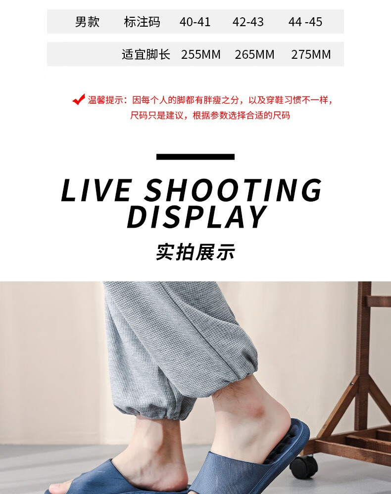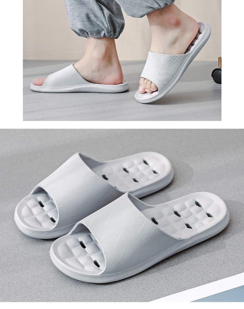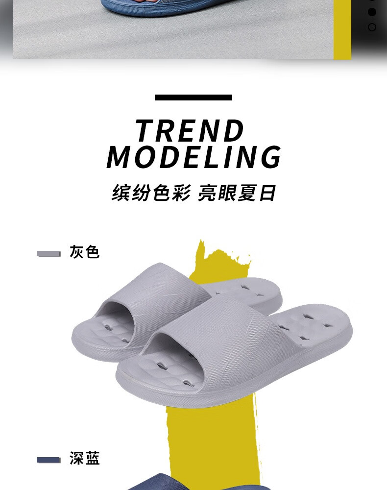 华美健步浴室内沥水款软简约厚底一字漏水拖鞋家居鞋凉拖 深蓝色 44-45