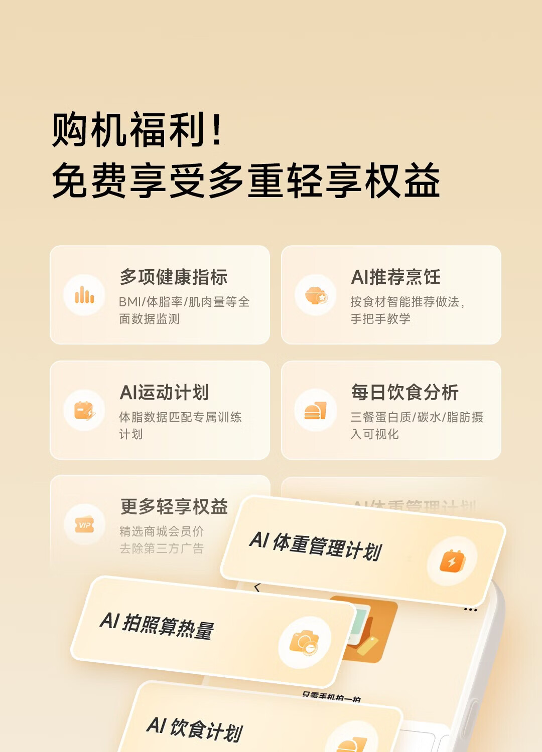 云麦智能心率体脂秤mini5 家用电子秤体重秤高精准73项身体数据监测 人体塑形减脂称重减肥管理专用 智能体脂秤mini5云绒白