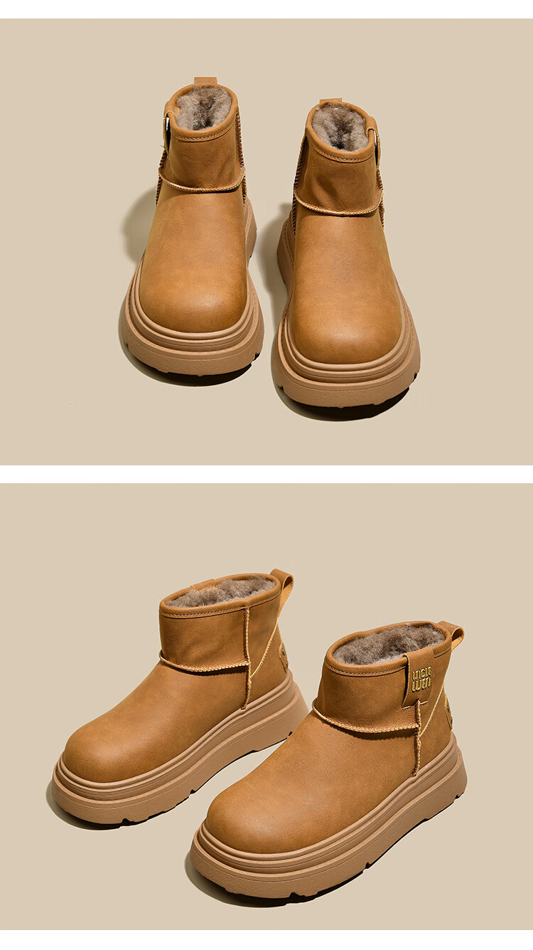 星期六毛绒雪地靴女款冬季加绒2025新款女鞋东北短筒棉鞋厚底保暖面包鞋 卡其色 【冬季保暖】跟高3cm 38