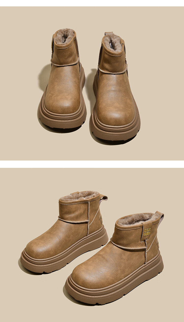 稻草人(MEXICAN)厚底防滑雪地靴女款2026新款冬季加绒加厚保暖马丁靴东北棉鞋短靴 卡其色【专柜版】 35