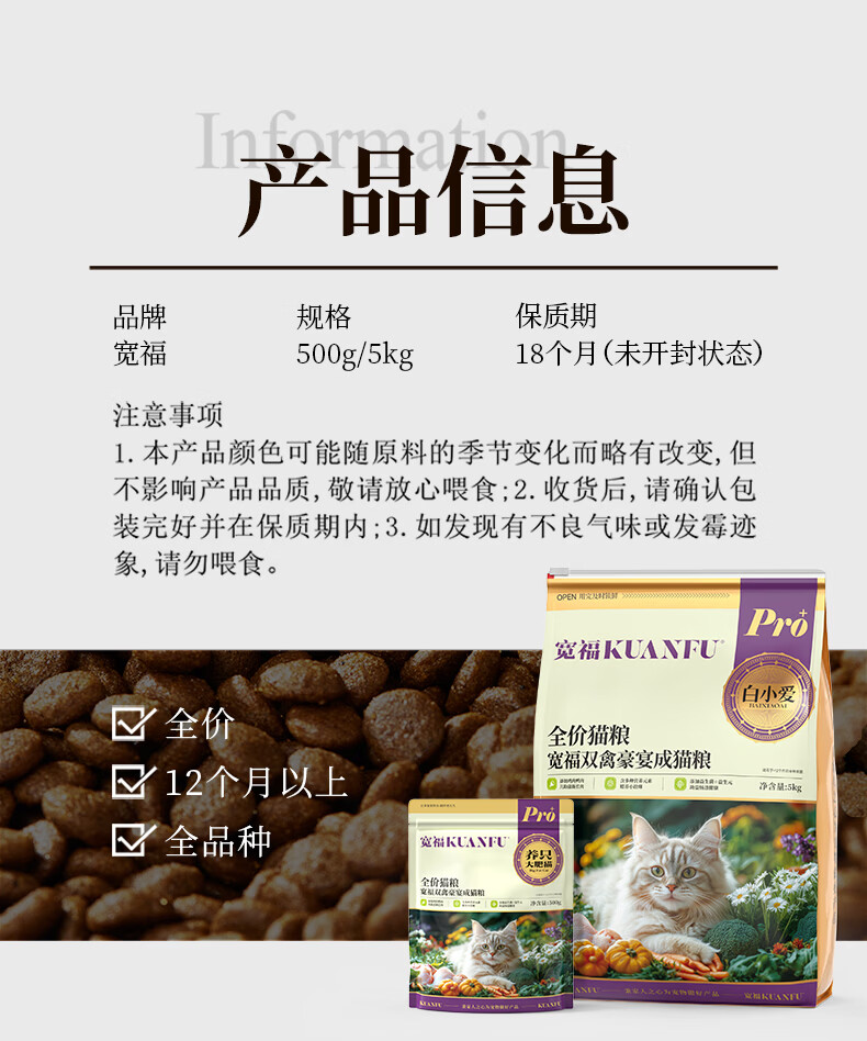 宽福(KUANFU)全价猫粮鸡肉成猫粮添加鱼油5kg大包装