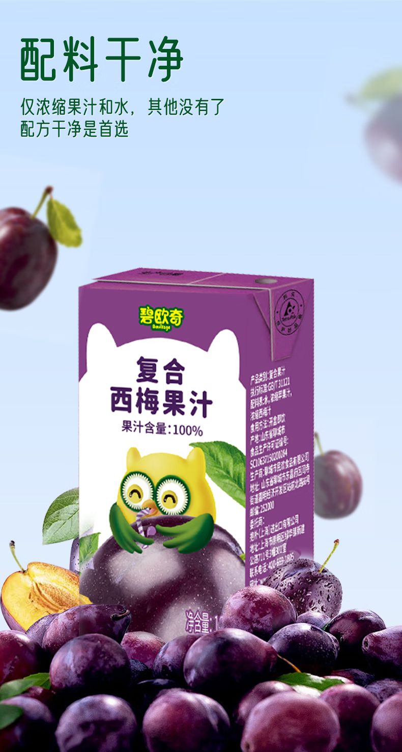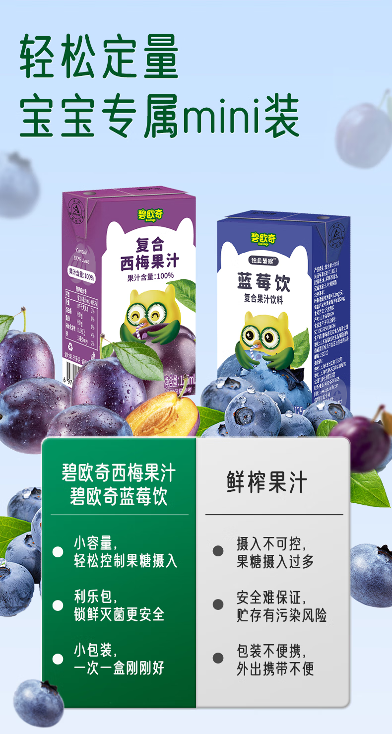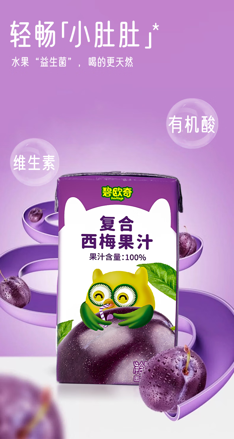 碧欧奇复合蓝莓西梅果汁 纯真果汁不加糖儿童饮料果肉榨汁饮料 【12盒】(蓝莓6西梅6) 125ml*12盒