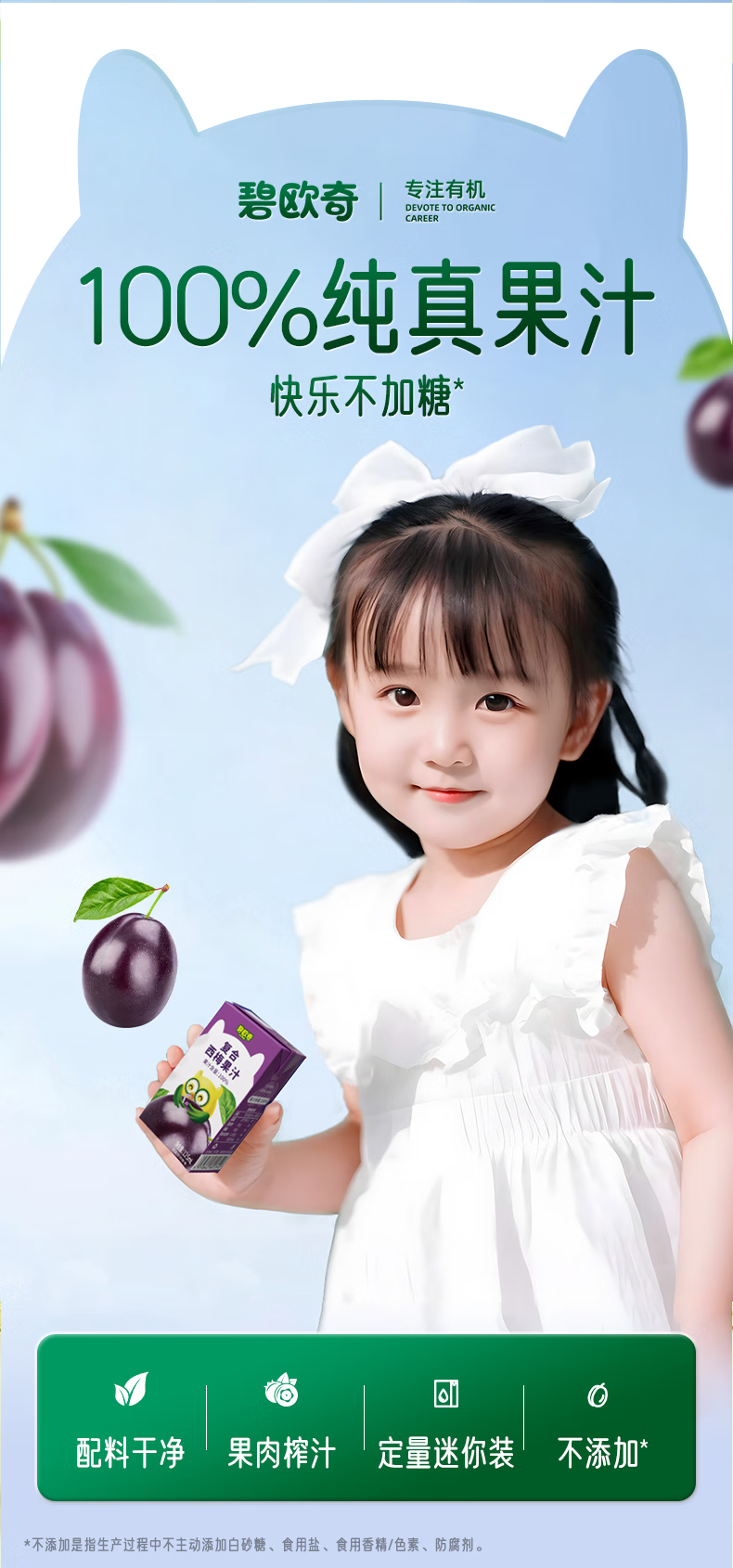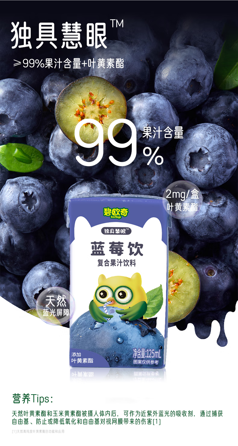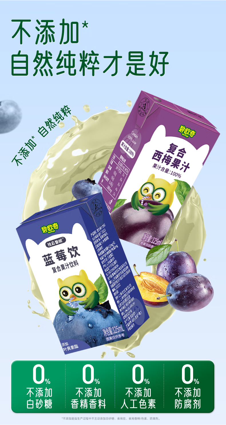 碧欧奇复合蓝莓西梅果汁 纯真果汁不加糖儿童饮料果肉榨汁饮料 【12盒】(蓝莓6西梅6) 125ml*12盒