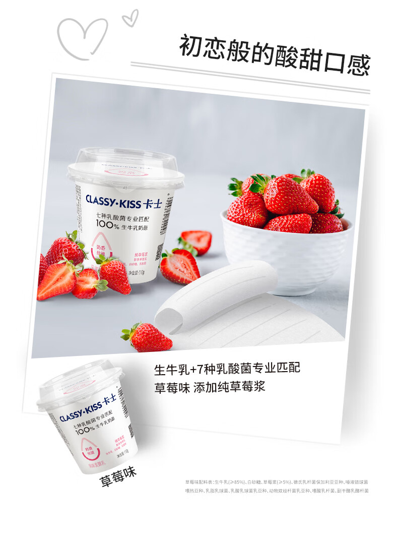 卡士(CLASSY.KISS)110g*6杯草莓味酸奶 低温酸奶 风味发酵乳
