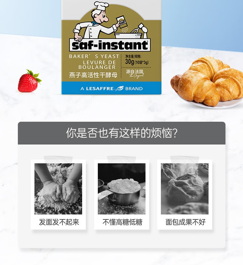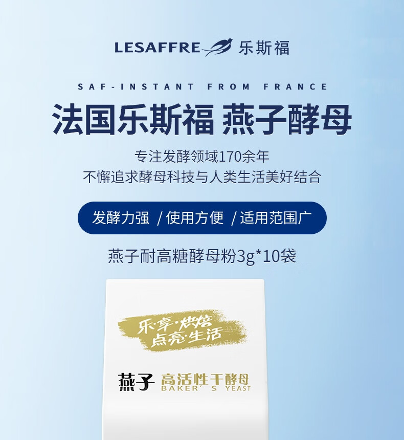 燕子(SAF INSTANT)高活性即发干酵母粉 3g*10袋 耐高糖发酵快 蛋糕面包披萨发酵粉
