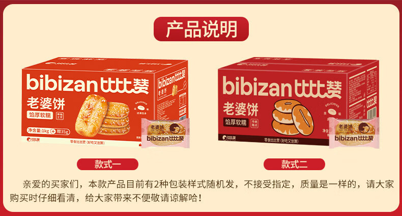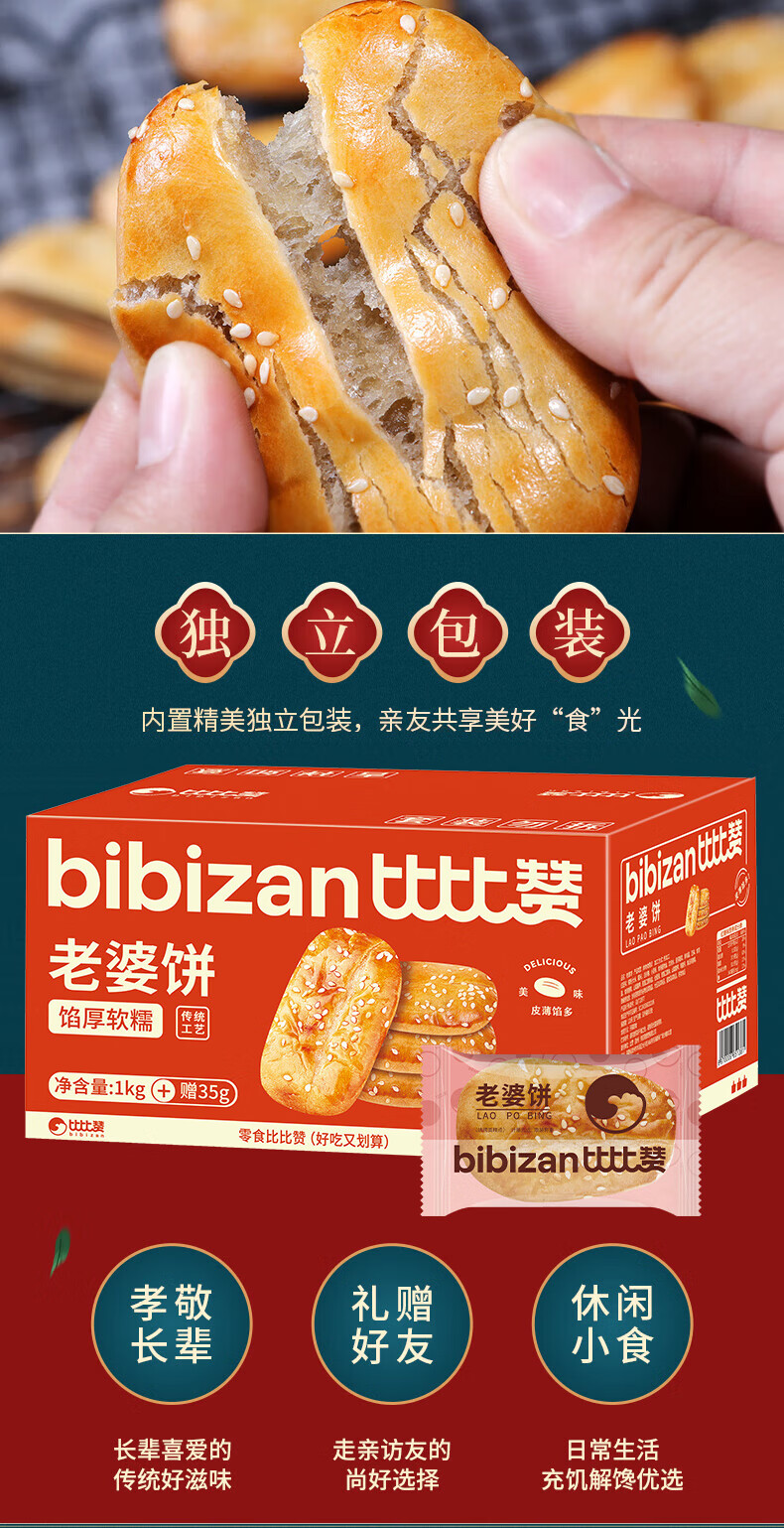 比比赞(BIBIZAN)老婆饼馅饼1.035kg箱饼干蛋糕点心营养早餐面包小吃休闲零食品