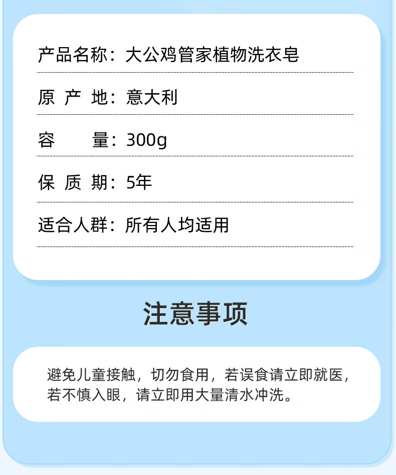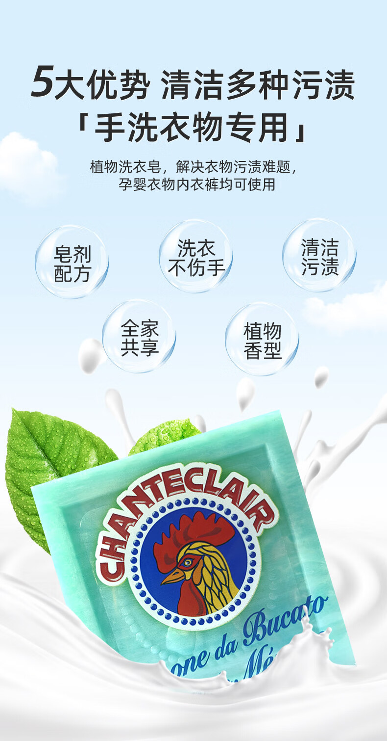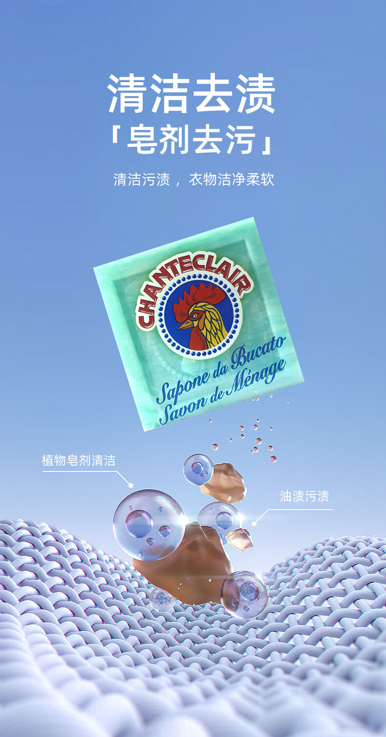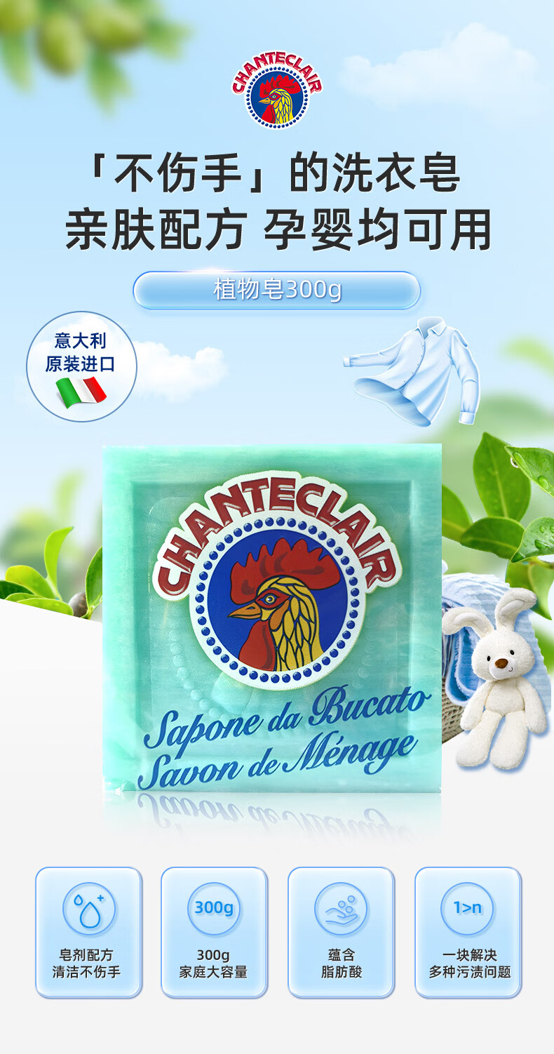 大公鸡管家(CHANTE CLAIR)植物洗衣皂 300g 肥皂 内衣皂 意大利进口