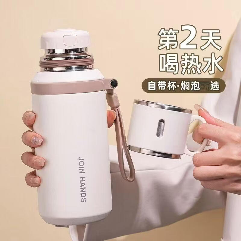 316不锈钢保温杯钢盖简约茶杯保温杯杯子女士高颜值便携水杯男款 白色-800ml